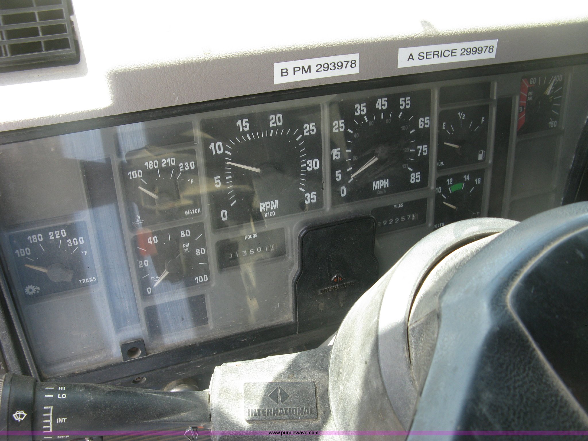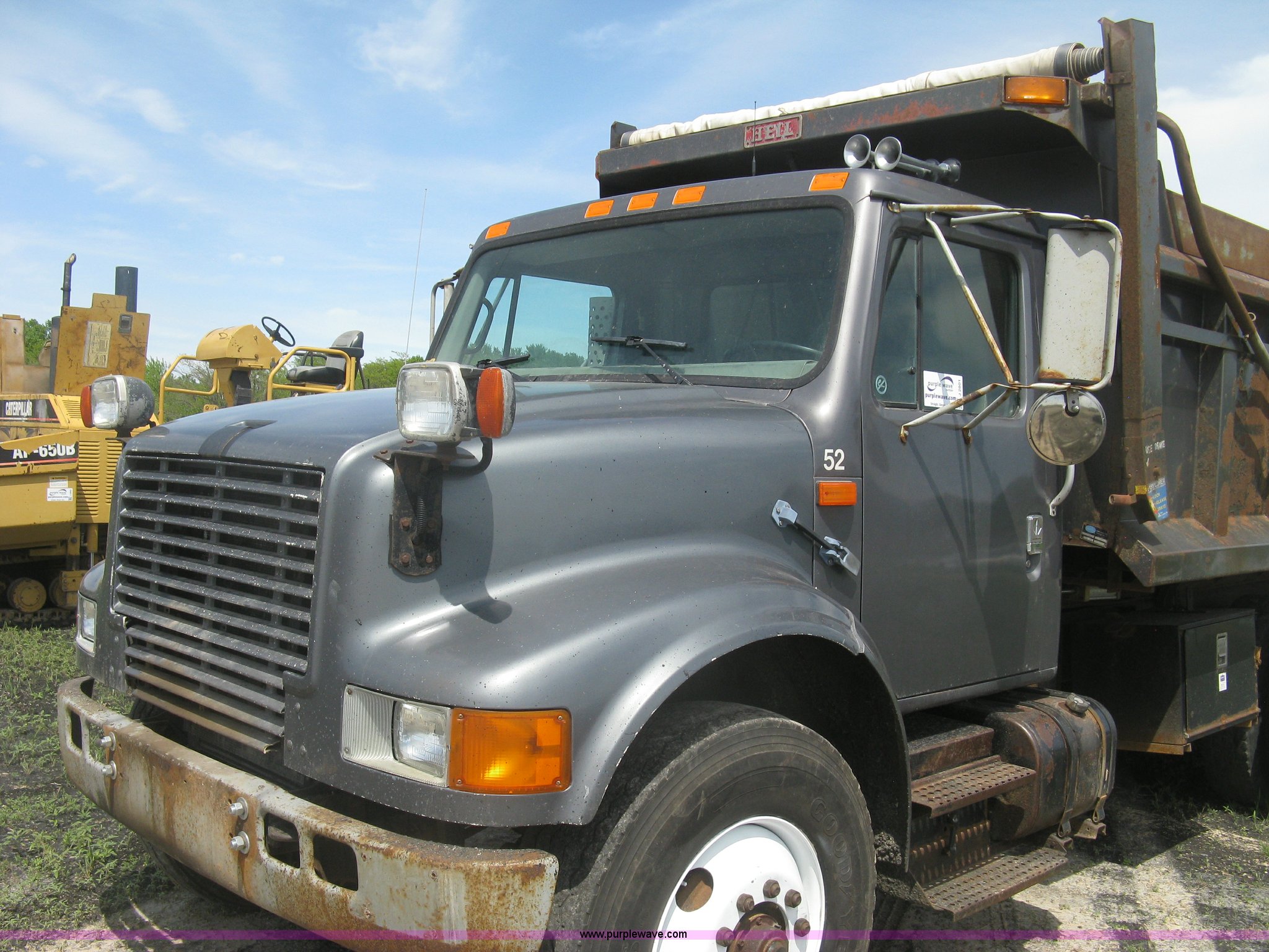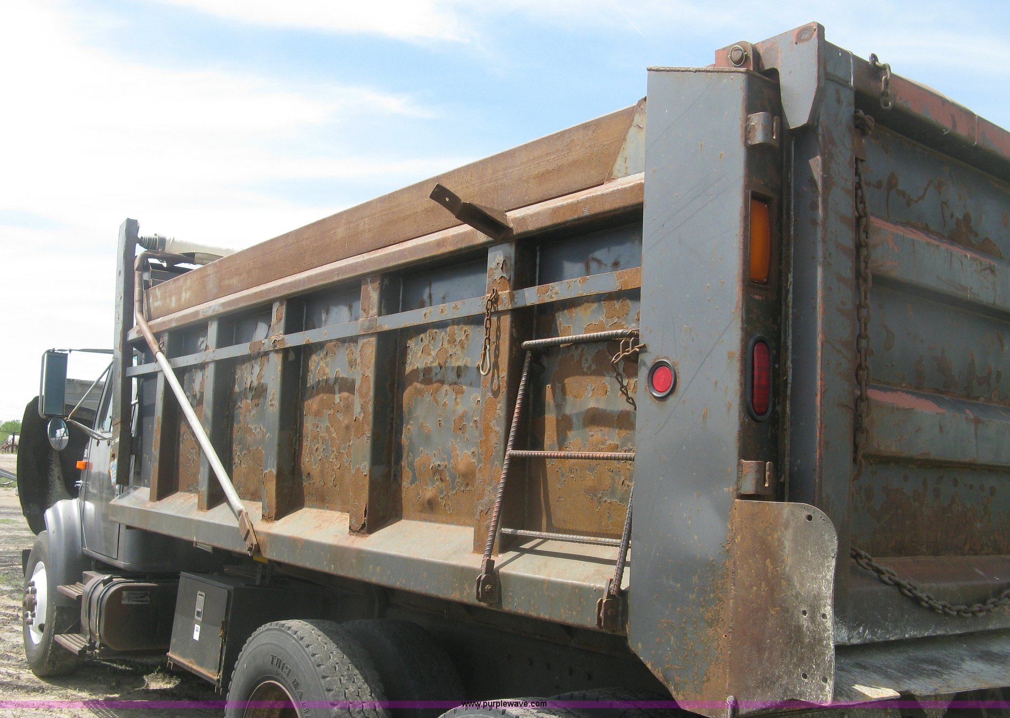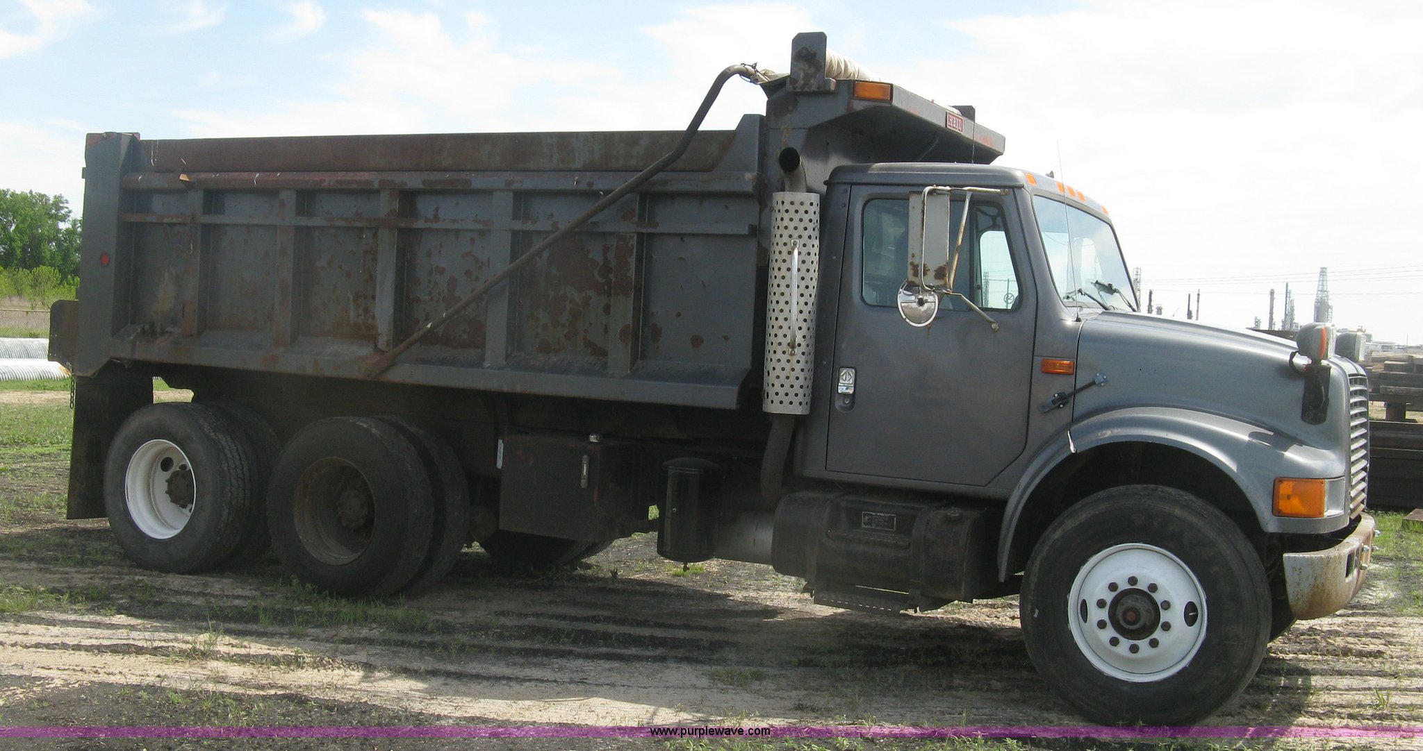 Purple Wave is selling a used Construction Dump Truck in Kansas. This item is a 1997 International 4900 dump truck with the following: 292,257 miles on odometer, 13,501 hours on meter, International DT466E 7.6L L6 turbo diesel engine, Serial 1825659C1, Allison automatic transmission, Tandem axle, Inter-axle differential lock, AC and heat, Tilt, Telescoping steering wheel, AM/FM/weatherband, Air suspension seat, Toolboxes, PTO, Heil HPT13YD14 steel dump bed, 15'L x 8'W, 36" side height, 10" side board height, 13 yd. capacity, Rollover tarp, Air operated end gate, Single ram hoist, Rear spreader remotes in bed, Dual fuel tanks, Spring suspension, Air brakes, 196" wheelbase, 315/80R22.5 front tires, 11R22.5 rear tires, Chipped windshield, Rust, Floor damage, Unit# 51