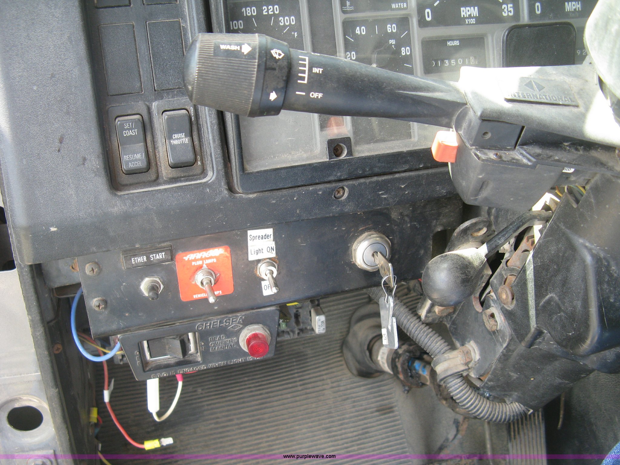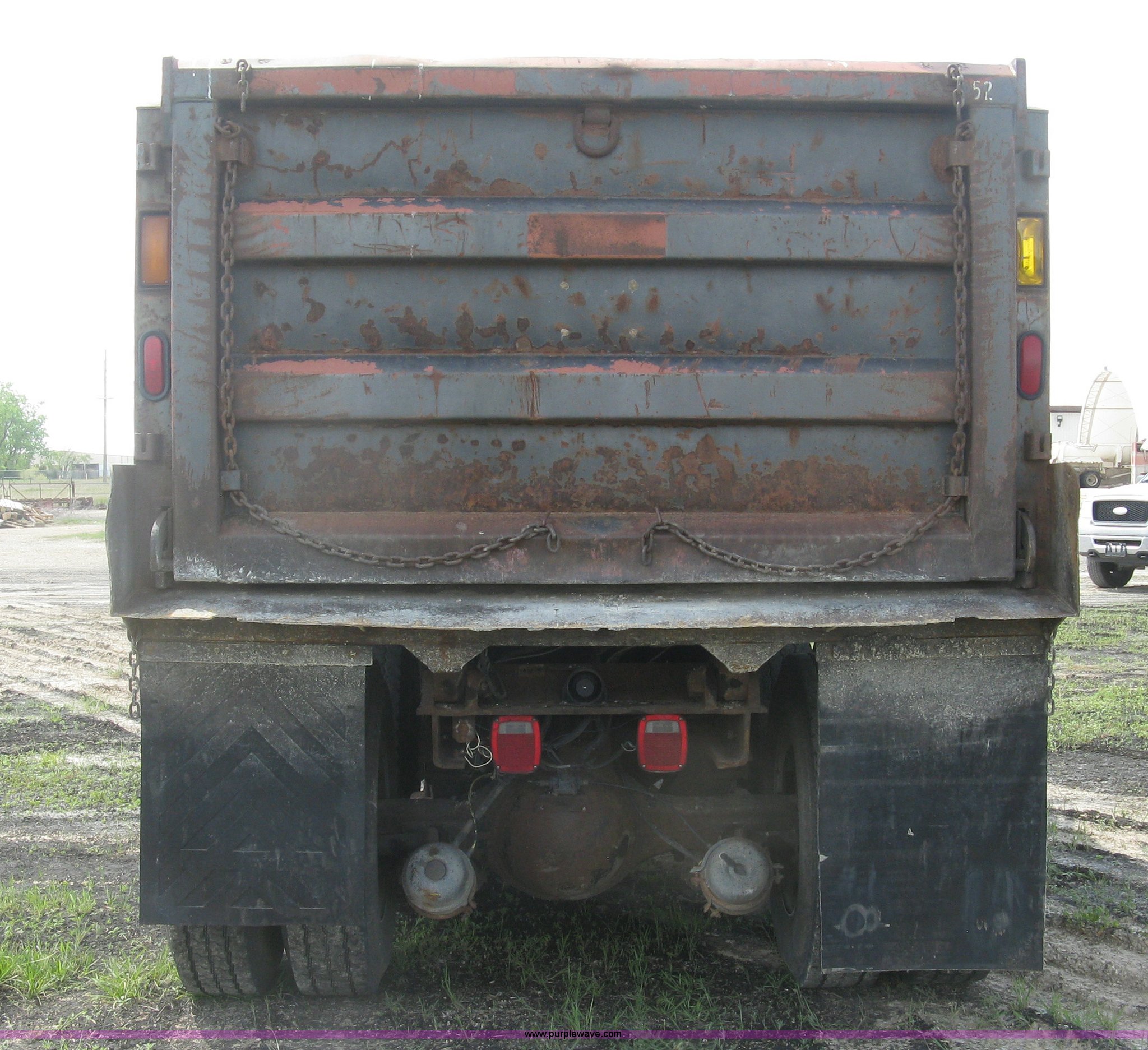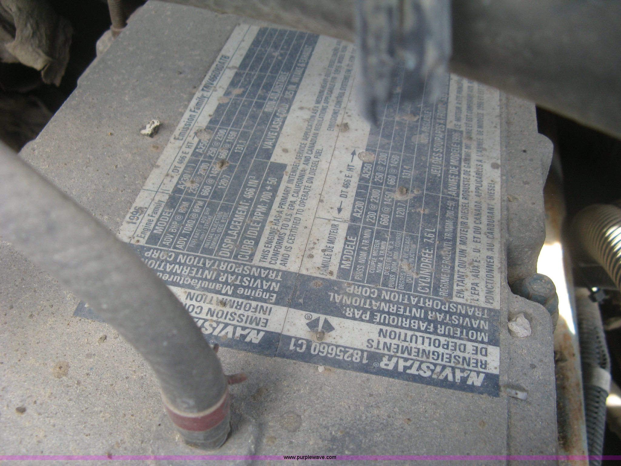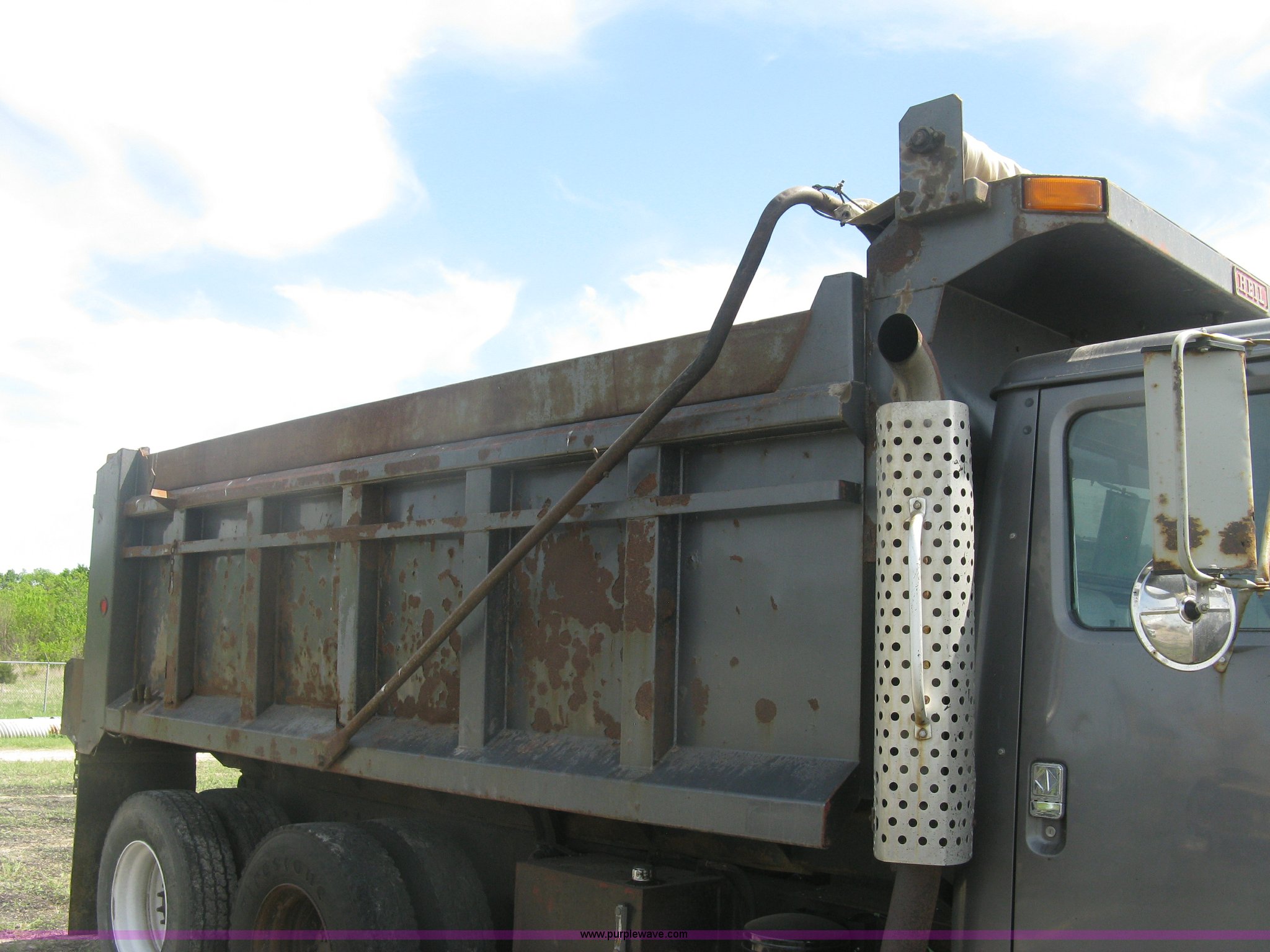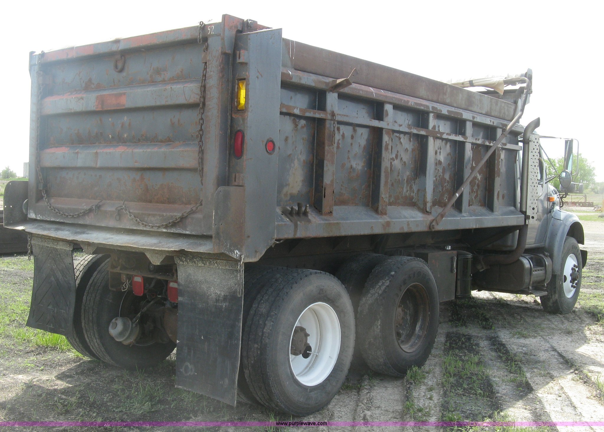 Purple Wave is selling a used Construction Dump Truck in Kansas. This item is a 1997 International 4900 dump truck with the following: 292,257 miles on odometer, 13,501 hours on meter, International DT466E 7.6L L6 turbo diesel engine, Serial 1825659C1, Allison automatic transmission, Tandem axle, Inter-axle differential lock, AC and heat, Tilt, Telescoping steering wheel, AM/FM/weatherband, Air suspension seat, Toolboxes, PTO, Heil HPT13YD14 steel dump bed, 15'L x 8'W, 36" side height, 10" side board height, 13 yd. capacity, Rollover tarp, Air operated end gate, Single ram hoist, Rear spreader remotes in bed, Dual fuel tanks, Spring suspension, Air brakes, 196" wheelbase, 315/80R22.5 front tires, 11R22.5 rear tires, Chipped windshield, Rust, Floor damage, Unit# 51