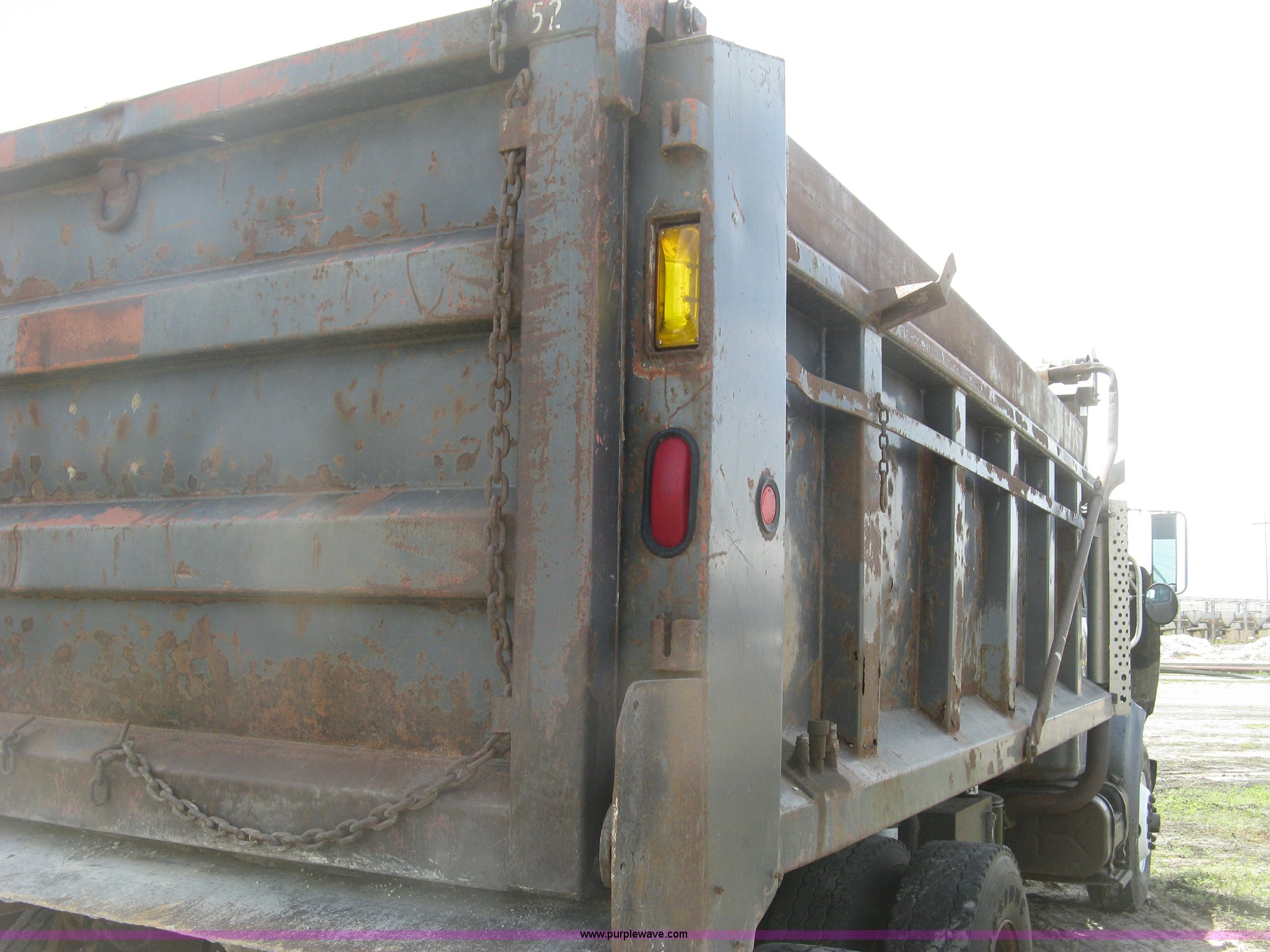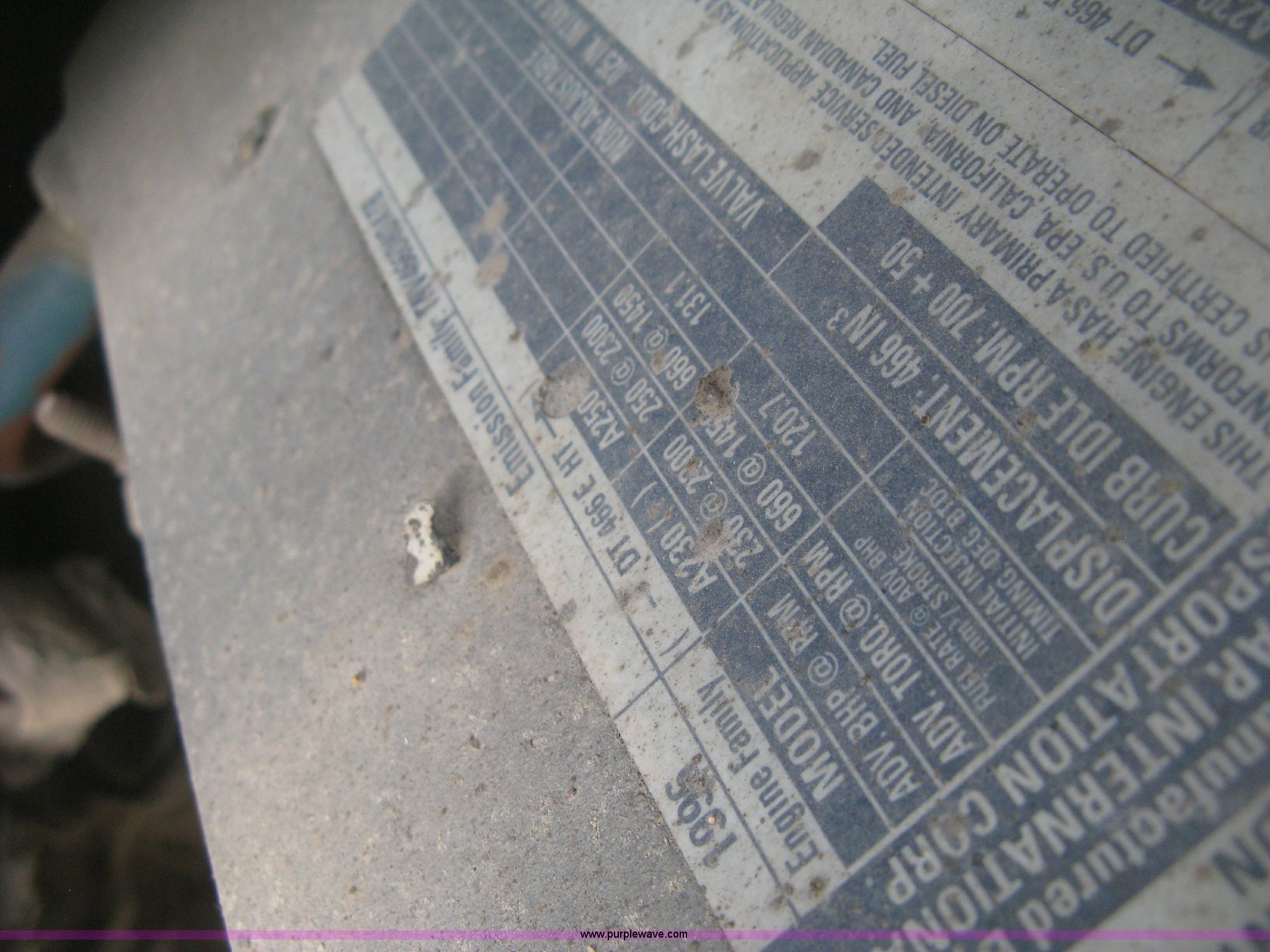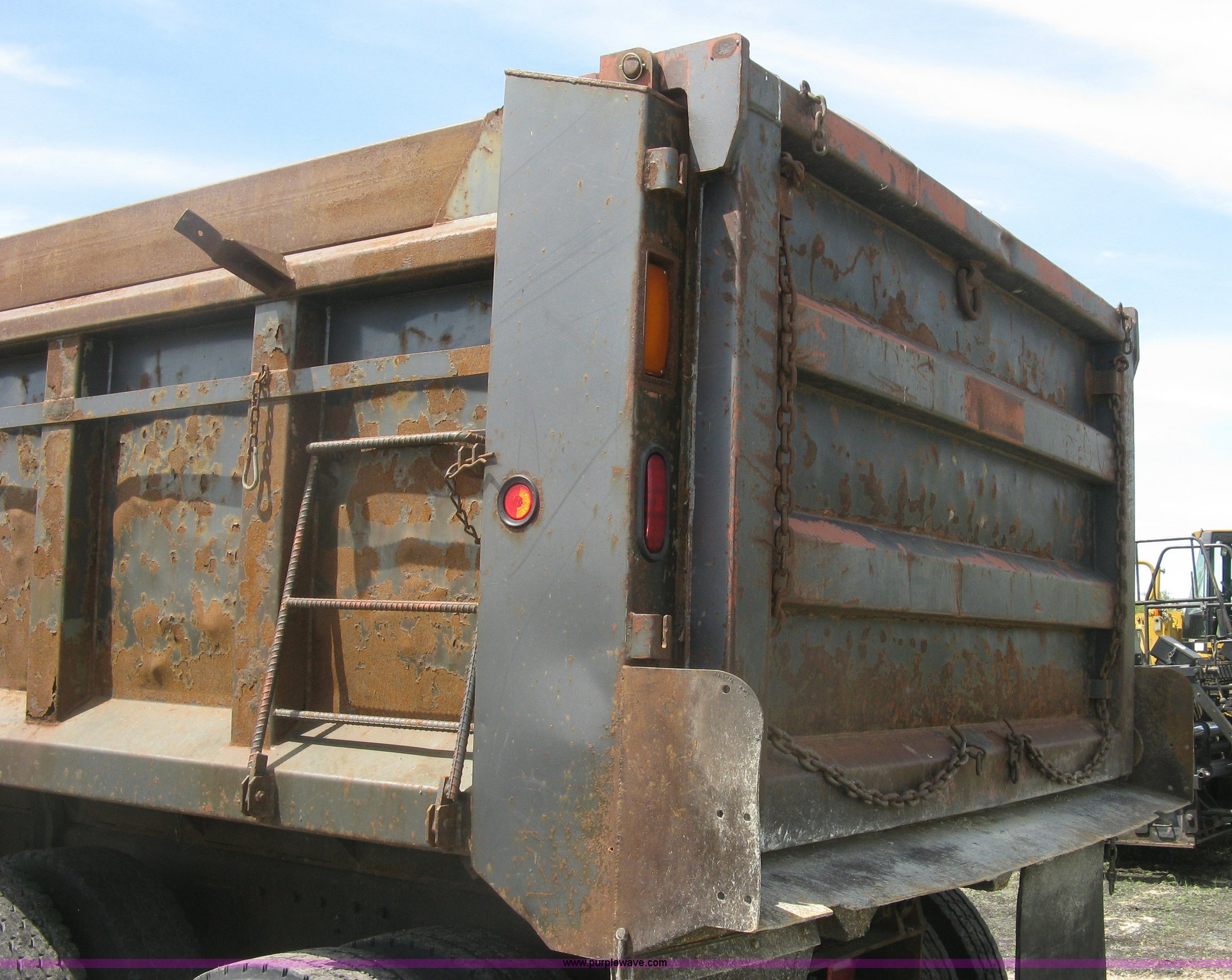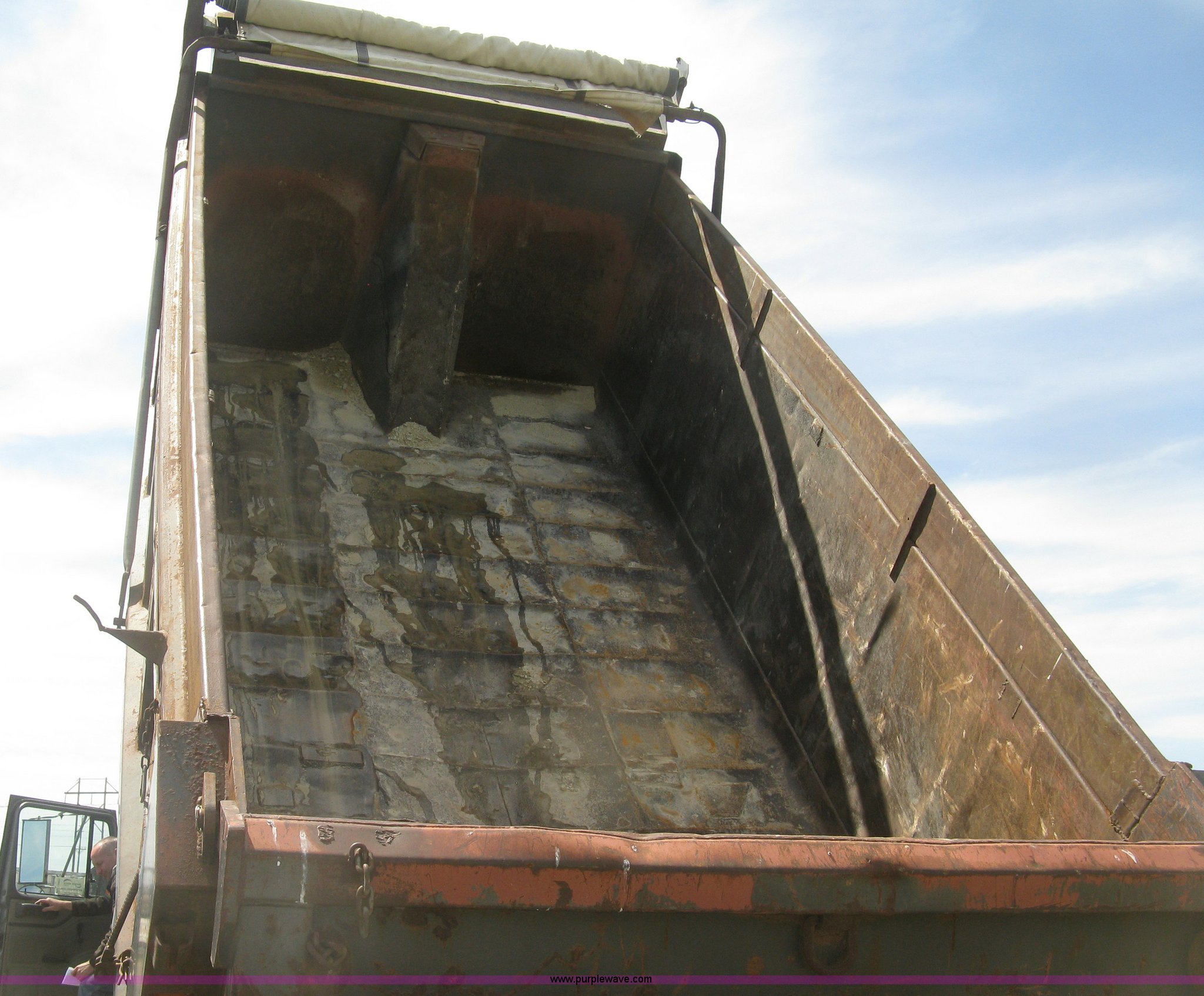 Purple Wave is selling a used Construction Dump Truck in Kansas. This item is a 1997 International 4900 dump truck with the following: 292,257 miles on odometer, 13,501 hours on meter, International DT466E 7.6L L6 turbo diesel engine, Serial 1825659C1, Allison automatic transmission, Tandem axle, Inter-axle differential lock, AC and heat, Tilt, Telescoping steering wheel, AM/FM/weatherband, Air suspension seat, Toolboxes, PTO, Heil HPT13YD14 steel dump bed, 15'L x 8'W, 36" side height, 10" side board height, 13 yd. capacity, Rollover tarp, Air operated end gate, Single ram hoist, Rear spreader remotes in bed, Dual fuel tanks, Spring suspension, Air brakes, 196" wheelbase, 315/80R22.5 front tires, 11R22.5 rear tires, Chipped windshield, Rust, Floor damage, Unit# 51
