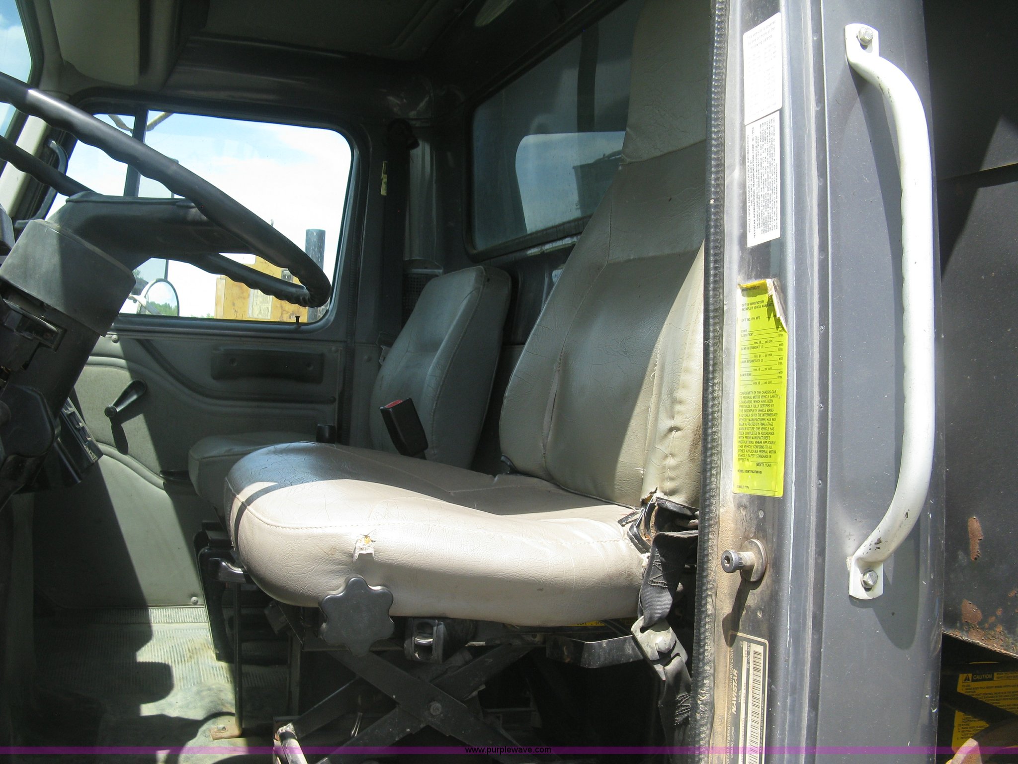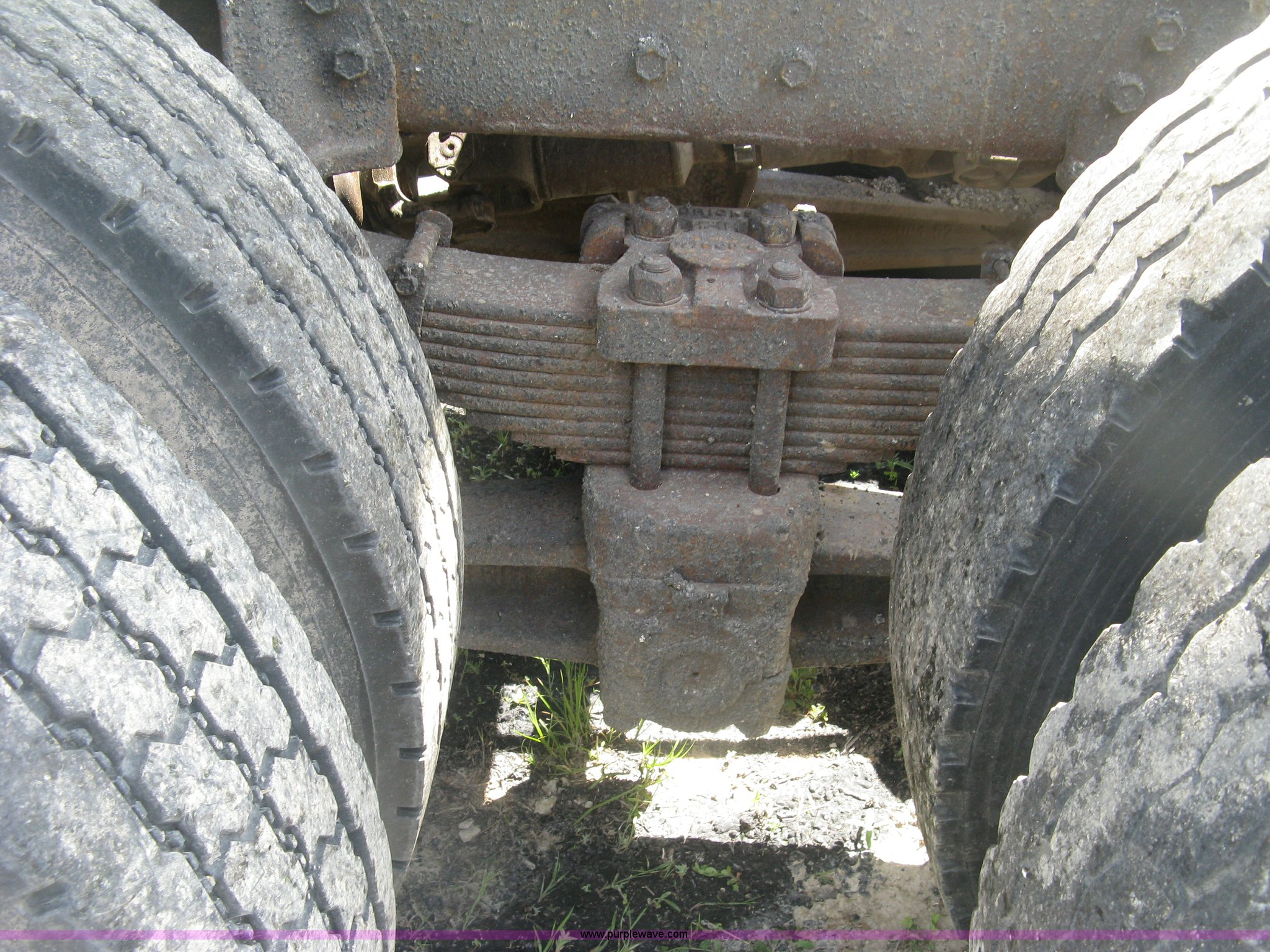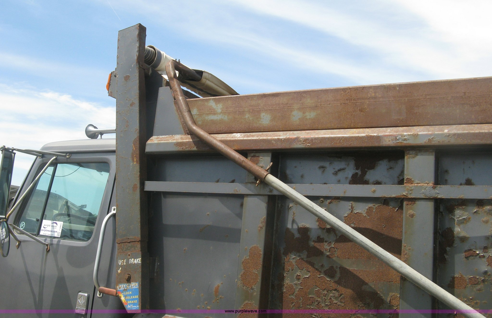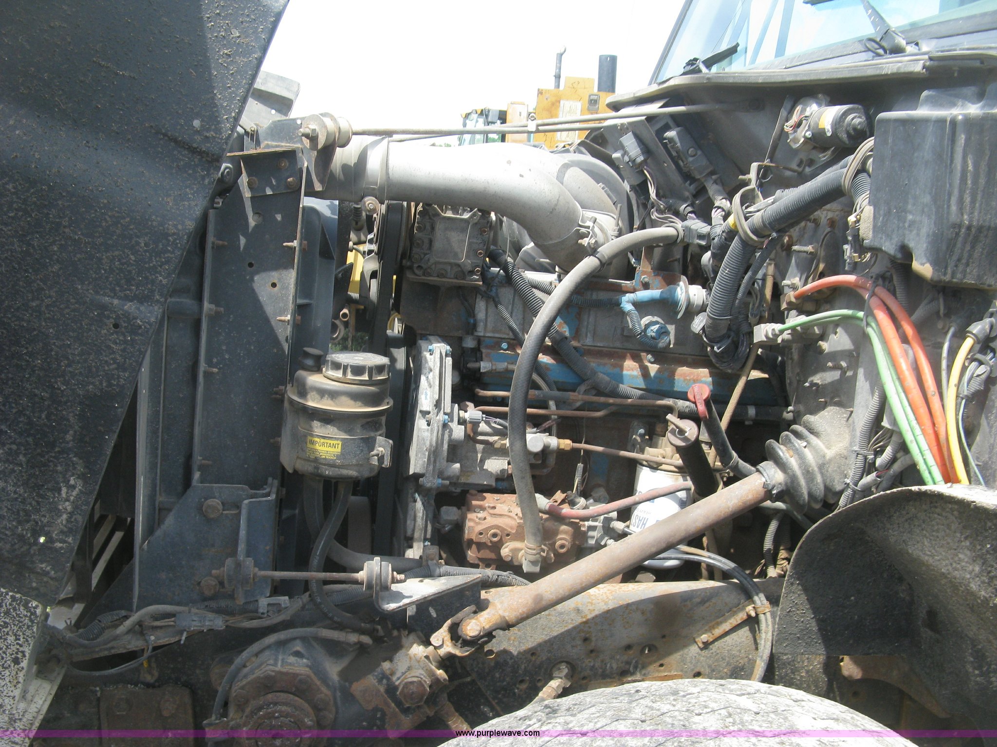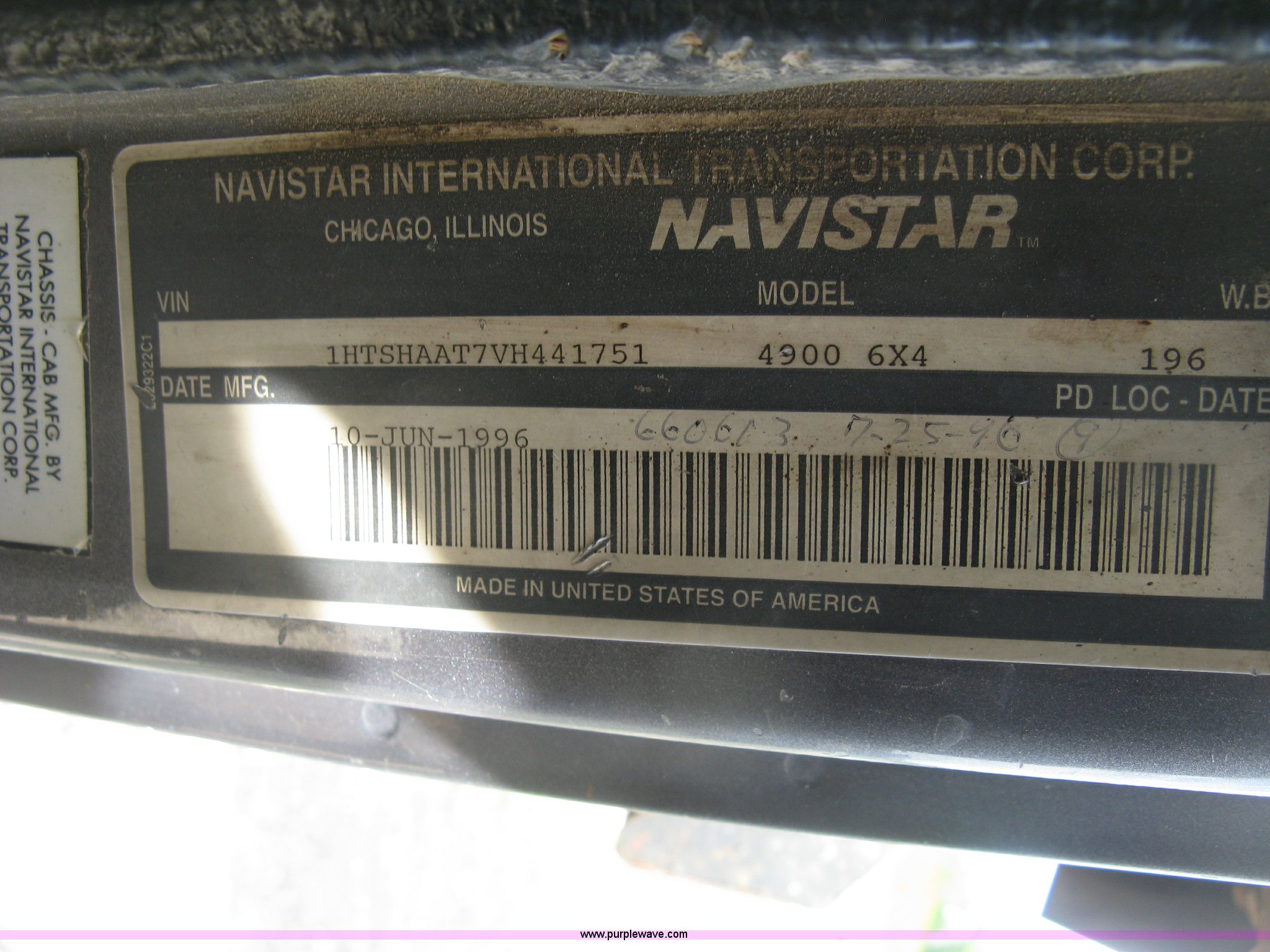 Purple Wave is selling a used Construction Dump Truck in Kansas. This item is a 1997 International 4900 dump truck with the following: 292,257 miles on odometer, 13,501 hours on meter, International DT466E 7.6L L6 turbo diesel engine, Serial 1825659C1, Allison automatic transmission, Tandem axle, Inter-axle differential lock, AC and heat, Tilt, Telescoping steering wheel, AM/FM/weatherband, Air suspension seat, Toolboxes, PTO, Heil HPT13YD14 steel dump bed, 15'L x 8'W, 36" side height, 10" side board height, 13 yd. capacity, Rollover tarp, Air operated end gate, Single ram hoist, Rear spreader remotes in bed, Dual fuel tanks, Spring suspension, Air brakes, 196" wheelbase, 315/80R22.5 front tires, 11R22.5 rear tires, Chipped windshield, Rust, Floor damage, Unit# 51