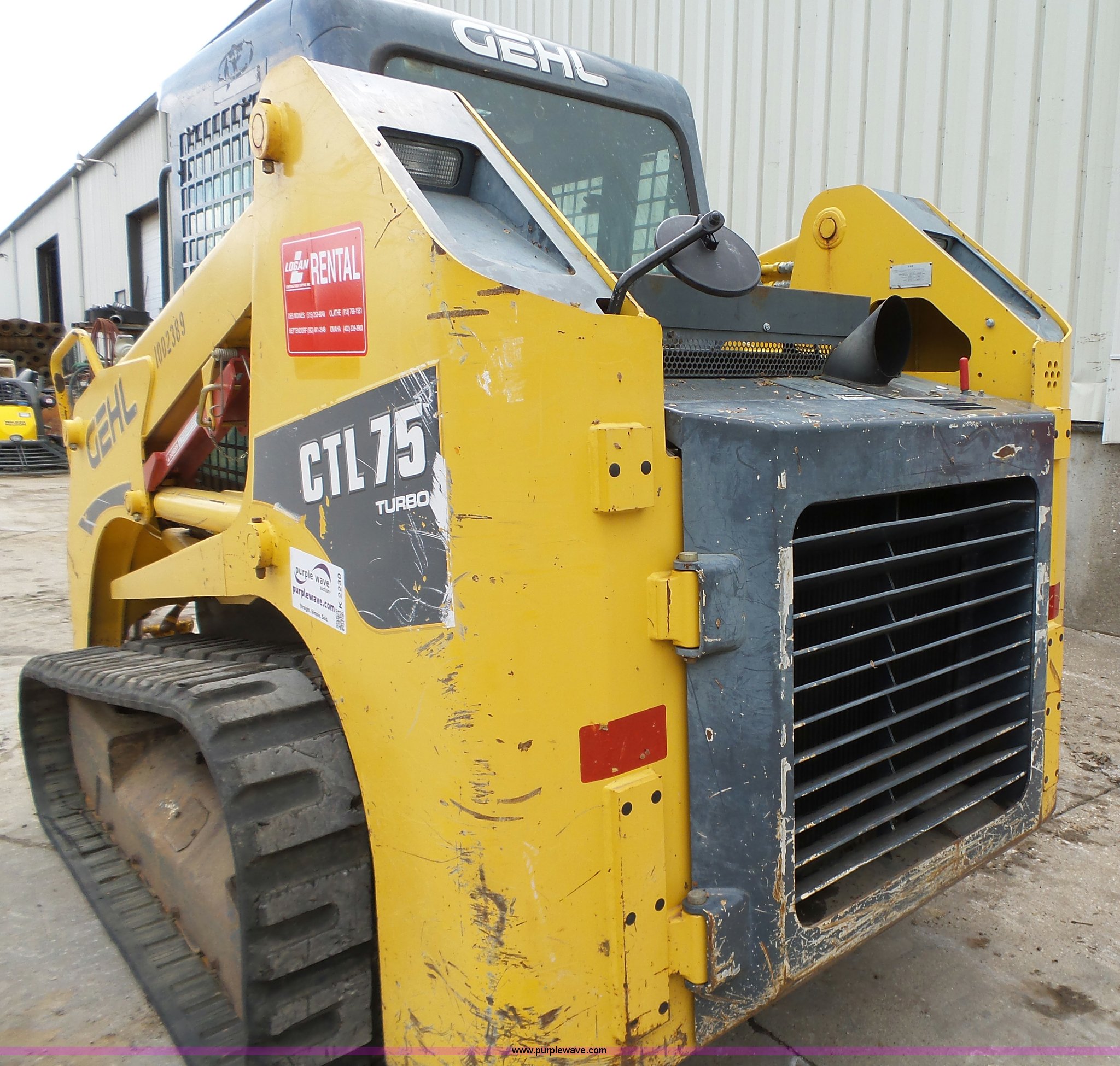 Purple Wave is selling a used Tracked Skid Steer Loader in Iowa. This item is a 2008 Gehl CTL75 Turbo skid steer with the following: 2,455 hours on meter, Yanmar 4TNV98T-ZNTBL 203 C.I.D. four cylinder turbo diesel engine, 83 HP, Hydrostatic transmission, EROPS, AC and heat, Joystick controls, EMS panel, Suspension seat, Front and rear work lights, Front wipers, Backup alarm, Auxiliary hydraulics, Hydraulic quick coupler, 18"W tracks, Serial 224000264, Unit# 1002389
