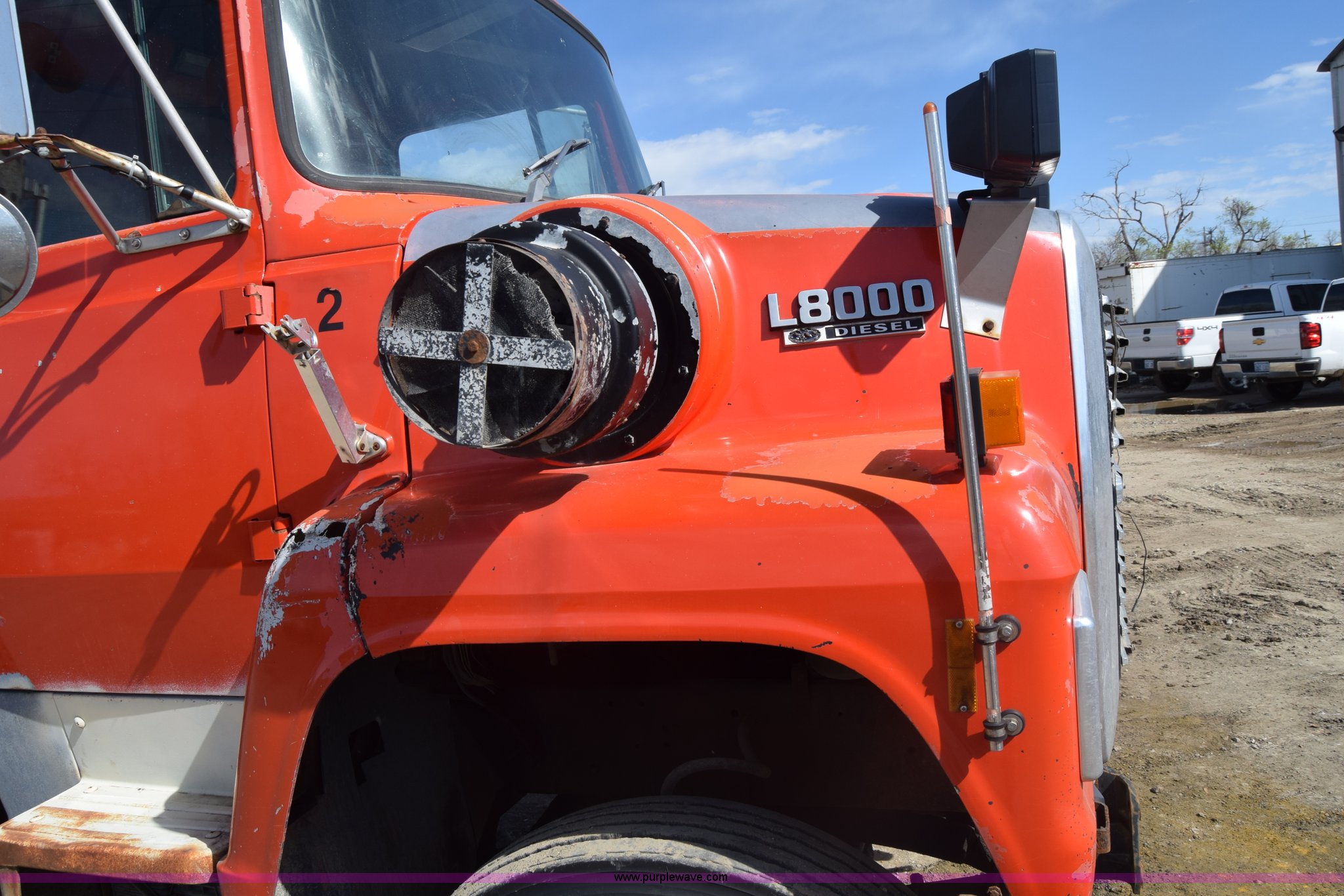 Purple Wave is selling a used Construction Dump Truck in Kansas. This item is a 1989 Ford LNT8000 dump truck with the following: 184,174 miles on odometer, 6,491 hours on meter, Ford 7.8L L6 turbo diesel engine, Automatic transmission, Tandem axle, Heat, PTO, 12'L x 8'W steel dump bed, 1000 gallon poly tank, Spring suspension, Air brakes, 295/75R22.5 tires, End gate has been removed