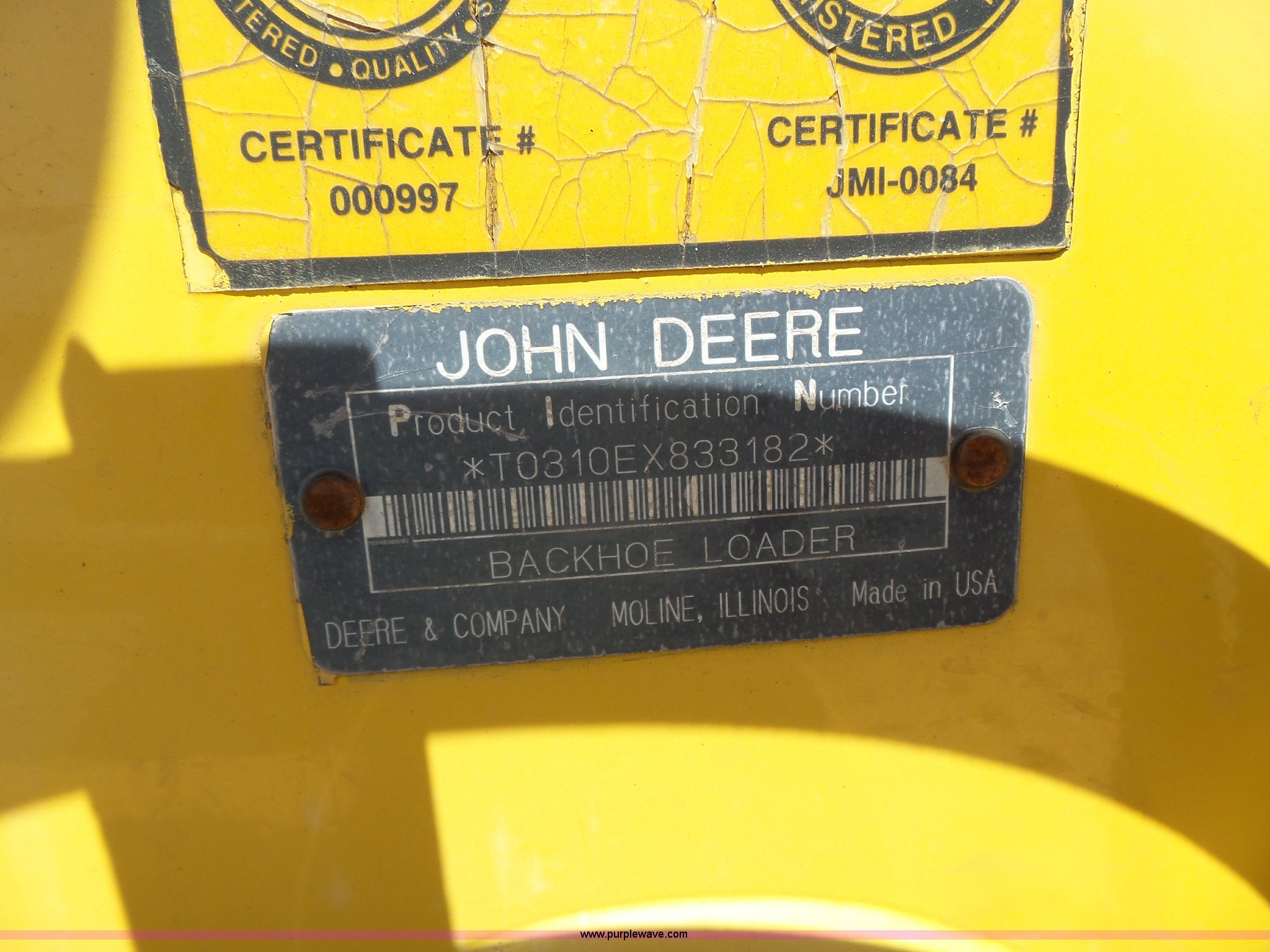Purple Wave is selling a used Tractor Loader Backhoe in Kansas. This item is a 1997 John Deere 310E backhoe with the following: 5,250 hours on meter, John Deere 4045D 4.5L four cylinder diesel engine, 76 HP, Shuttle shift transmission, 4F-4R gears, Suspension seat, Wobble stick backhoe controls, 84"W loader bucket, 1.12 cu. yd. capacity, Bolt-on cutting edge, E-stick, 24"W backhoe bucket, (5) teeth, Manual quick coupler, Auxiliary hydraulics, 11L-16 front tires, 19.5L-24 rear tires, 13,810 lbs. base operating weight, Serial T0310EX833182