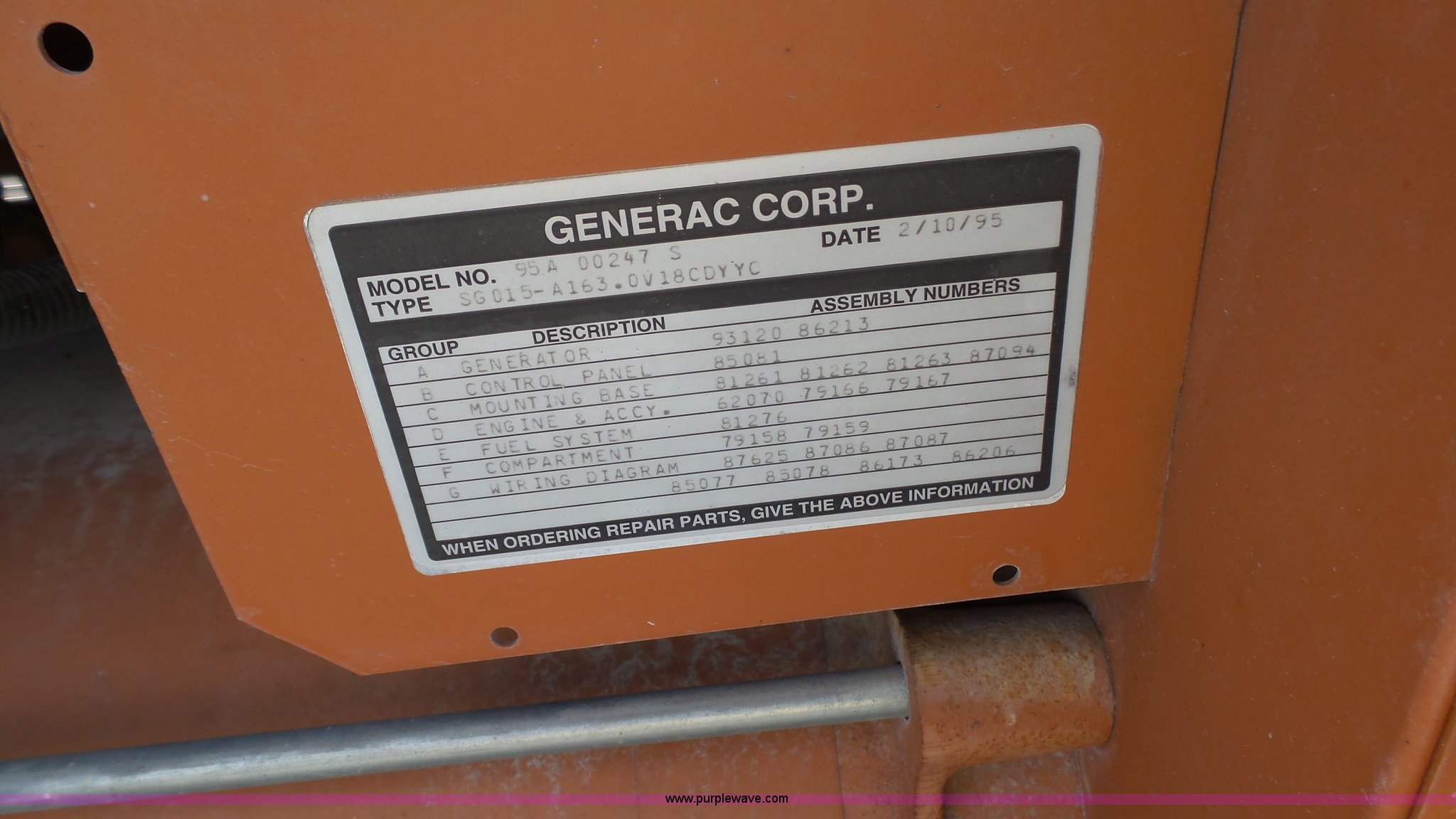 1995 Generac 95A00247-S generator has sold in Topeka, Kansas for $1815. Item K4713 sold on June 9th, 2016.