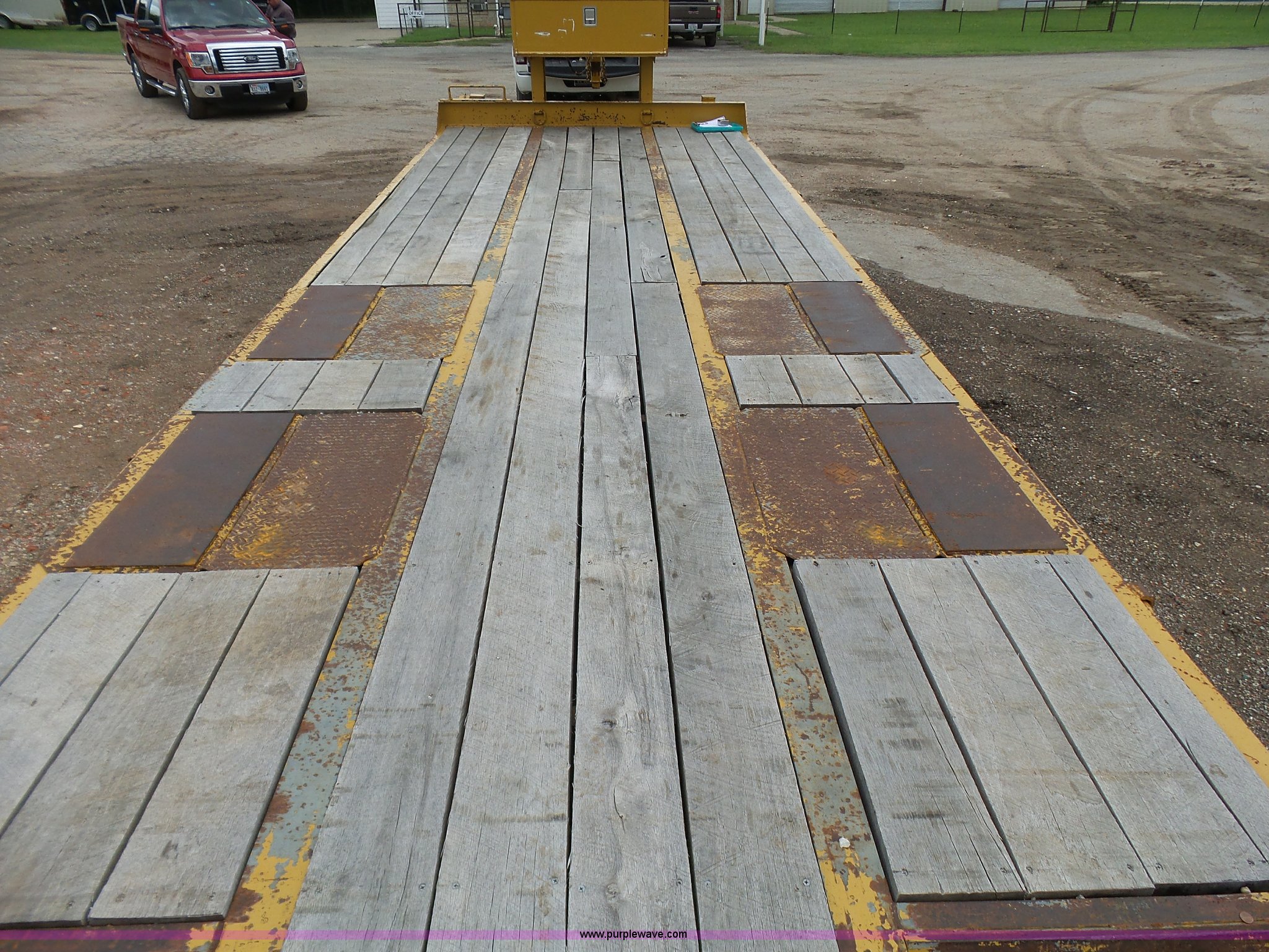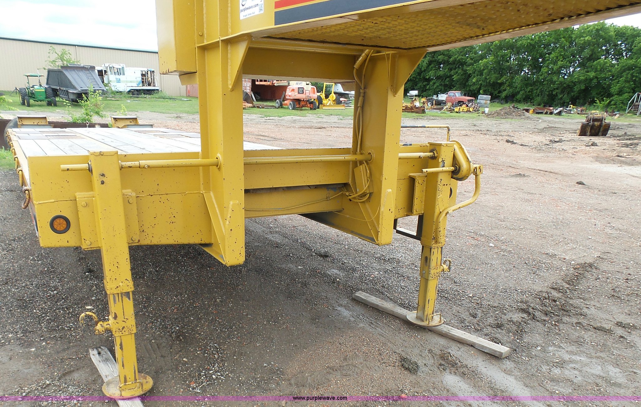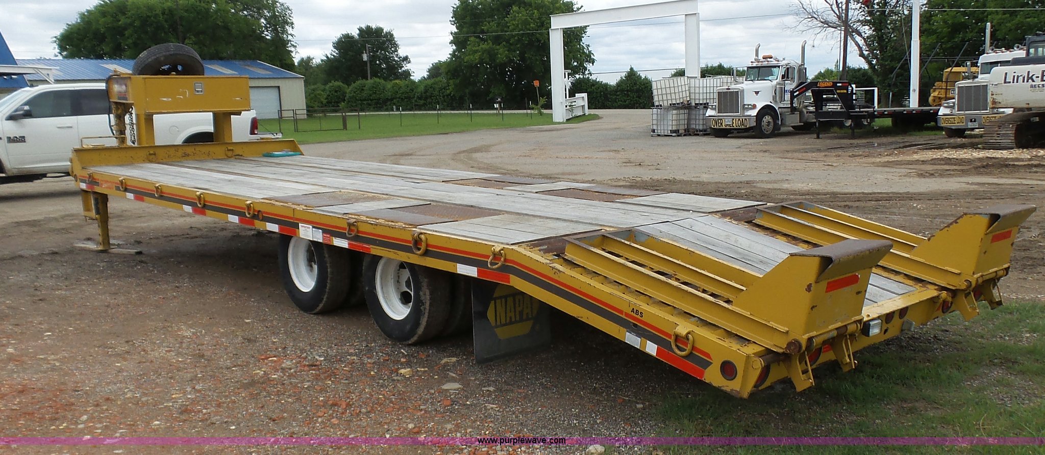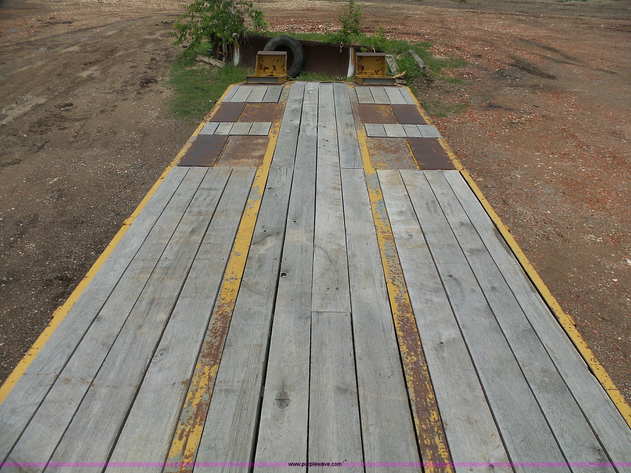 Purple Wave is selling a used Equip. Trailer in Texas. This item is a 2000 Interstate G20DT equipment trailer with the following: 37'L x 102"W overall, 24'L deck, 34" side height, 34" floor height, 5'L dovetail, 5'L ramps, (18) d-ring tie downs, Wood/steel deck, Toolbox, 2 5/16" gooseneck hitch, Dual leg two speed landing gear, Spring suspension, Electric brakes, Tandem axle, Steel wheels, LT235/85R16 tires, GAWR 20,000 lbs, Spare tire and wheel