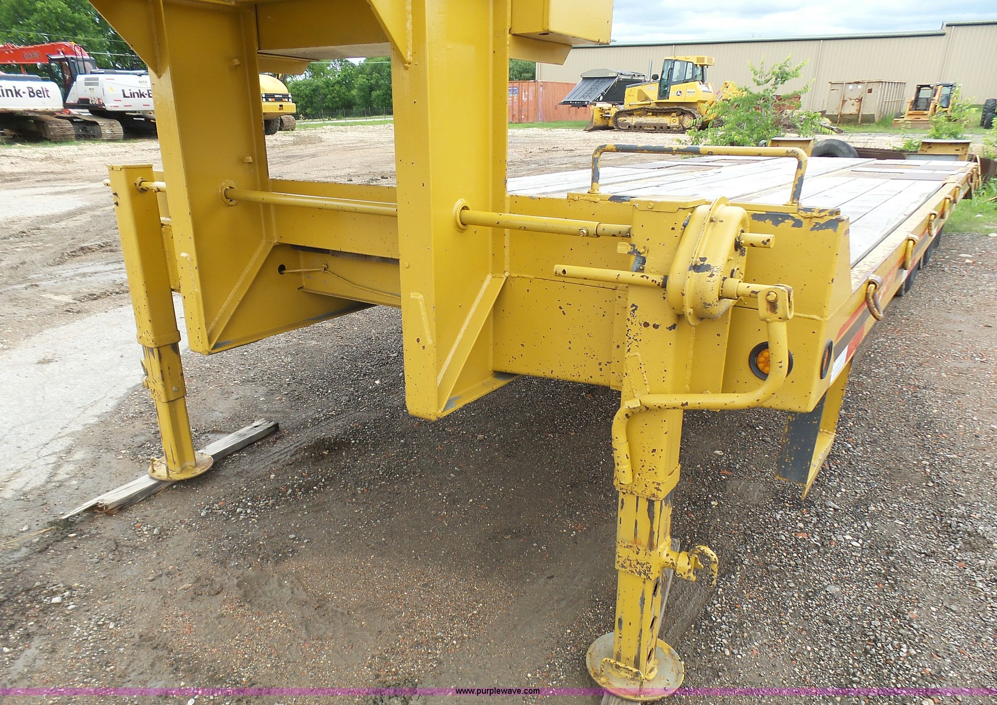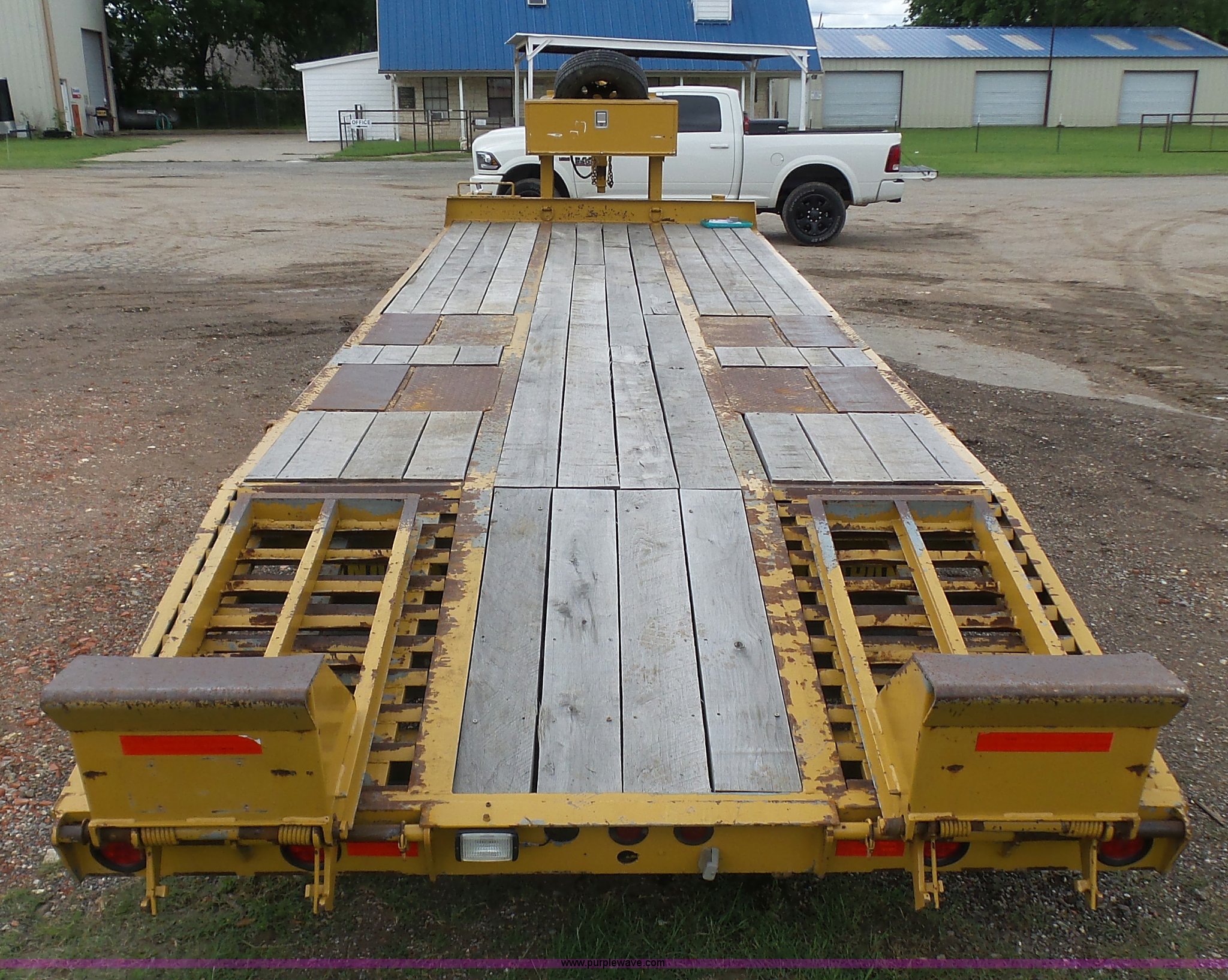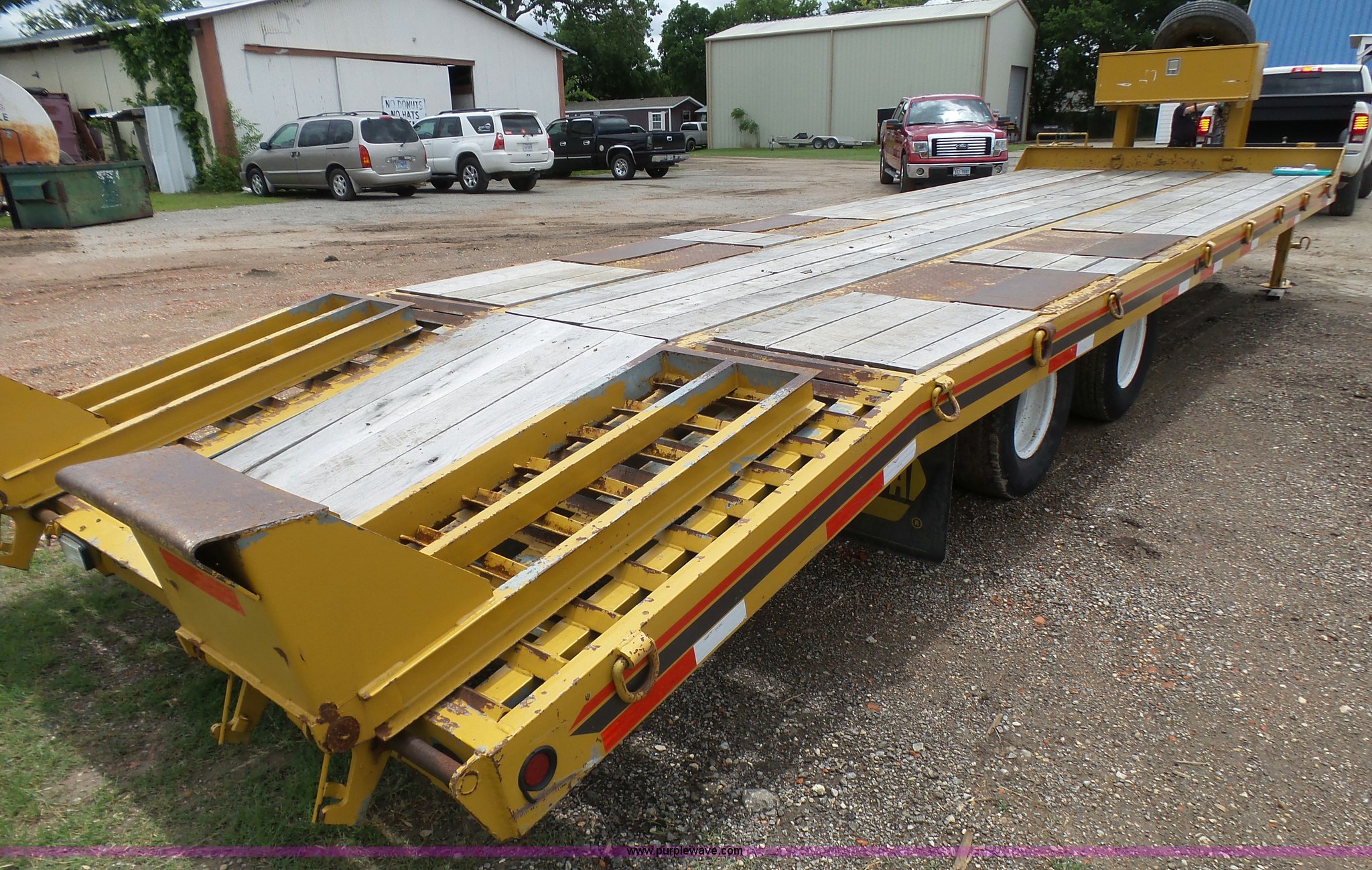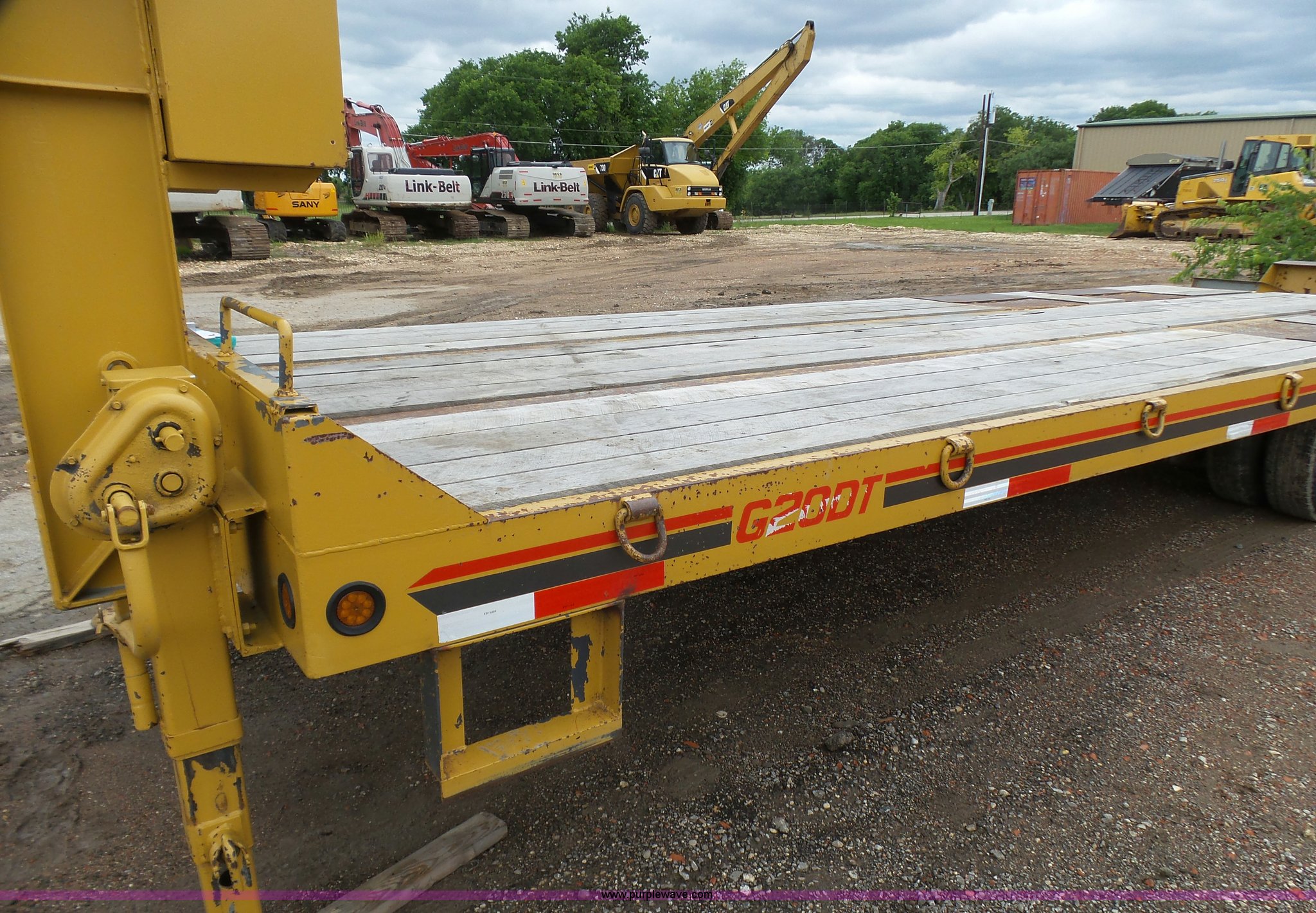 Purple Wave is selling a used Equip. Trailer in Texas. This item is a 2000 Interstate G20DT equipment trailer with the following: 37'L x 102"W overall, 24'L deck, 34" side height, 34" floor height, 5'L dovetail, 5'L ramps, (18) d-ring tie downs, Wood/steel deck, Toolbox, 2 5/16" gooseneck hitch, Dual leg two speed landing gear, Spring suspension, Electric brakes, Tandem axle, Steel wheels, LT235/85R16 tires, GAWR 20,000 lbs, Spare tire and wheel