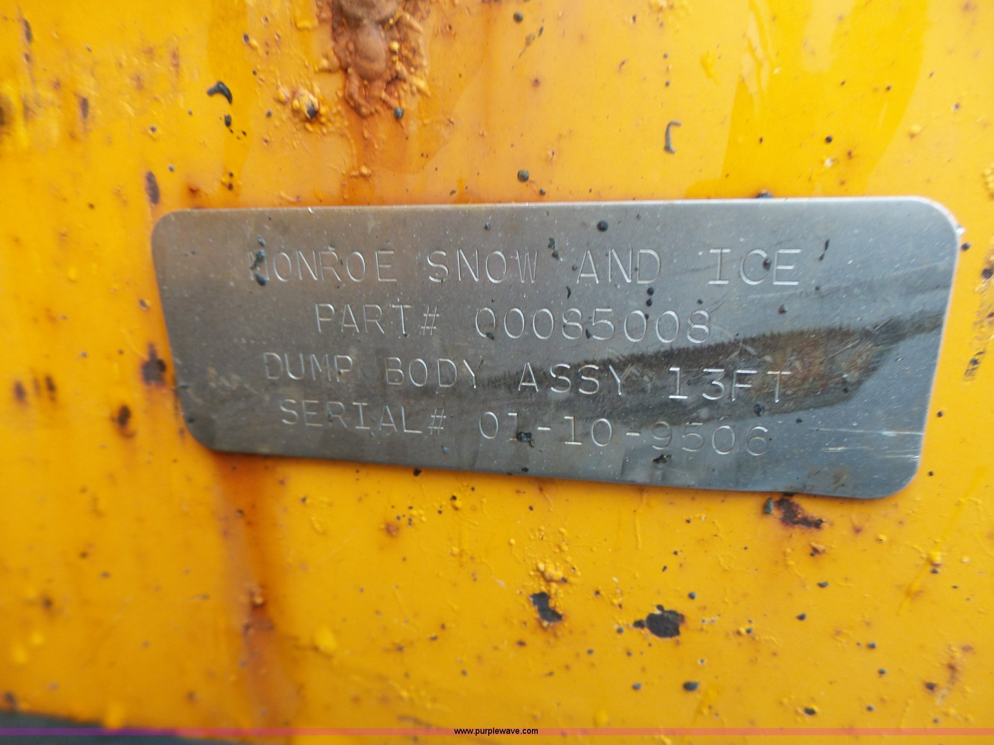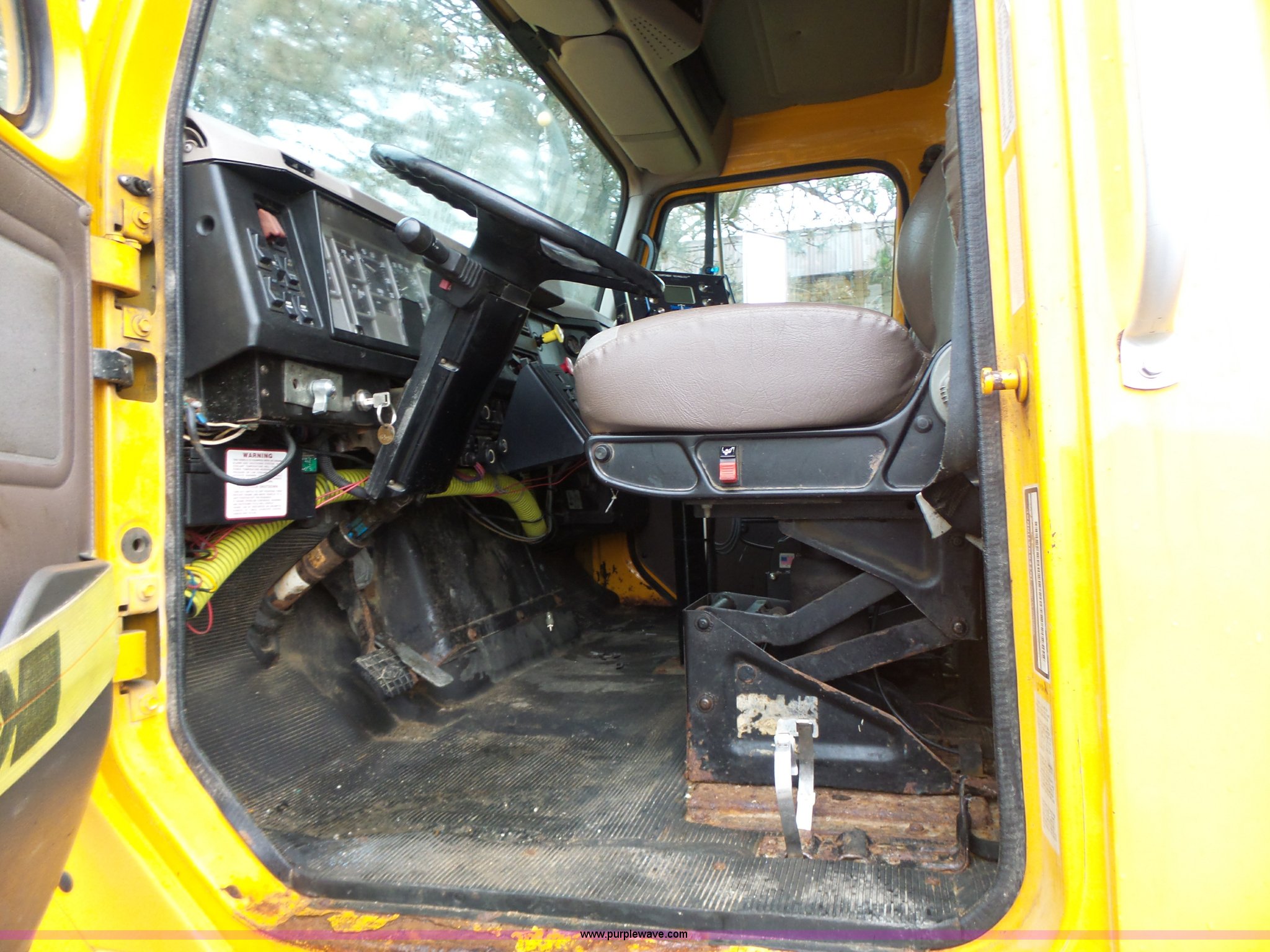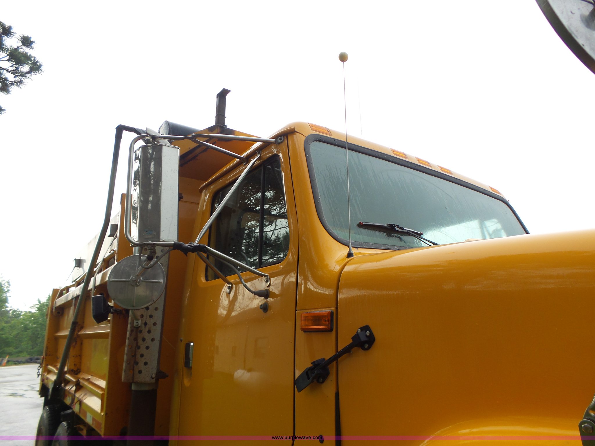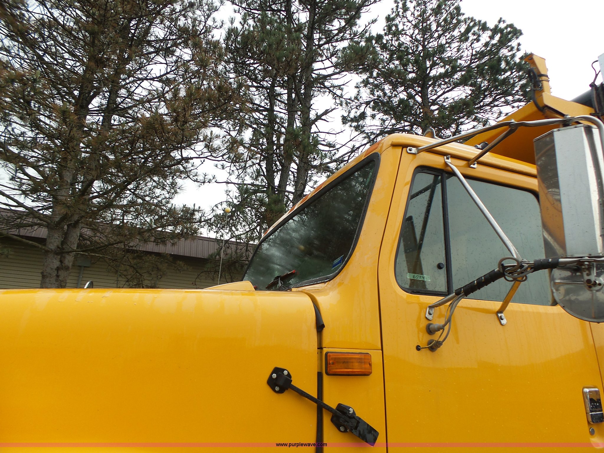 Purple Wave is selling a used Construction Dump Truck in Missouri. This item is a 2002 International F2554 dump truck with the following: 274,446 miles on odometer, 11,885 hours on meter, International DT530 8.7L L6 turbo diesel engine, Automatic transmission, Tandem axle, Inter-axle differential lock, AC and heat, Cruise, AM/FM, Power windows, Power and heated mirrors, Air suspension seat, Block heater, Monroe 00085008 steel dump bed, 13'L x 8'W, 41" side height, Single ram hoist, Bed vibrator, Roll-over tarp, Toolboxes, (2) plows, No. P2432, P2624, Plows unattached, but included, Single fuel tank, Trailer wiring, Spring suspension, Air brakes, 315/8R22.5 front tires, 11R22.5 rear tires, MODOT ID 6594