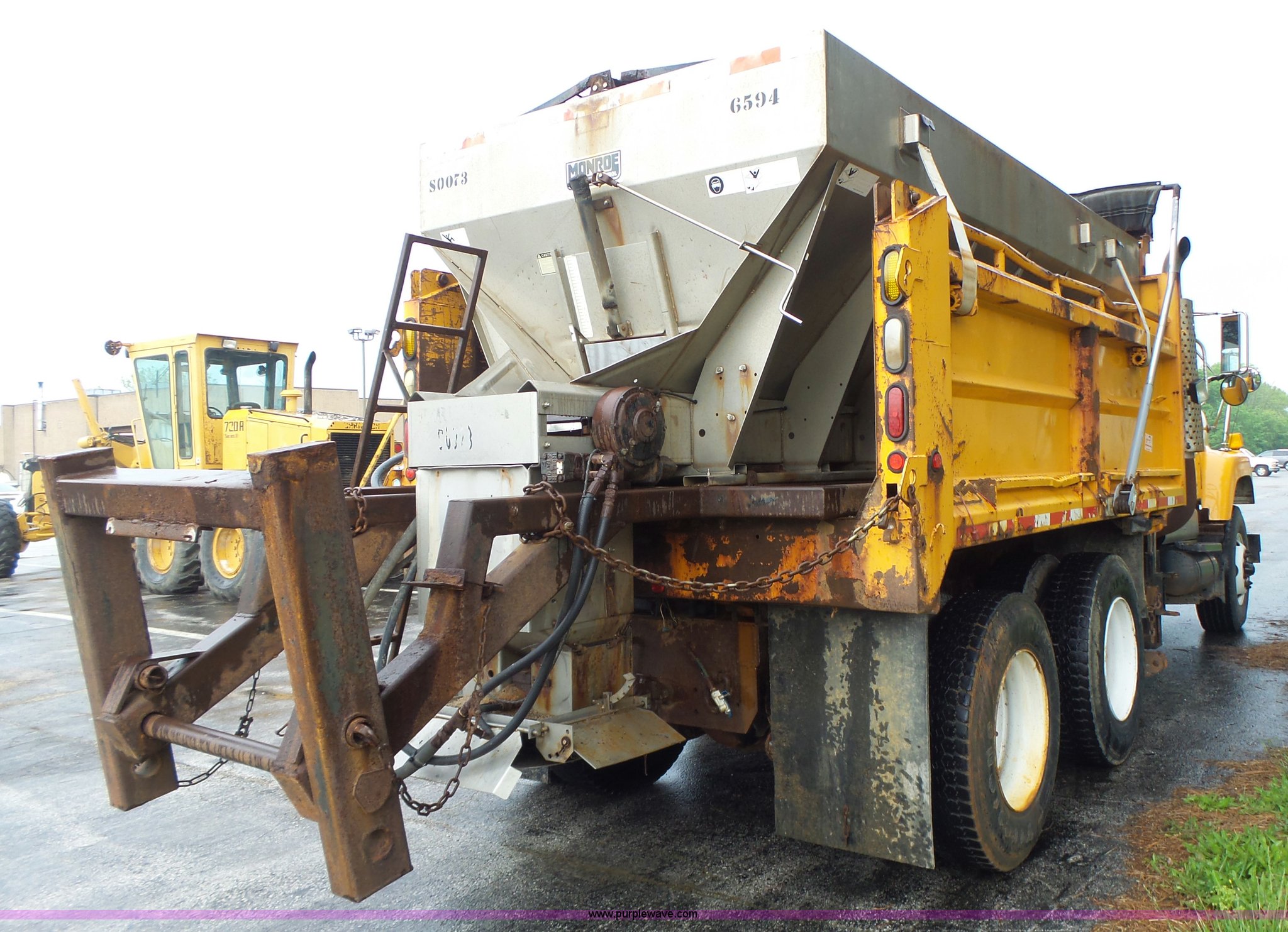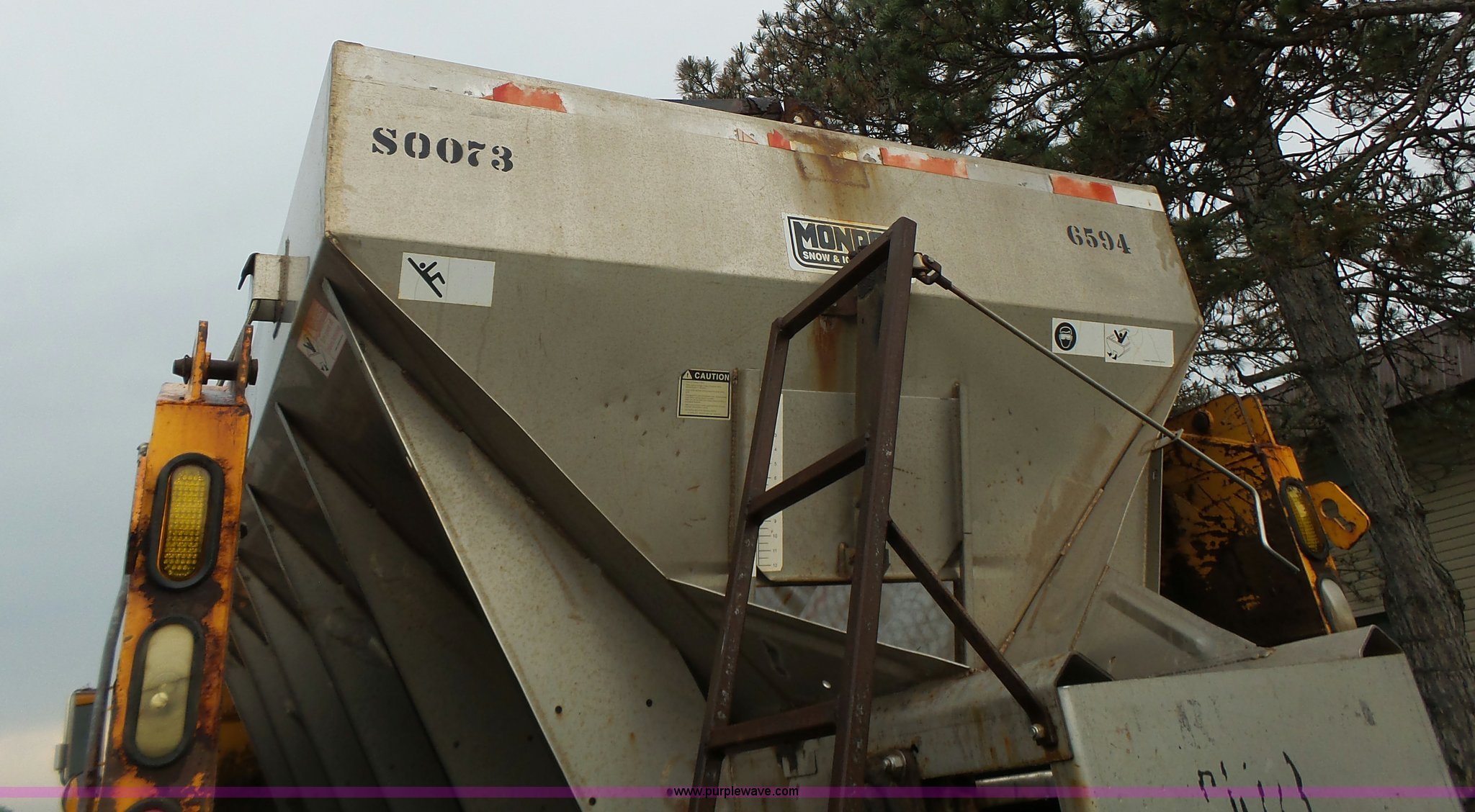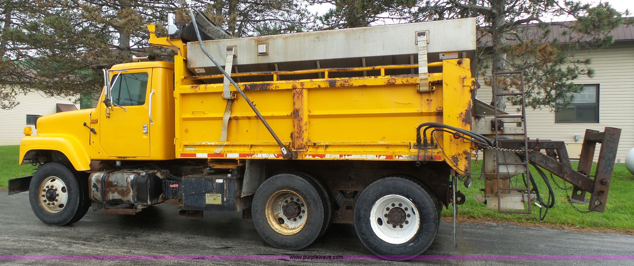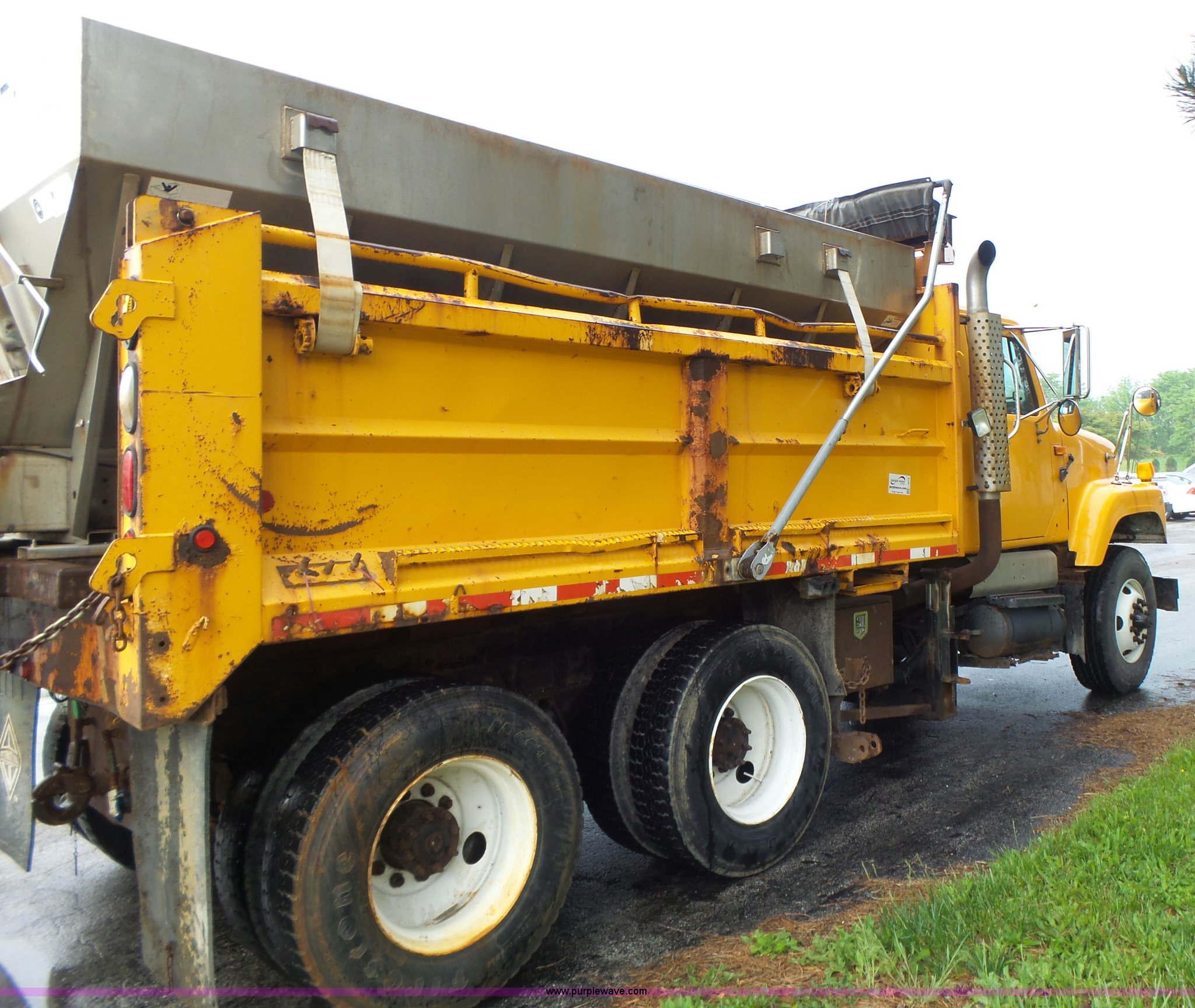 Purple Wave is selling a used Construction Dump Truck in Missouri. This item is a 2002 International F2554 dump truck with the following: 274,446 miles on odometer, 11,885 hours on meter, International DT530 8.7L L6 turbo diesel engine, Automatic transmission, Tandem axle, Inter-axle differential lock, AC and heat, Cruise, AM/FM, Power windows, Power and heated mirrors, Air suspension seat, Block heater, Monroe 00085008 steel dump bed, 13'L x 8'W, 41" side height, Single ram hoist, Bed vibrator, Roll-over tarp, Toolboxes, (2) plows, No. P2432, P2624, Plows unattached, but included, Single fuel tank, Trailer wiring, Spring suspension, Air brakes, 315/8R22.5 front tires, 11R22.5 rear tires, MODOT ID 6594
