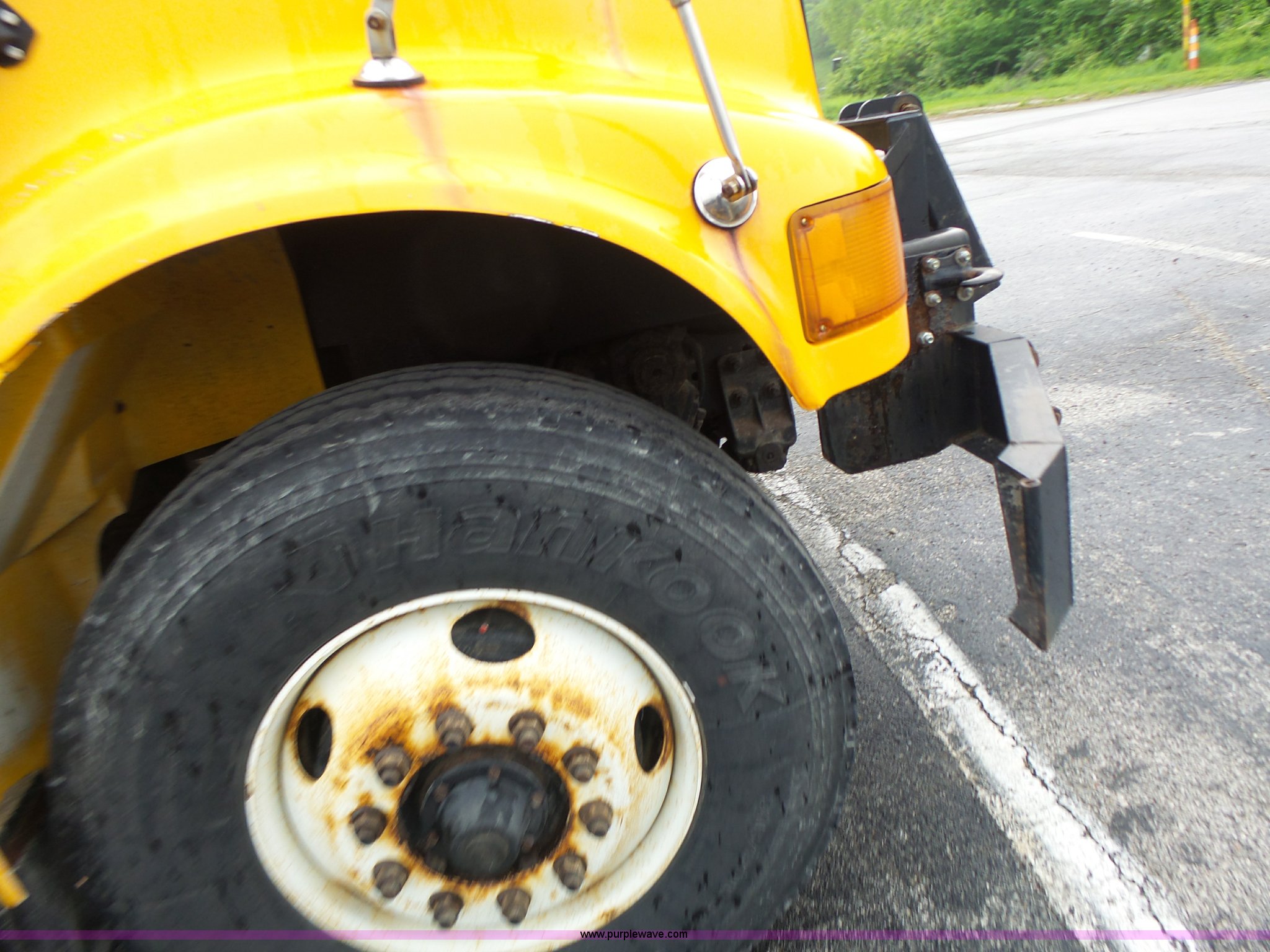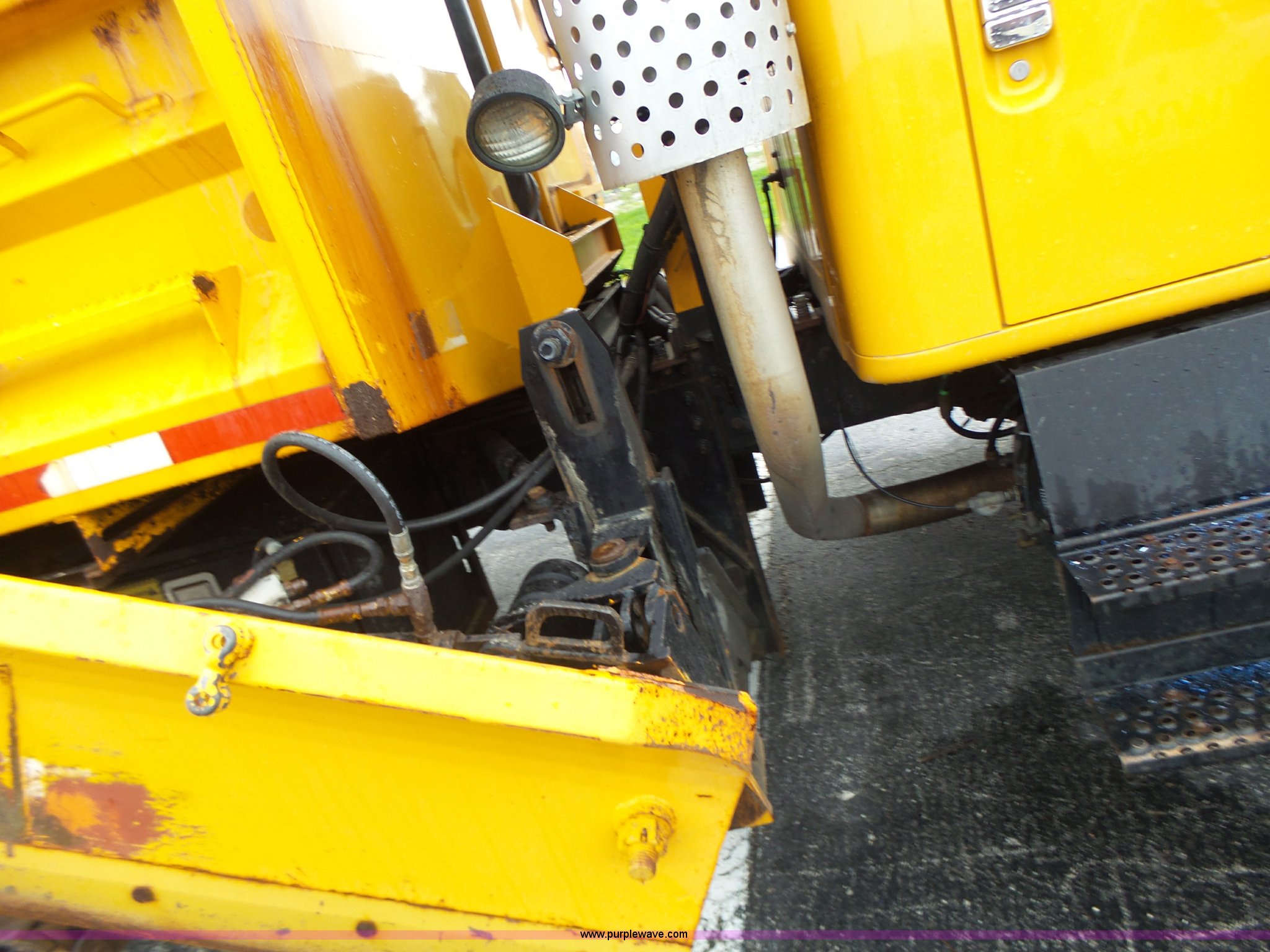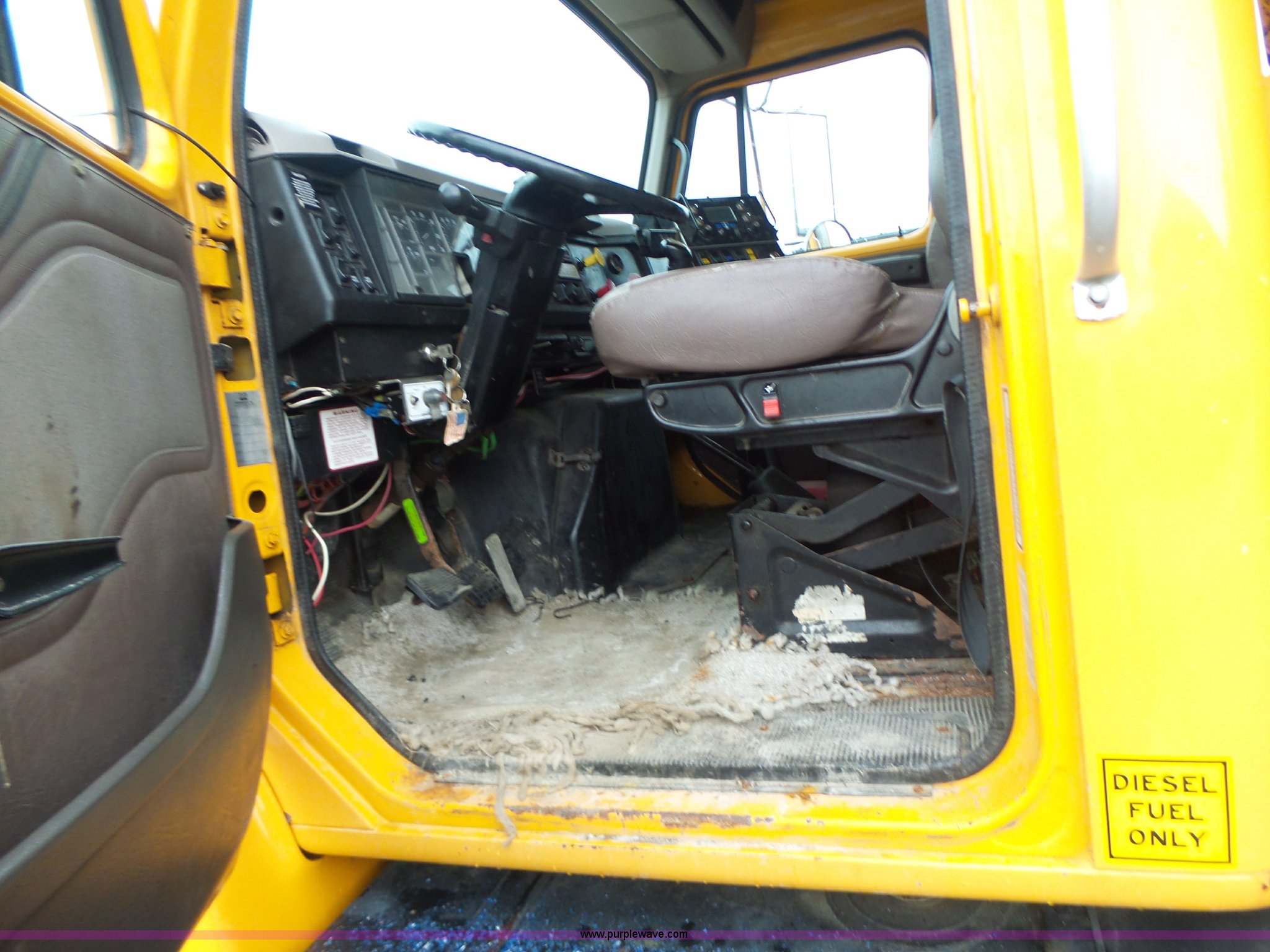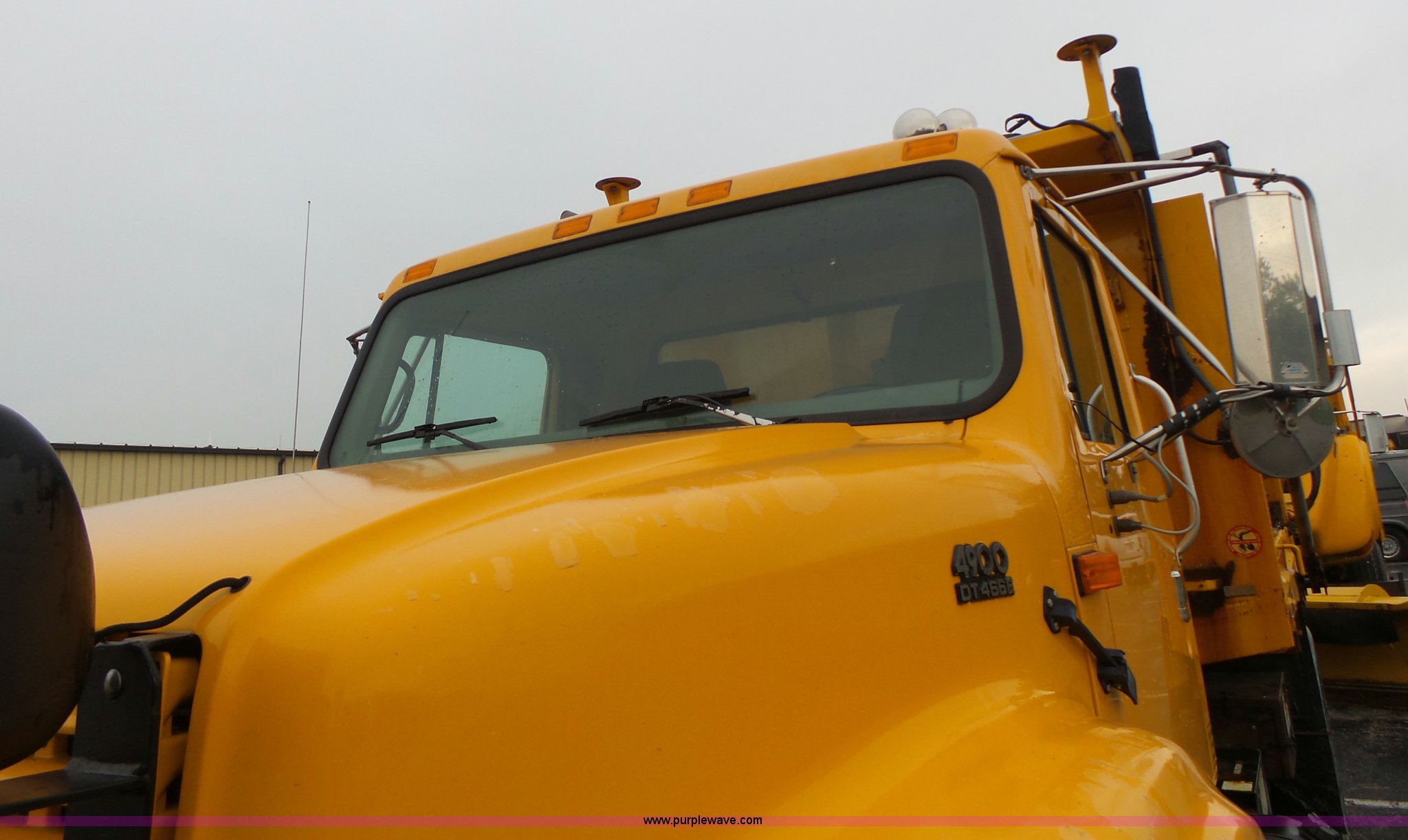 Purple Wave is selling a used Construction Dump Truck in Missouri. This item is a 2002 International 4900 dump truck with the following: 152,217 miles on odometer, 8,987 hours on meter, International DT466 7.6L L6 turbo diesel engine, Eaton Fuller six speed manual transmission, AC and heat, Cruise, AM/FM, Power windows, Power and heated mirrors, Monroe steel dump bed, 10'L x 8'W, 30" side height, Single ram hoist, Bed vibrator, Roll-over tarp, Flink spreader, Serial S1445, Side plow, Serial P0116, Single fuel tank, Pintle hitch, Trailer wiring, Spring suspension, Air brakes, 315/80R22.5 front tires, 11R22.5 rear tires, MODOT ID 6588