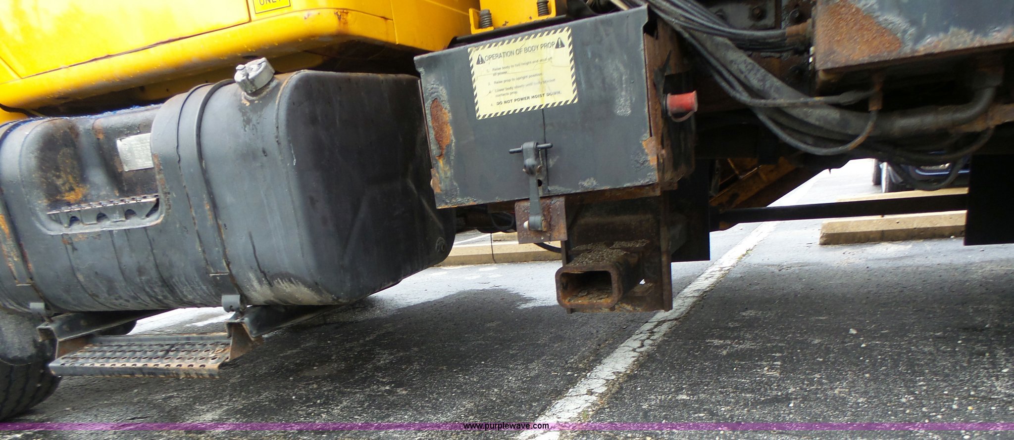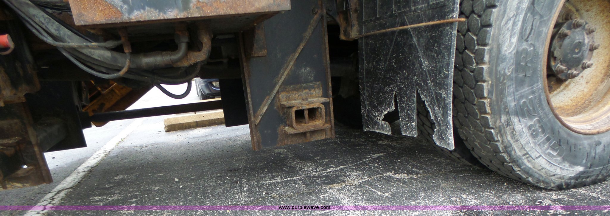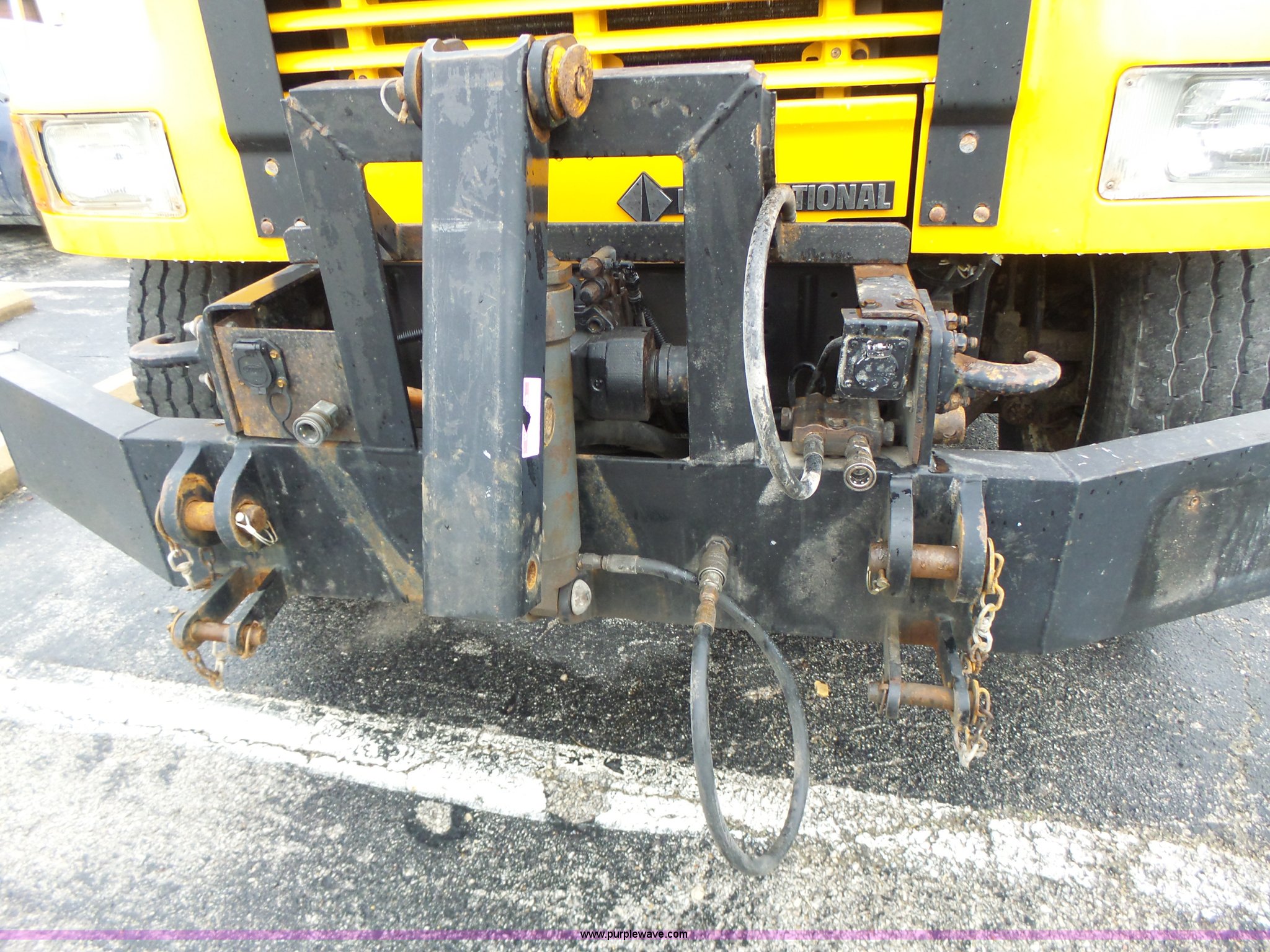 Purple Wave is selling a used Construction Dump Truck in Missouri. This item is a 2002 International 4900 dump truck with the following: 152,217 miles on odometer, 8,987 hours on meter, International DT466 7.6L L6 turbo diesel engine, Eaton Fuller six speed manual transmission, AC and heat, Cruise, AM/FM, Power windows, Power and heated mirrors, Monroe steel dump bed, 10'L x 8'W, 30" side height, Single ram hoist, Bed vibrator, Roll-over tarp, Flink spreader, Serial S1445, Side plow, Serial P0116, Single fuel tank, Pintle hitch, Trailer wiring, Spring suspension, Air brakes, 315/80R22.5 front tires, 11R22.5 rear tires, MODOT ID 6588