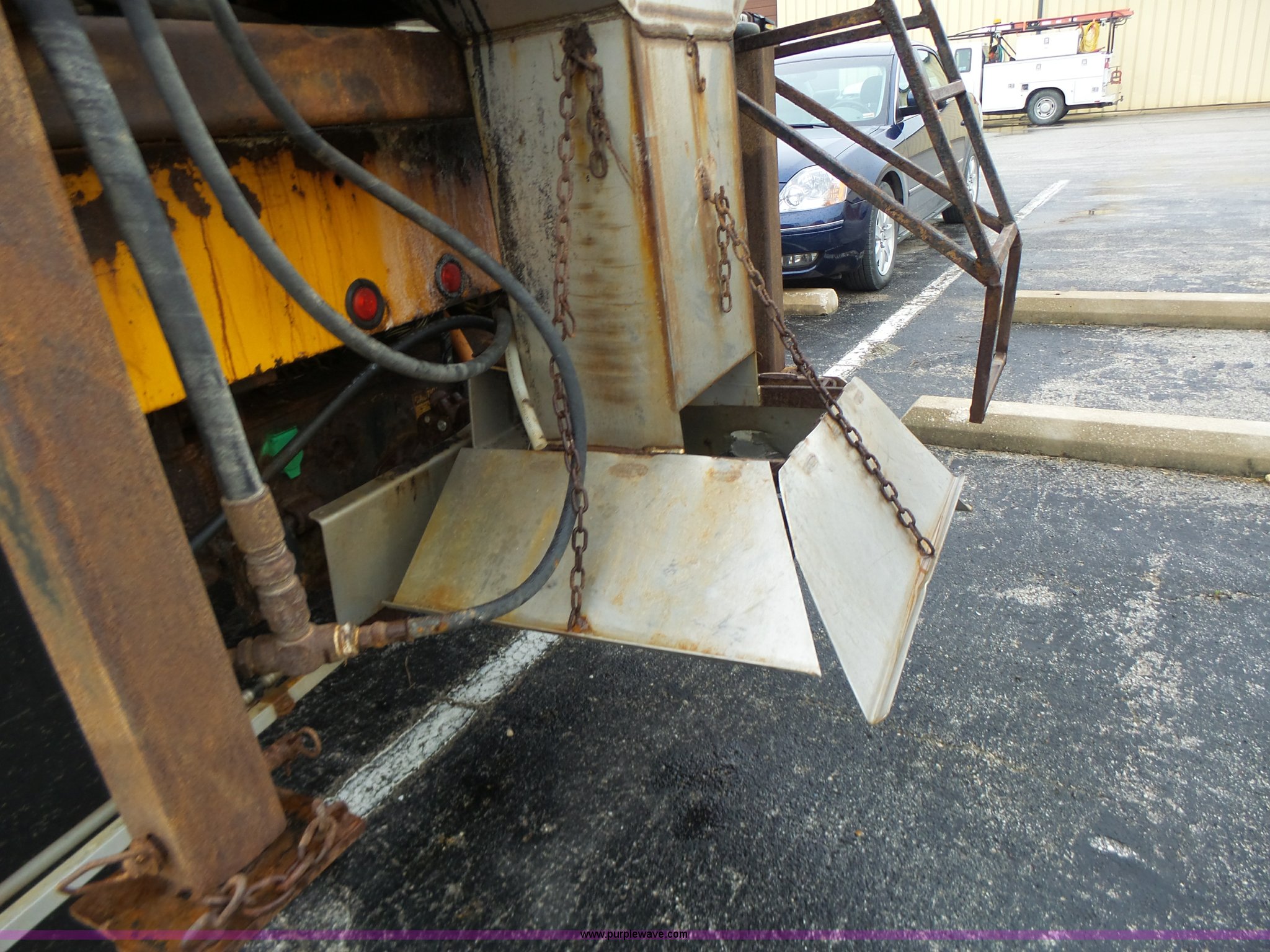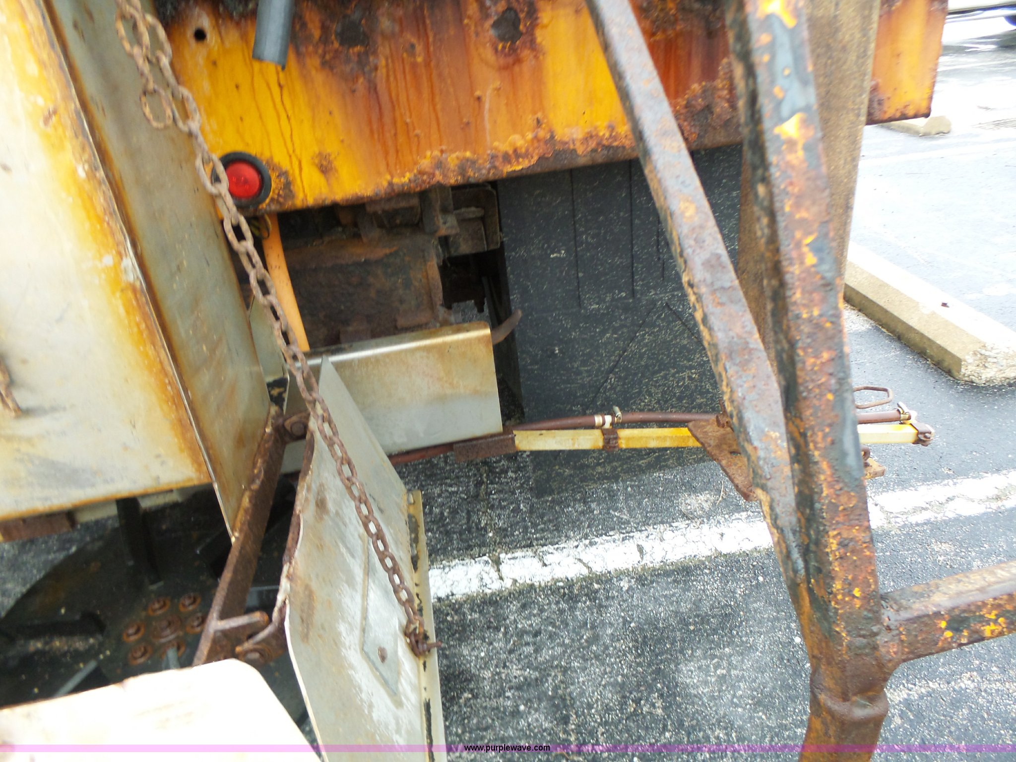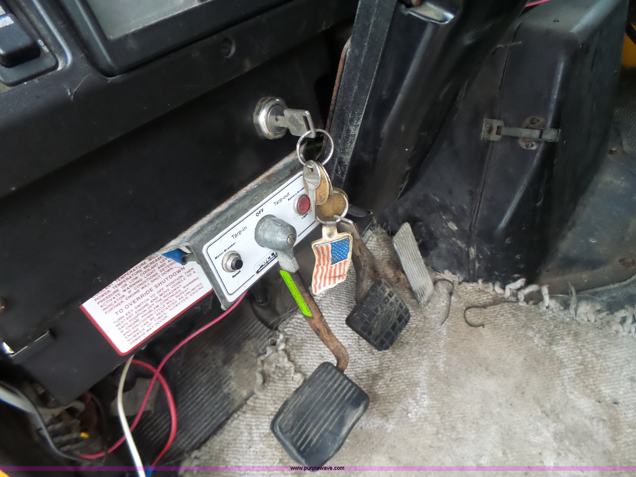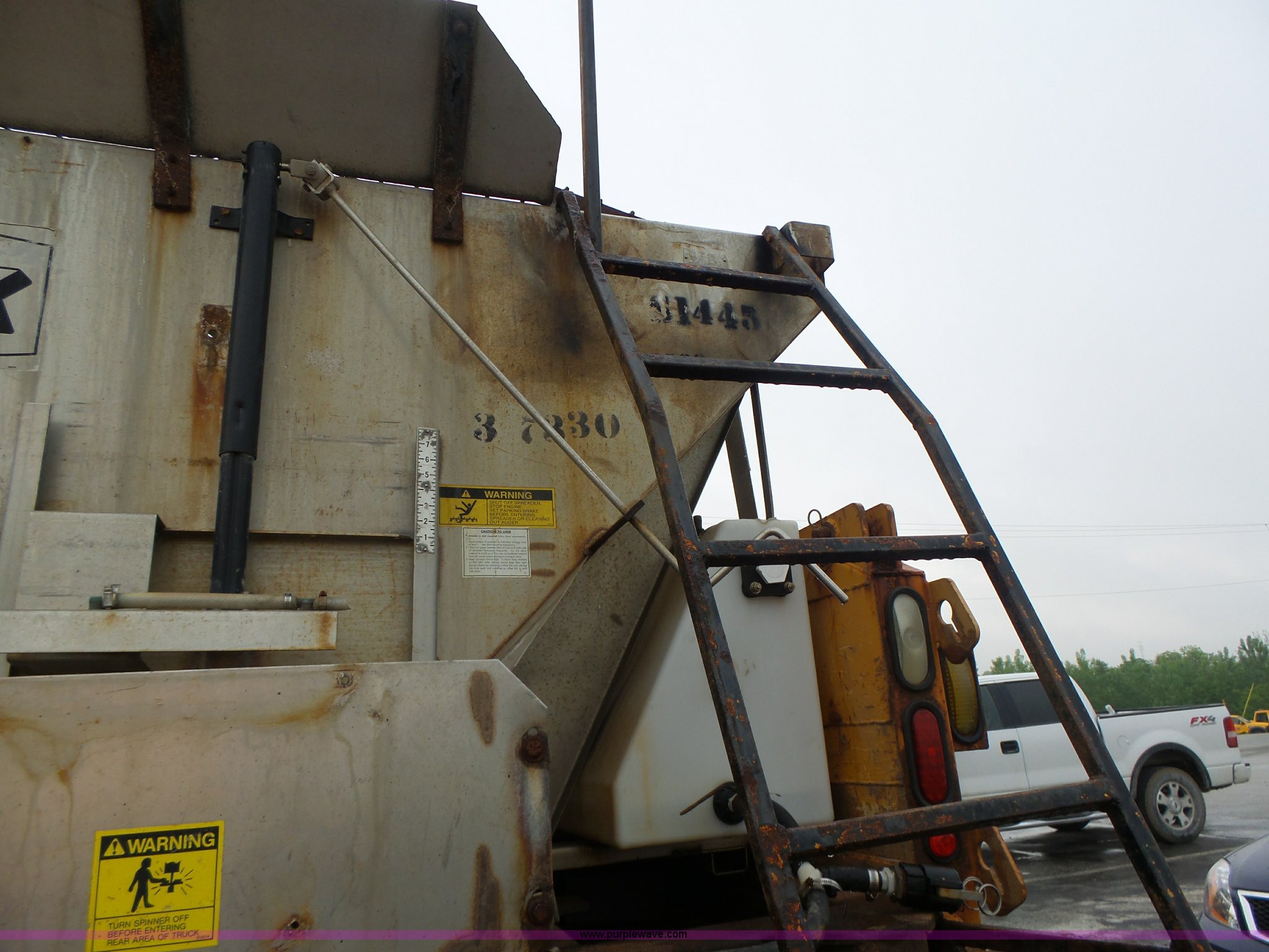 Purple Wave is selling a used Construction Dump Truck in Missouri. This item is a 2002 International 4900 dump truck with the following: 152,217 miles on odometer, 8,987 hours on meter, International DT466 7.6L L6 turbo diesel engine, Eaton Fuller six speed manual transmission, AC and heat, Cruise, AM/FM, Power windows, Power and heated mirrors, Monroe steel dump bed, 10'L x 8'W, 30" side height, Single ram hoist, Bed vibrator, Roll-over tarp, Flink spreader, Serial S1445, Side plow, Serial P0116, Single fuel tank, Pintle hitch, Trailer wiring, Spring suspension, Air brakes, 315/80R22.5 front tires, 11R22.5 rear tires, MODOT ID 6588