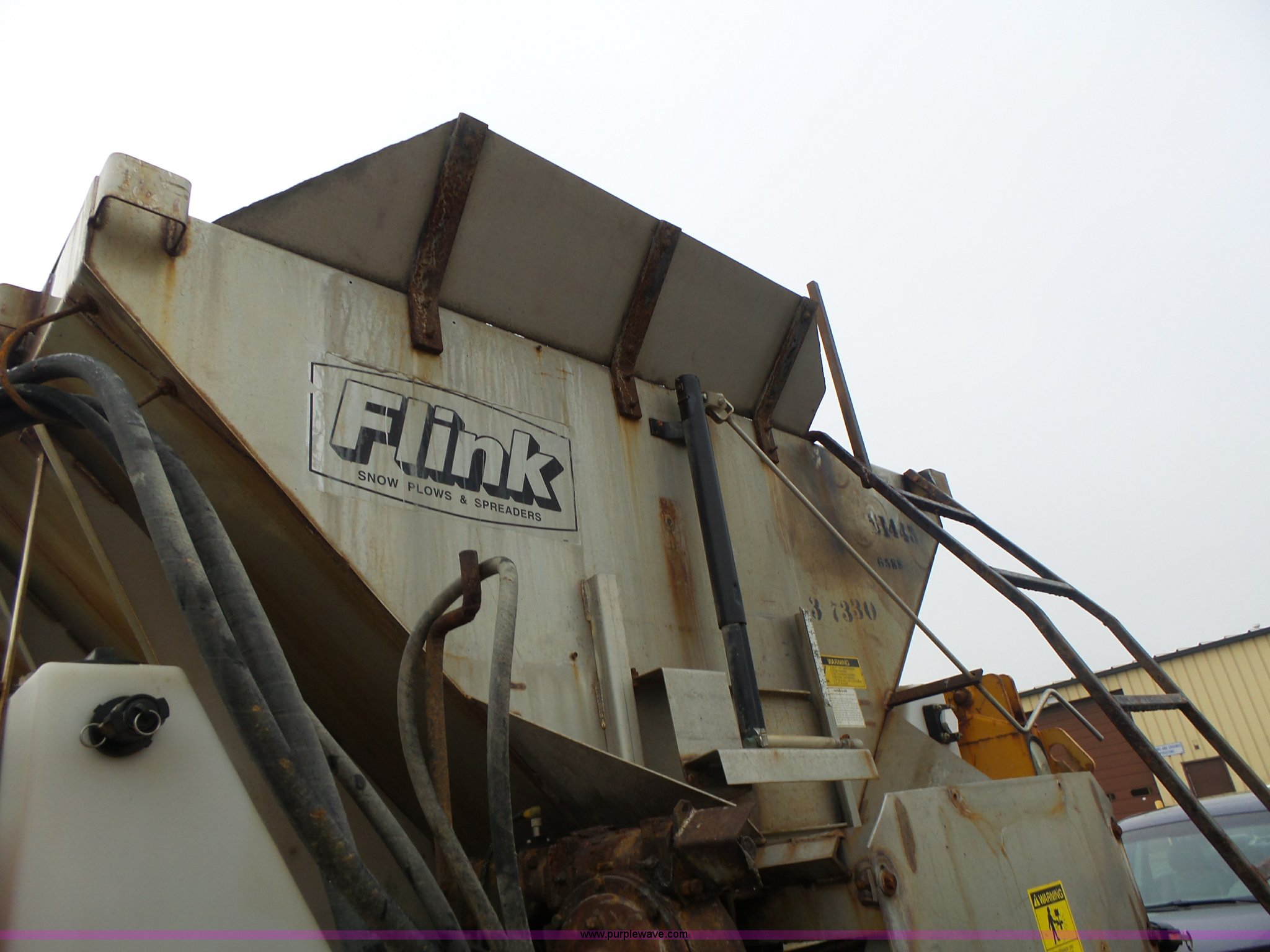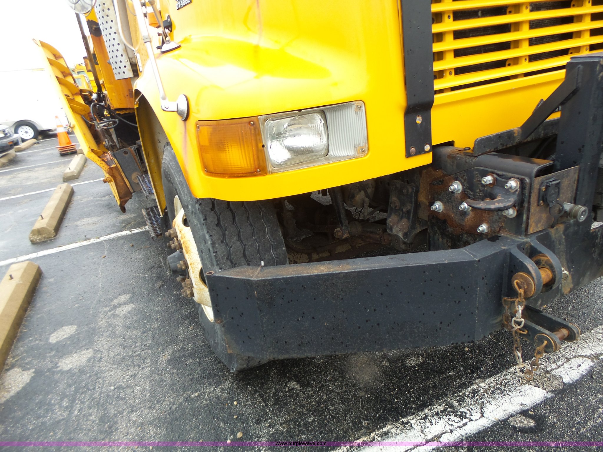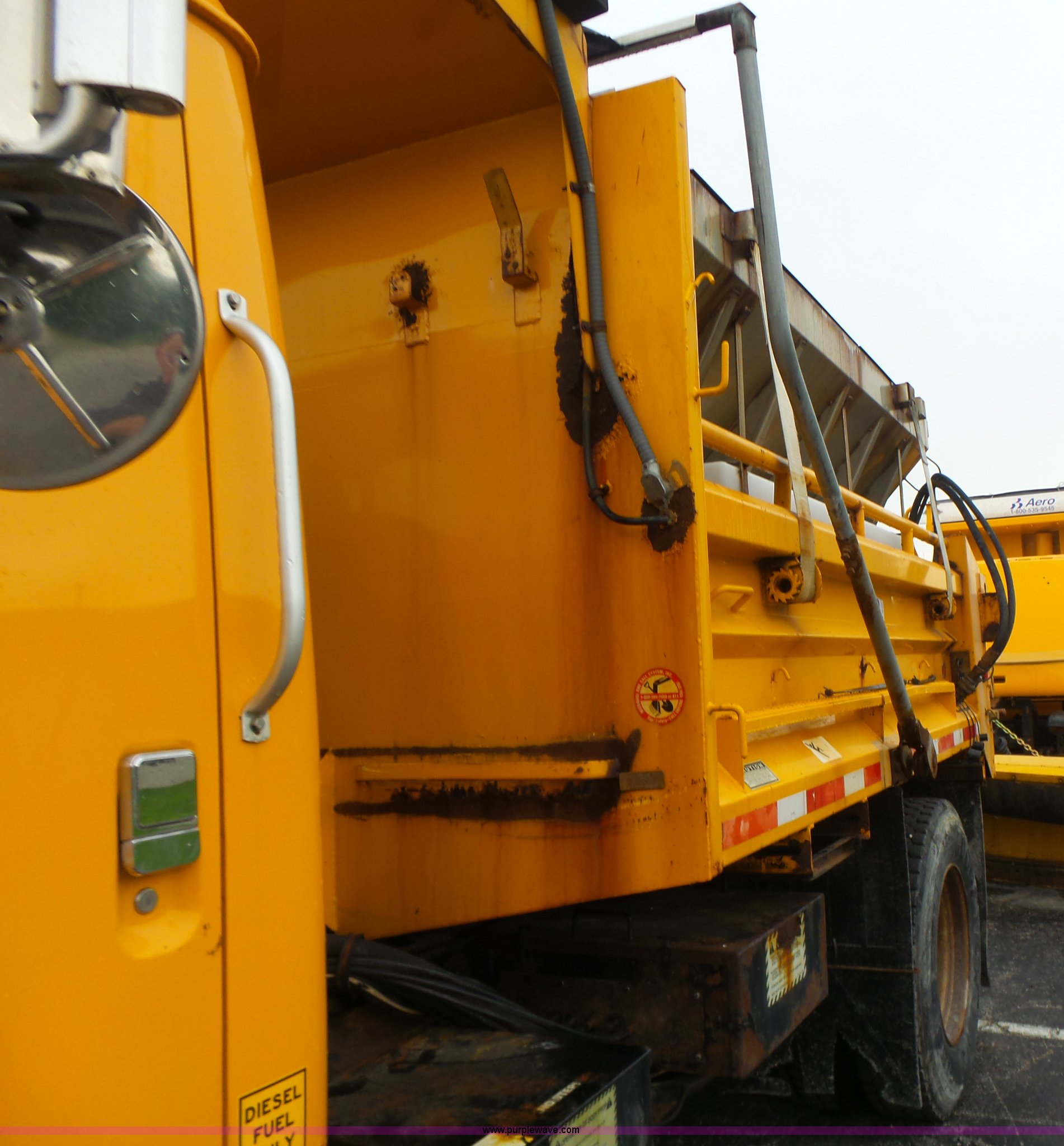 2002 International 4900 dump truck. 152,217 miles on odometer, 8,987 hours on meter, International DT466 7.6L L6 turbo diesel engine, Eaton Fuller six speed manual transmission, AC and heat, Cruise, AM/FM, Power windows, Power and heated mirrors, Monroe steel dump bed 10'L x 8'W, 30" side height, Single ram hoist, Bed vibrator, Roll-over tarp, Flink spreader Serial S1445, Side plow Serial P0116, Single fuel tank, Pintle hitch, Trailer wiring, Spring suspension, Air brakes, 315/80R22.5 front tires, 11R22.5 rear tires, MODOT ID 6588. Missouri title. 1HTSDAARX2H524201. Shipping quotes available. Missouri Department of Transportation (MODOT). 1711 Highway 61 South. Hannibal, MO 63401