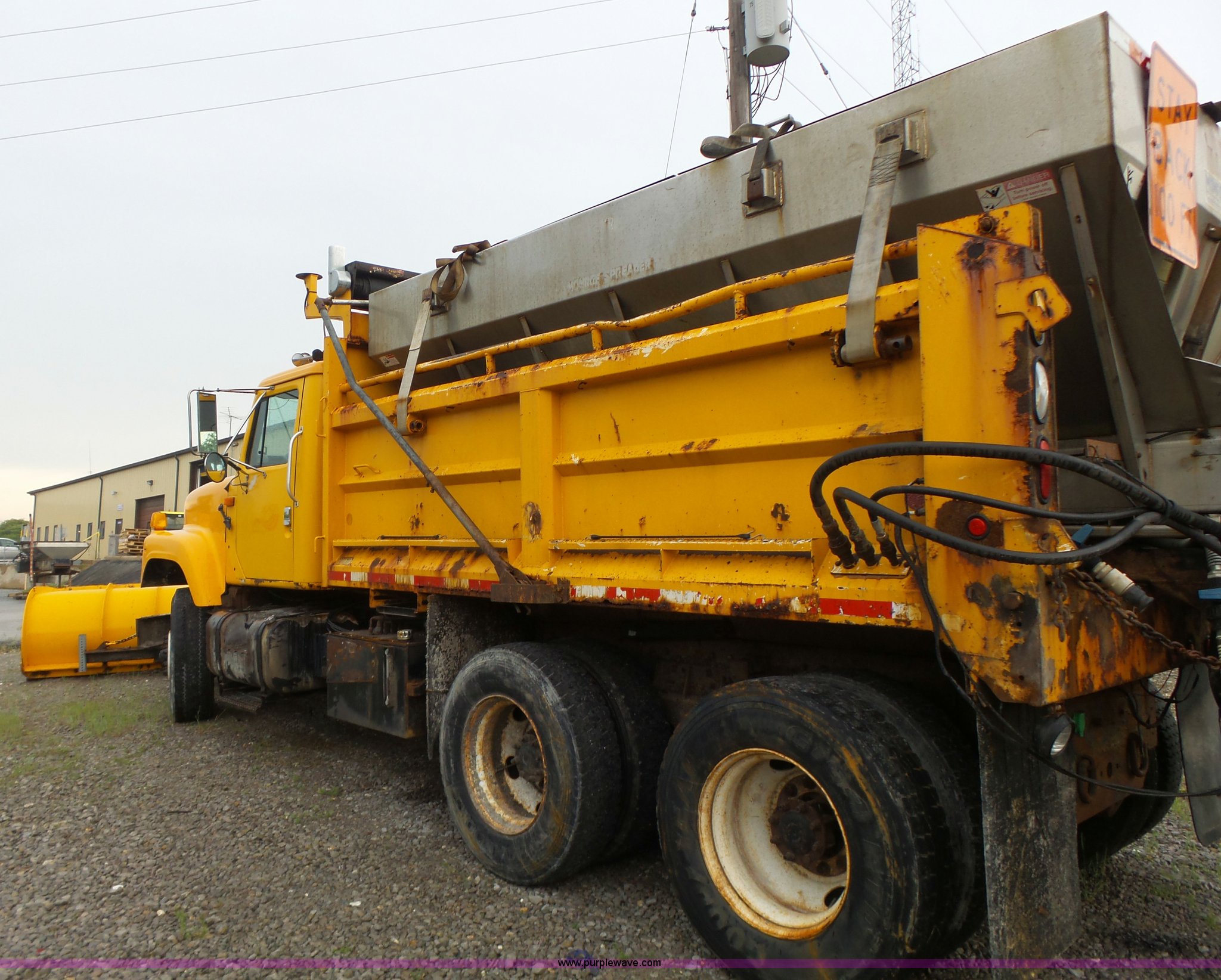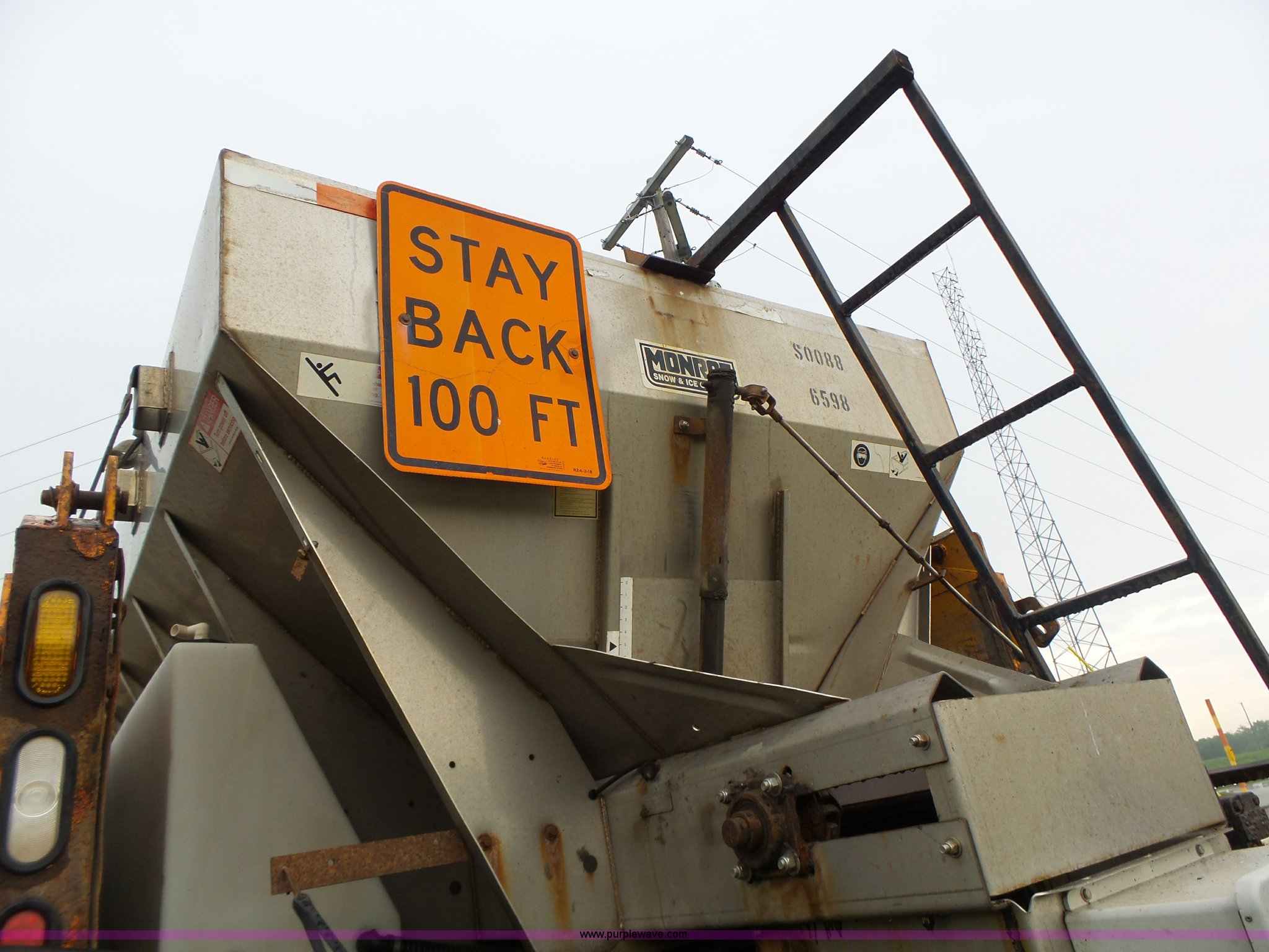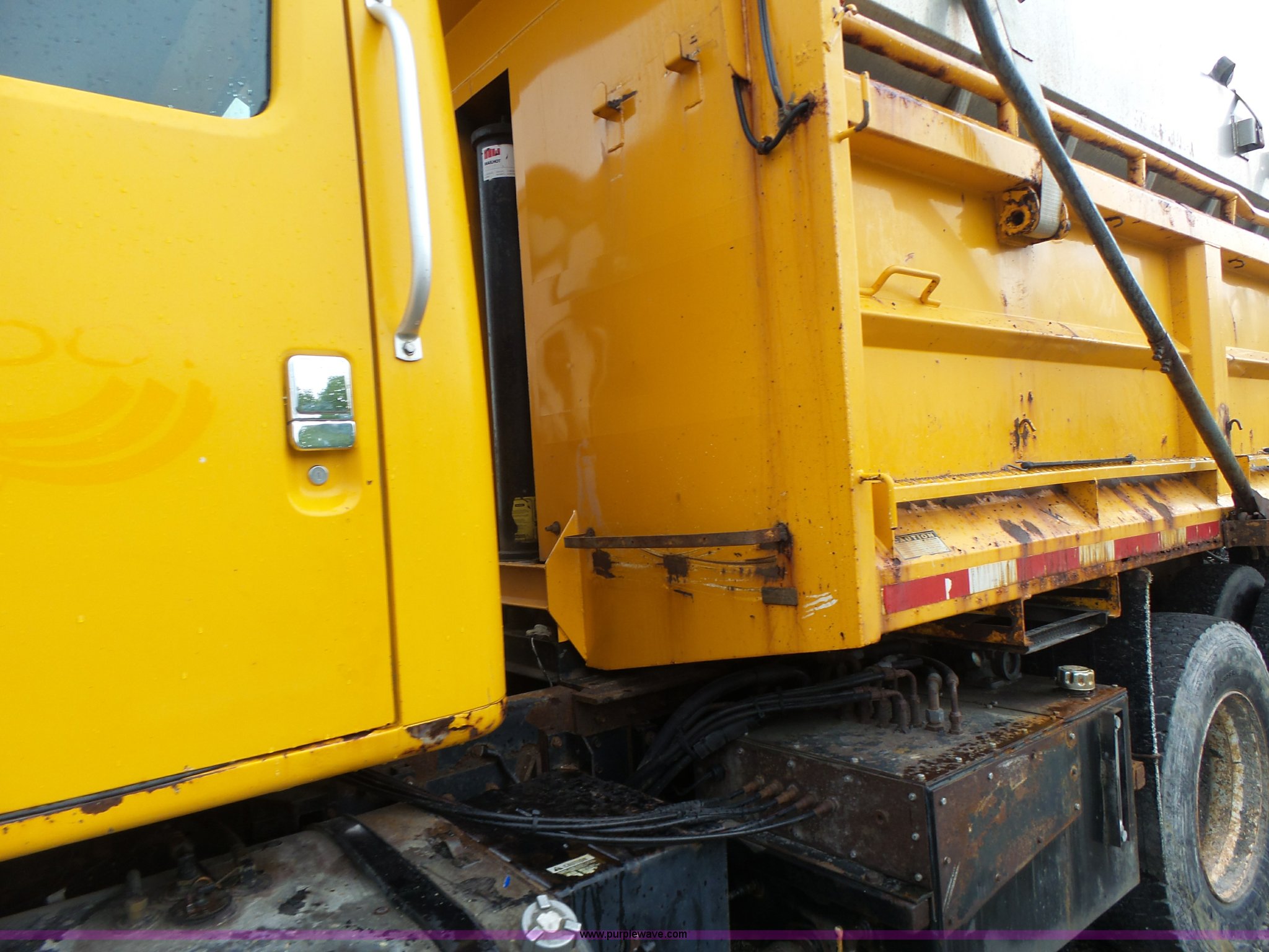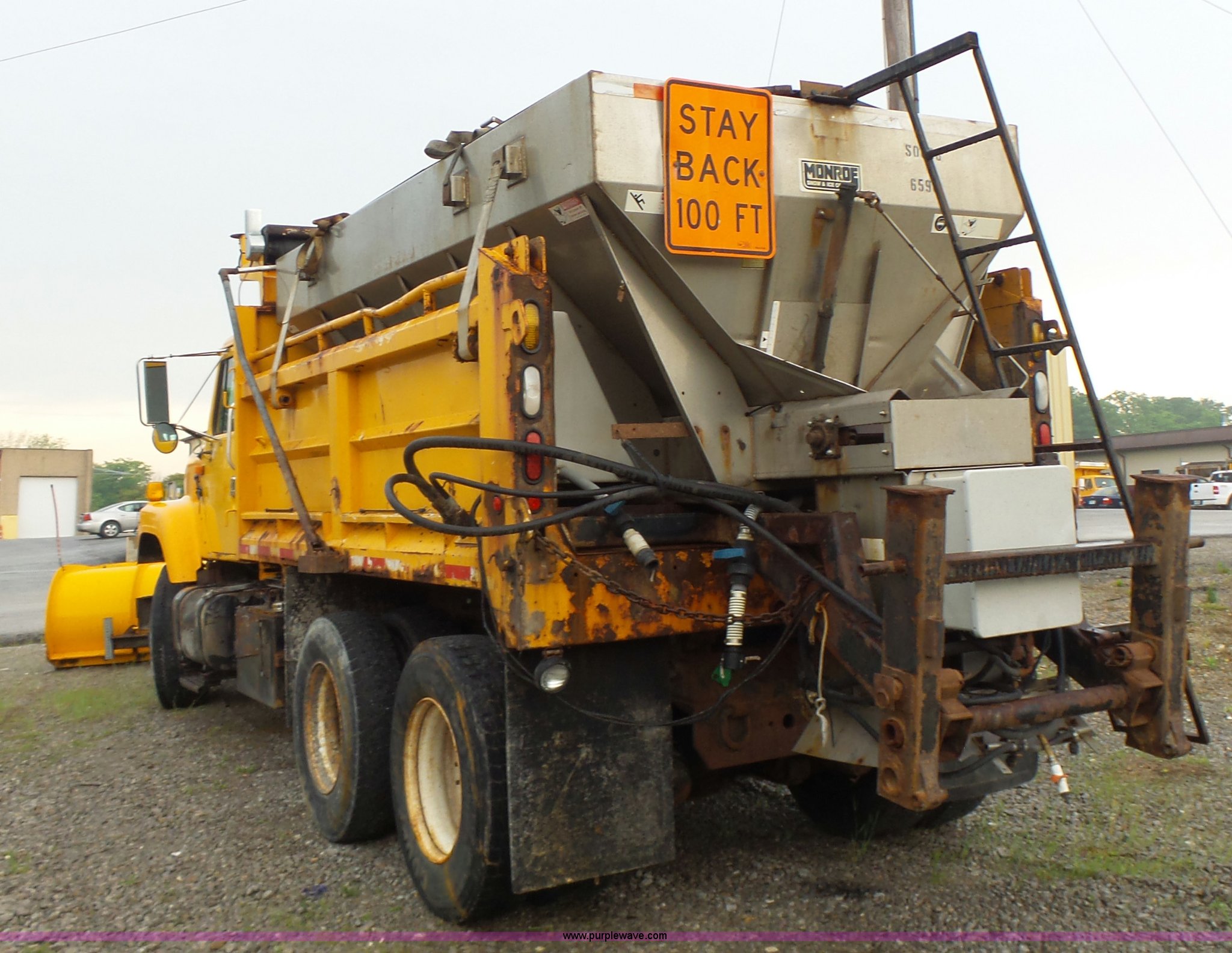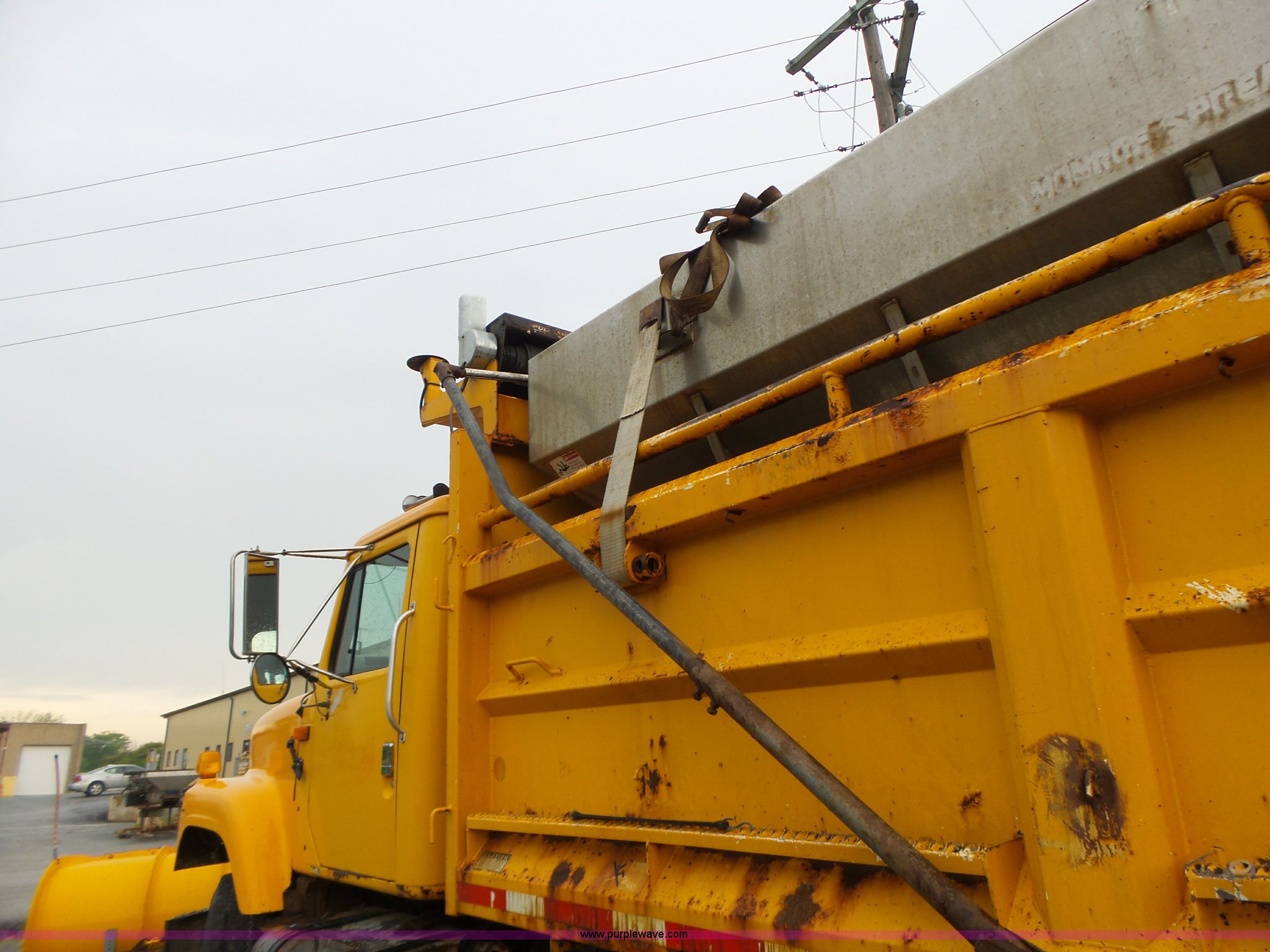 Purple Wave is selling a used Construction Dump Truck in Missouri. This item is a 2002 International F2554 dump truck with the following: 239,363 miles on odometer, 11,178 hours on meter, International DT530 8.7L L6 turbo diesel engine, Automatic transmission, Tandem axle, Inter-axle differential lock, AC and heat, Cruise, AM/FM, Power windows, Power and heated mirrors, Air suspension seat, Block heater, Monroe steel dump bed, 13'L x 8'W, 41" side height, Single ram hoist, Bed vibrator, Roll-over tarp, Toolboxes, Monroe 11'L spreader, Serial S0088, 8' side plow blade, Plow No. P0534, P0113, Single fuel tank, Trailer wiring, Spring suspension, Air brakes, 315/80R22.5 front tires, 11R22.5 rear tires, MODOT ID 6598