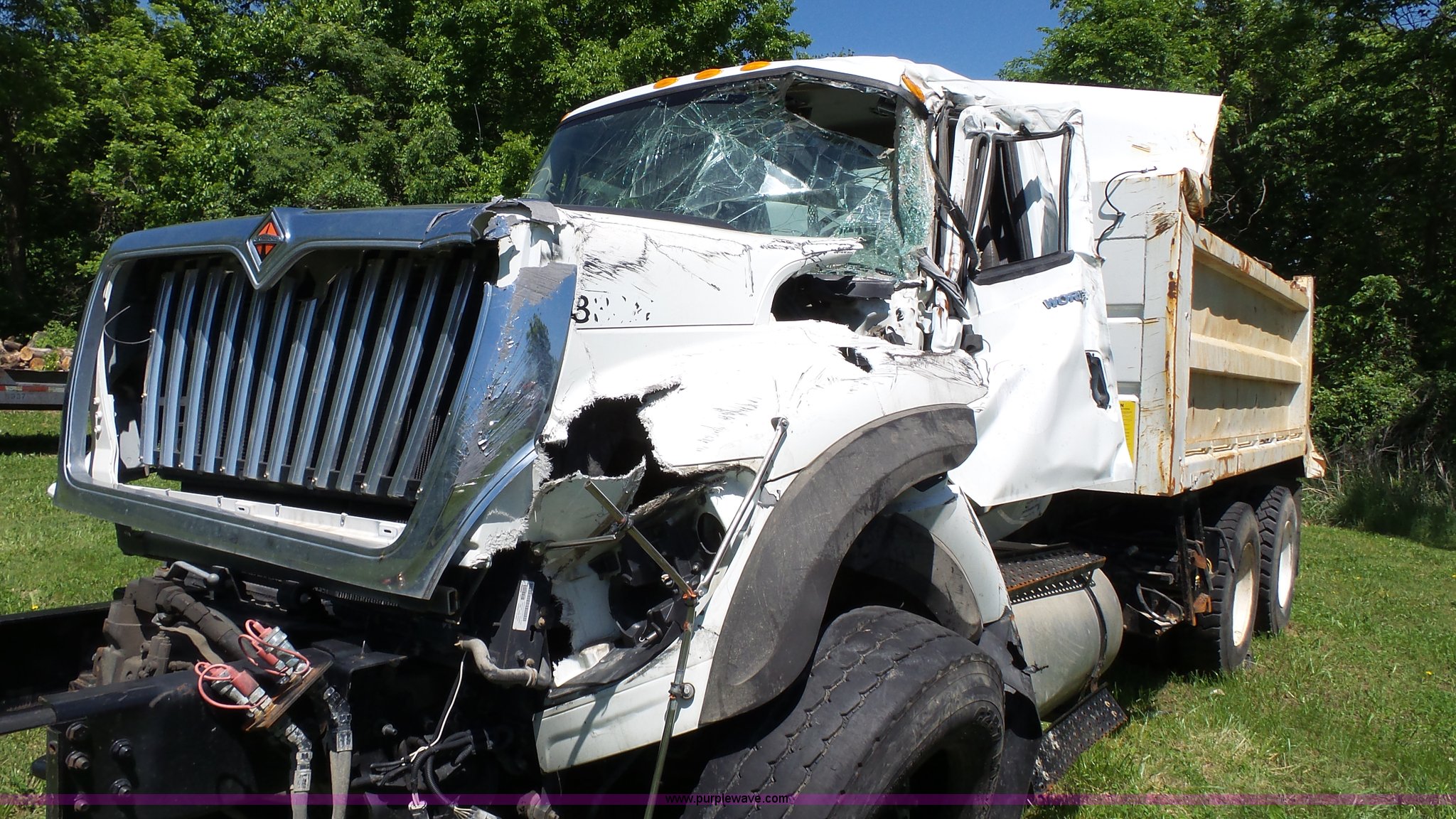 Purple Wave is selling a used Construction Dump Truck in Missouri. This item is a 2012 International Work Star 7500 dump truck with the following: Approximately 79,000 miles on vehicle, International Maxx Force 9.3L L6 turbo diesel engine, Automatic transmission, AC and heat, AM/FM, Air suspension seat, Air ride cab, Front mounted PTO, American FL-14 steel dump bed, 14'L x 8'W, 42" side height, Single ram hoist, Air operated end gate, Roll-over tarp, Single fuel tank, Rear auxiliary hydraulics, Pintle hitch, 198" wheelbase, Double frame suspension, Air brakes, 315/80R22.5 front tires, 11R22.8 rear tires, GVWR 64,180 lbs, FAWR 18,180 lbs, IAWR 23,000 lbs, RAWR 23,000 lbs, Rear air broken, Driver's side cracks, Vehicle wrecked