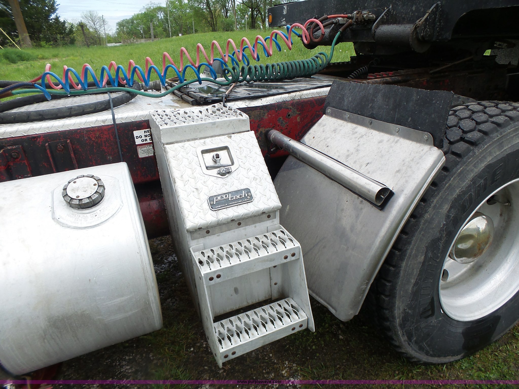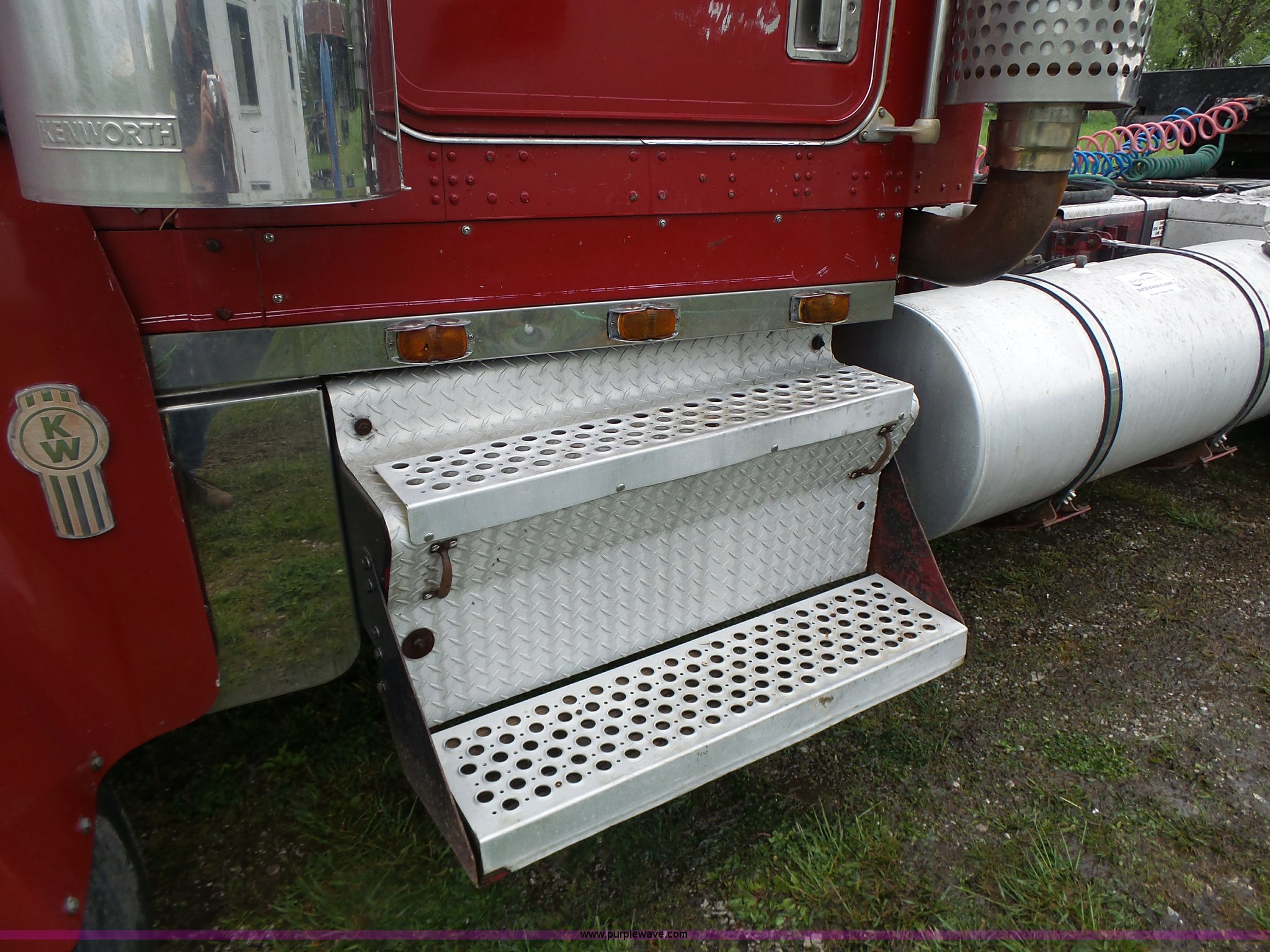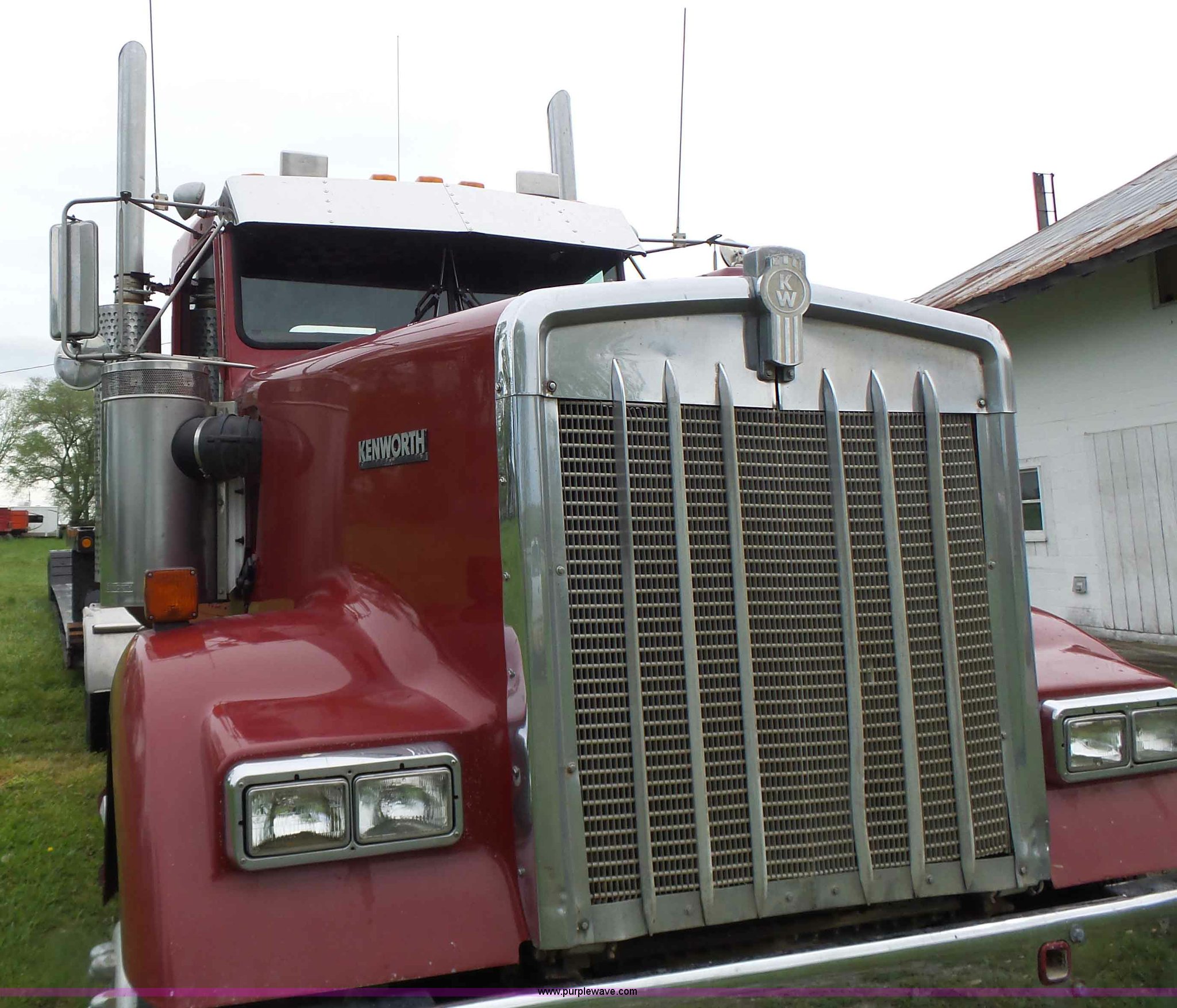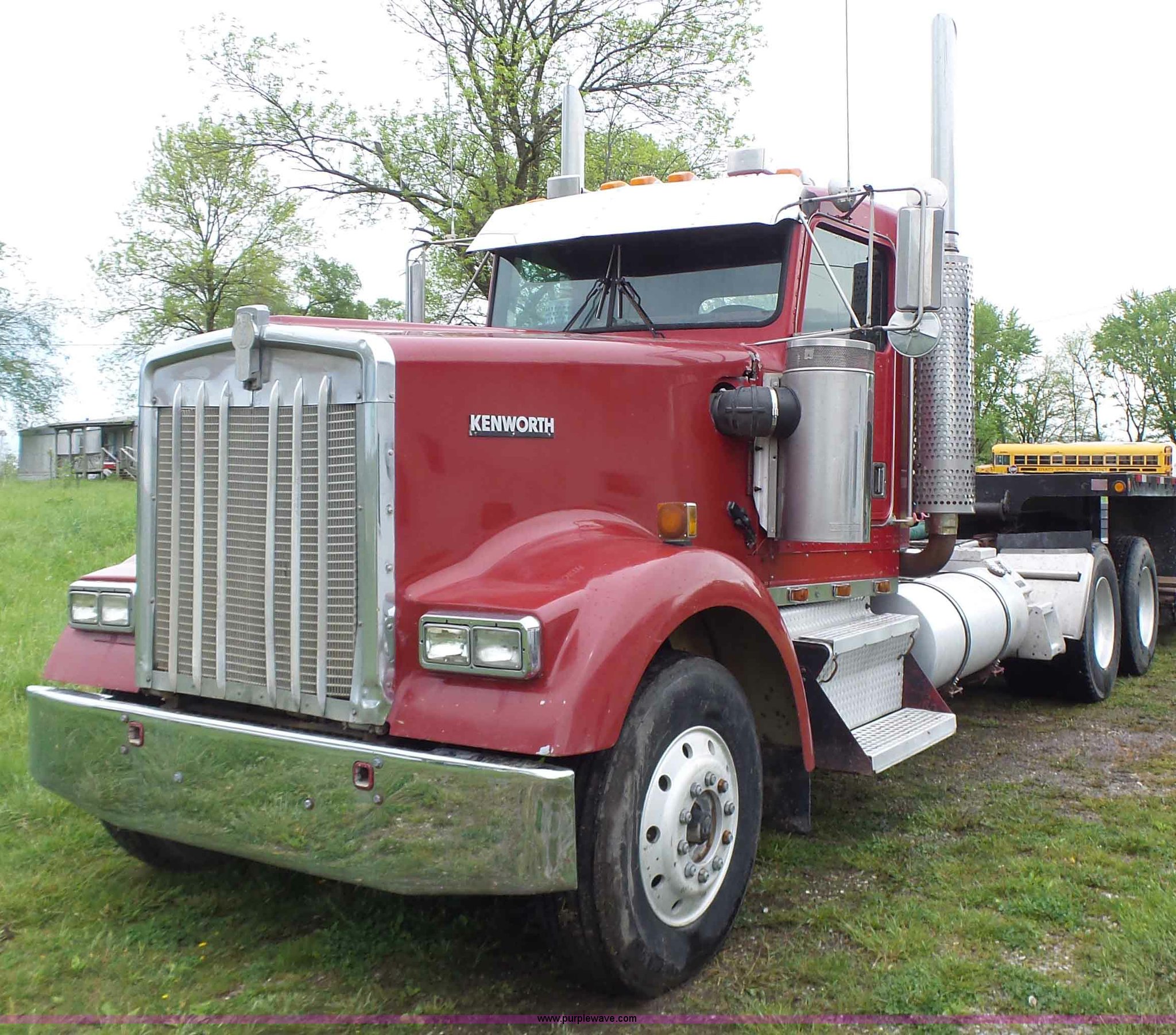 Purple Wave is selling a used Truck Tractor in Missouri. This item is a 1997 Kenworth W900 semi truck with the following: 823,965 miles on odometer, Caterpillar 3406 14.6L L6 turbo diesel engine, Eaton Fuller 18 speed manual transmission, Tandem axle, AC and heat, AM/FM/CD, Heated mirrors, Air suspension seat, Exterior visor, Wet kit, Dual exhaust stacks, Dual fuel tanks, Quarter fenders, Mud flaps, Air suspension, 11R22.5 tires, GVWR 51,100 lbs