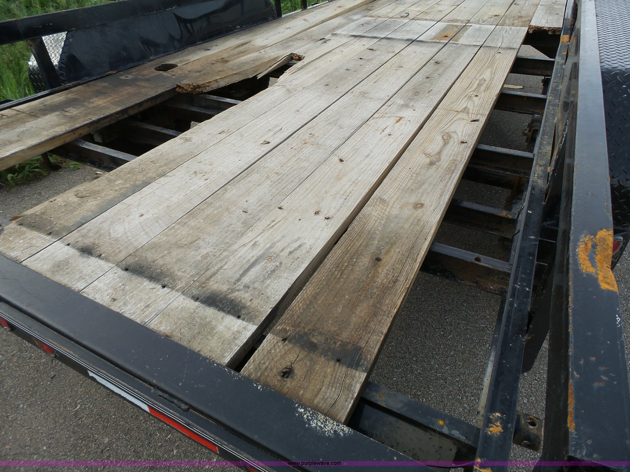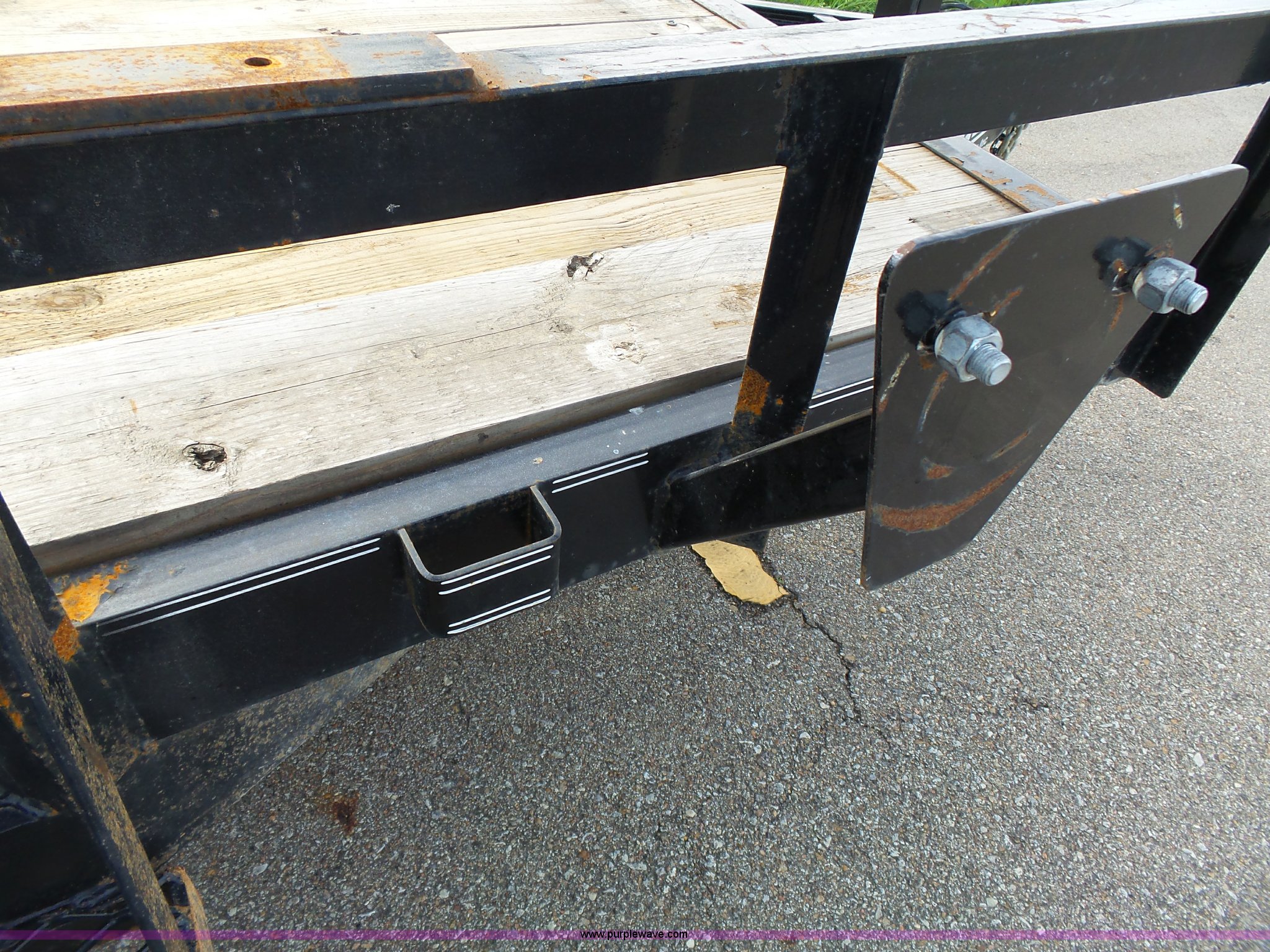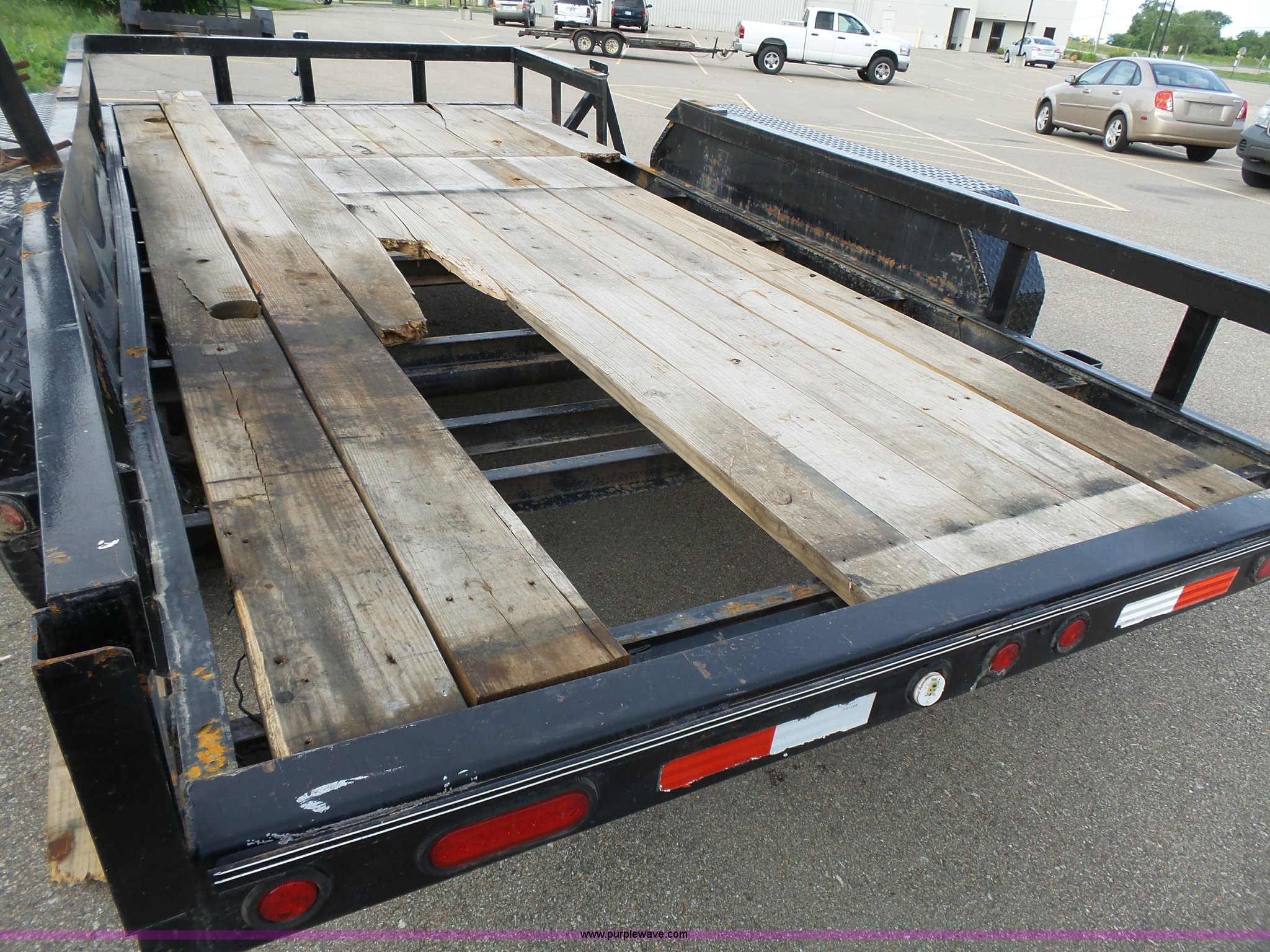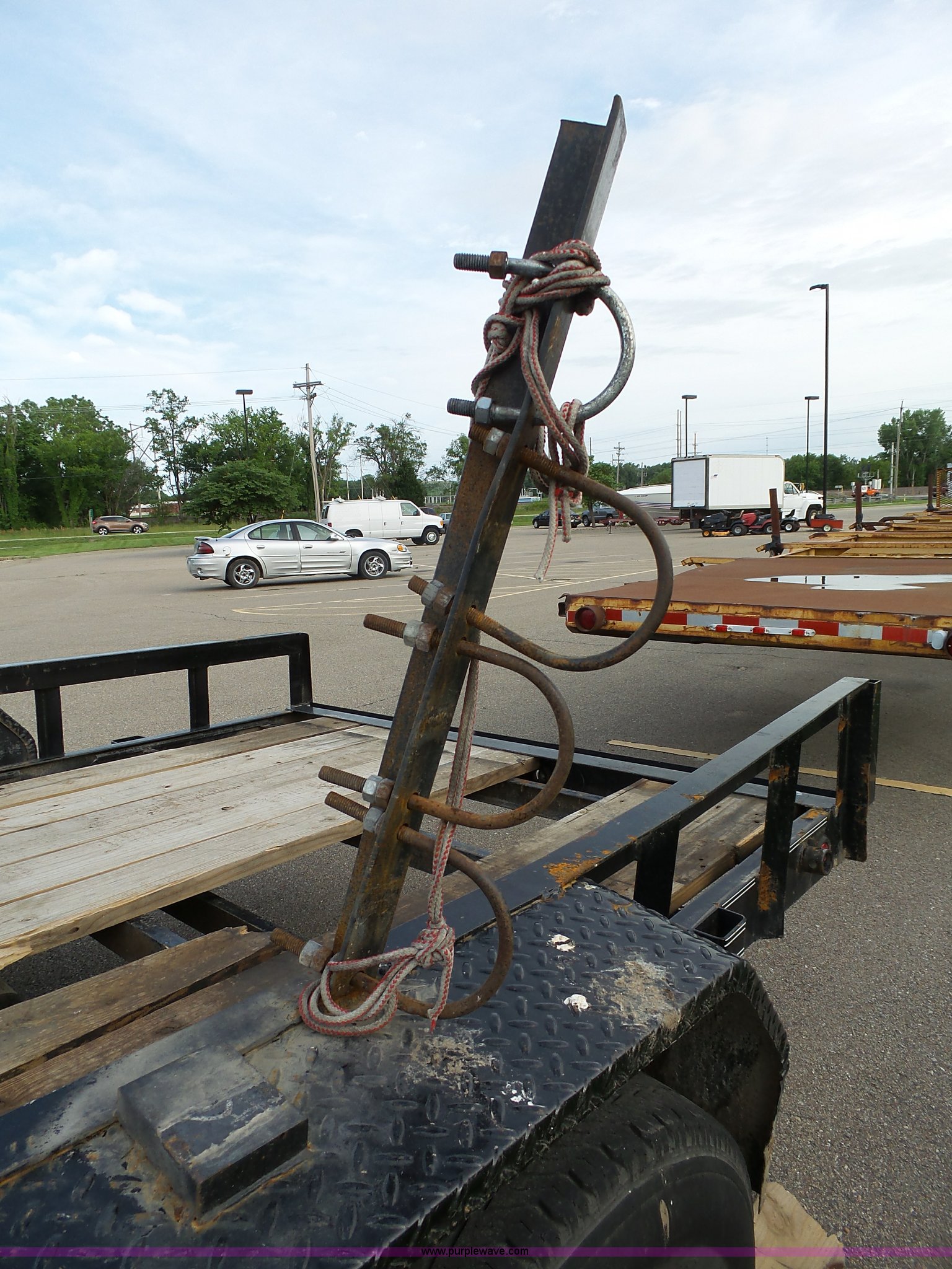 Purple Wave is selling a used Equip. Trailer in Kansas. This item is a 2014 Lamar equipment trailer with the following: 14'L x 97", 78" wheel width, Wood deck, Stake side pockets, Side step, Safety chains, Break-away cable, 2 5/16" ball hitch, Tandem axle, 235/80R16 tires, GVWR 10,400 lbs