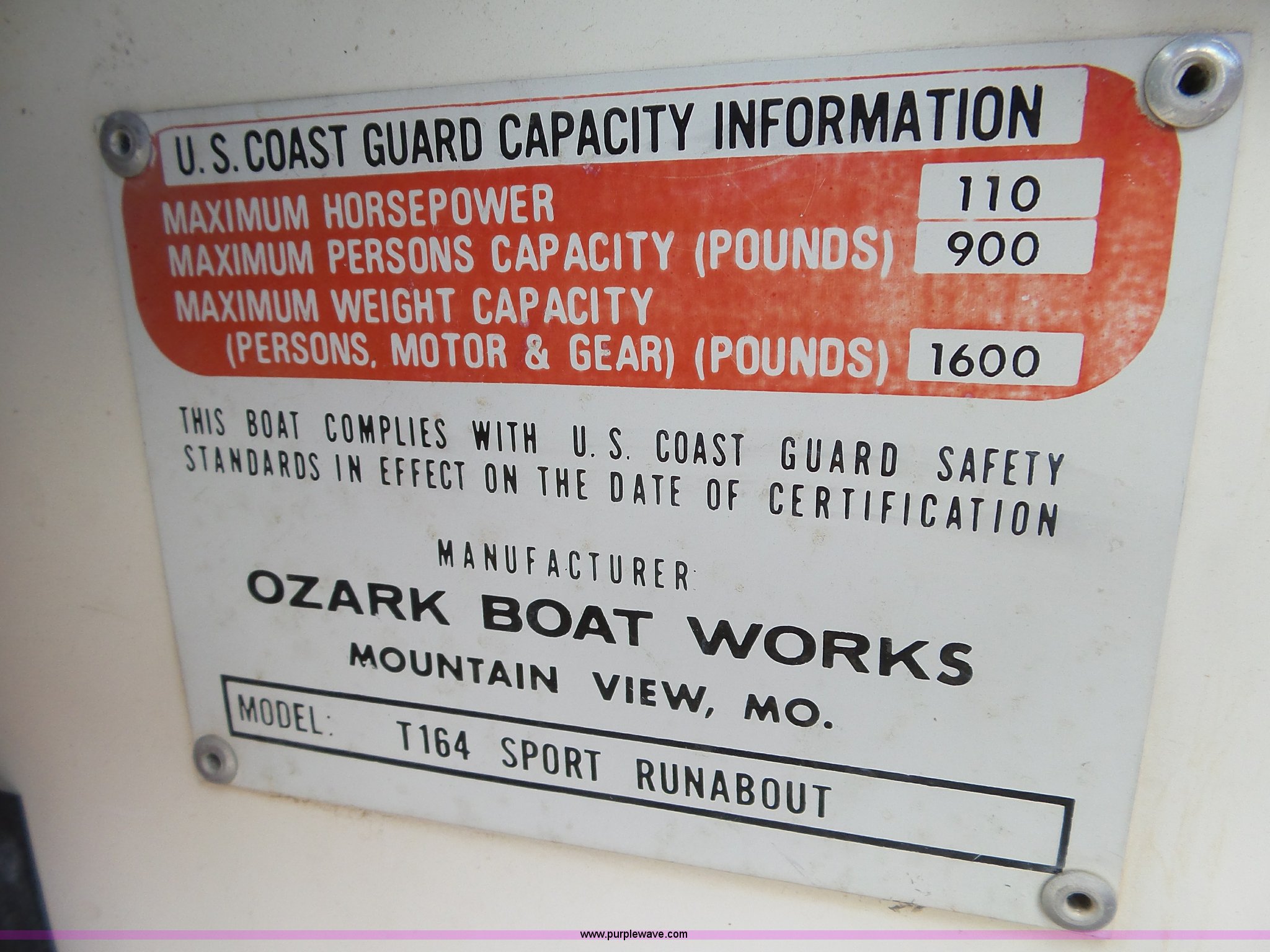 Purple Wave is selling a used Boat in Kansas. This item is a 1975 Ozark boat with the following: 16'L, Mercury 110 HP gas engine, Fiberglass hull, Comsetic damage, Hull ID XBW00481M75H, Trailer, 175/80R13 tires