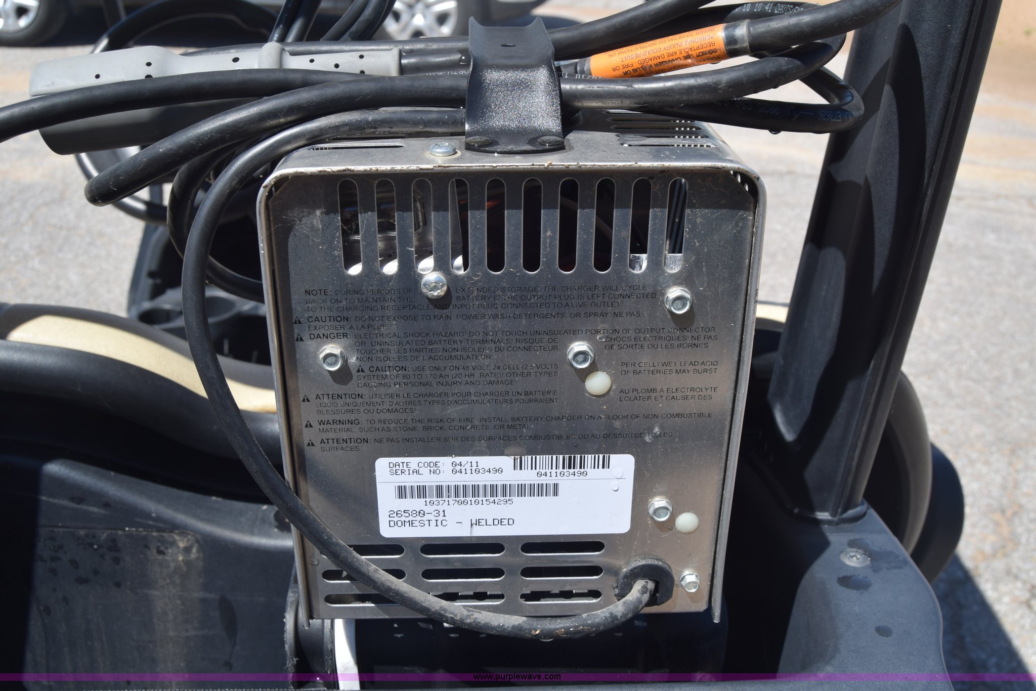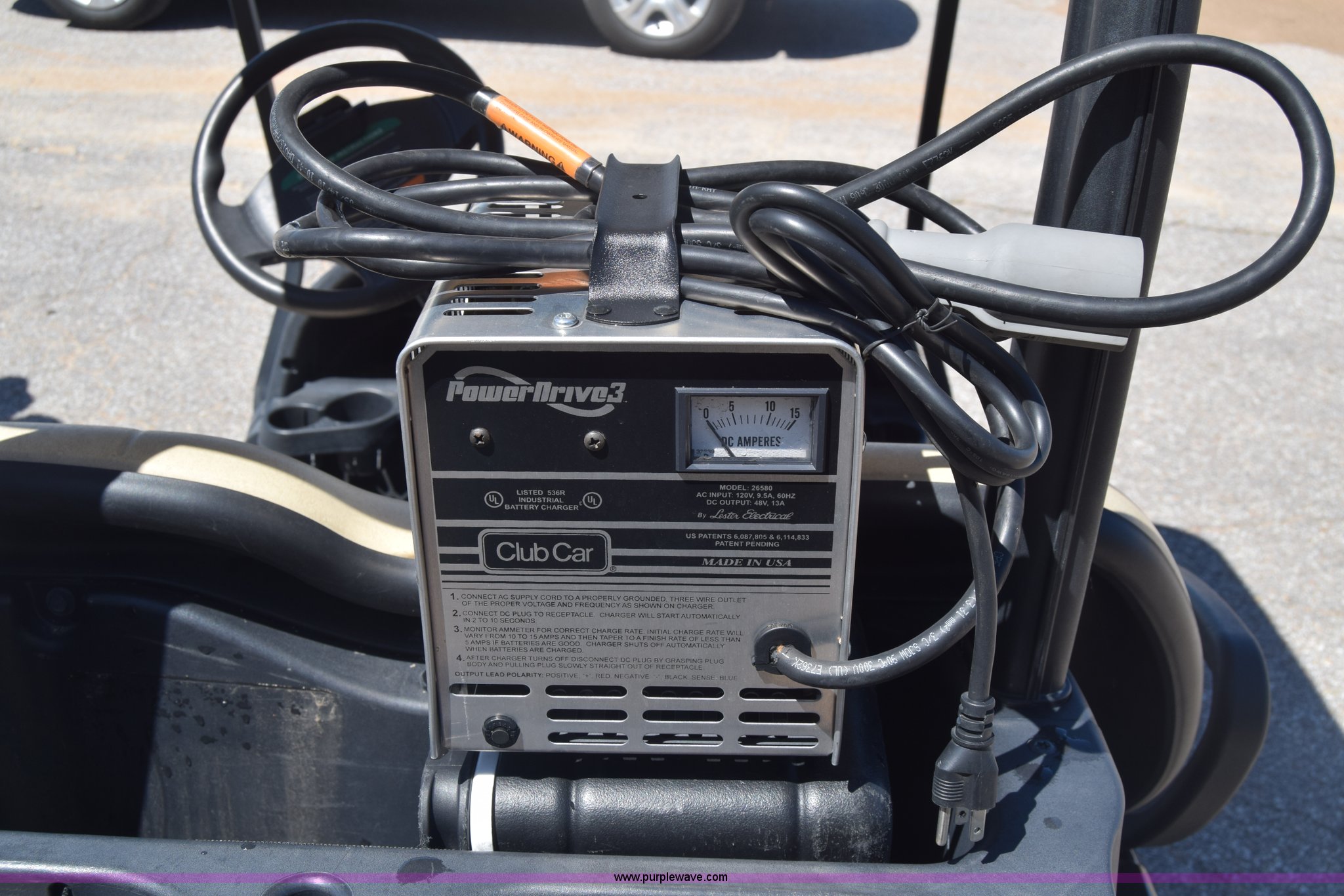 Purple Wave is selling a used Golf Cart in Kansas. This item is a Club Car golf cart with the following: Electric operation, Forward/reverse transmission, Canopy, 18x8.50-8 tires, Power Drive 3 charger, Serial 1131-211829