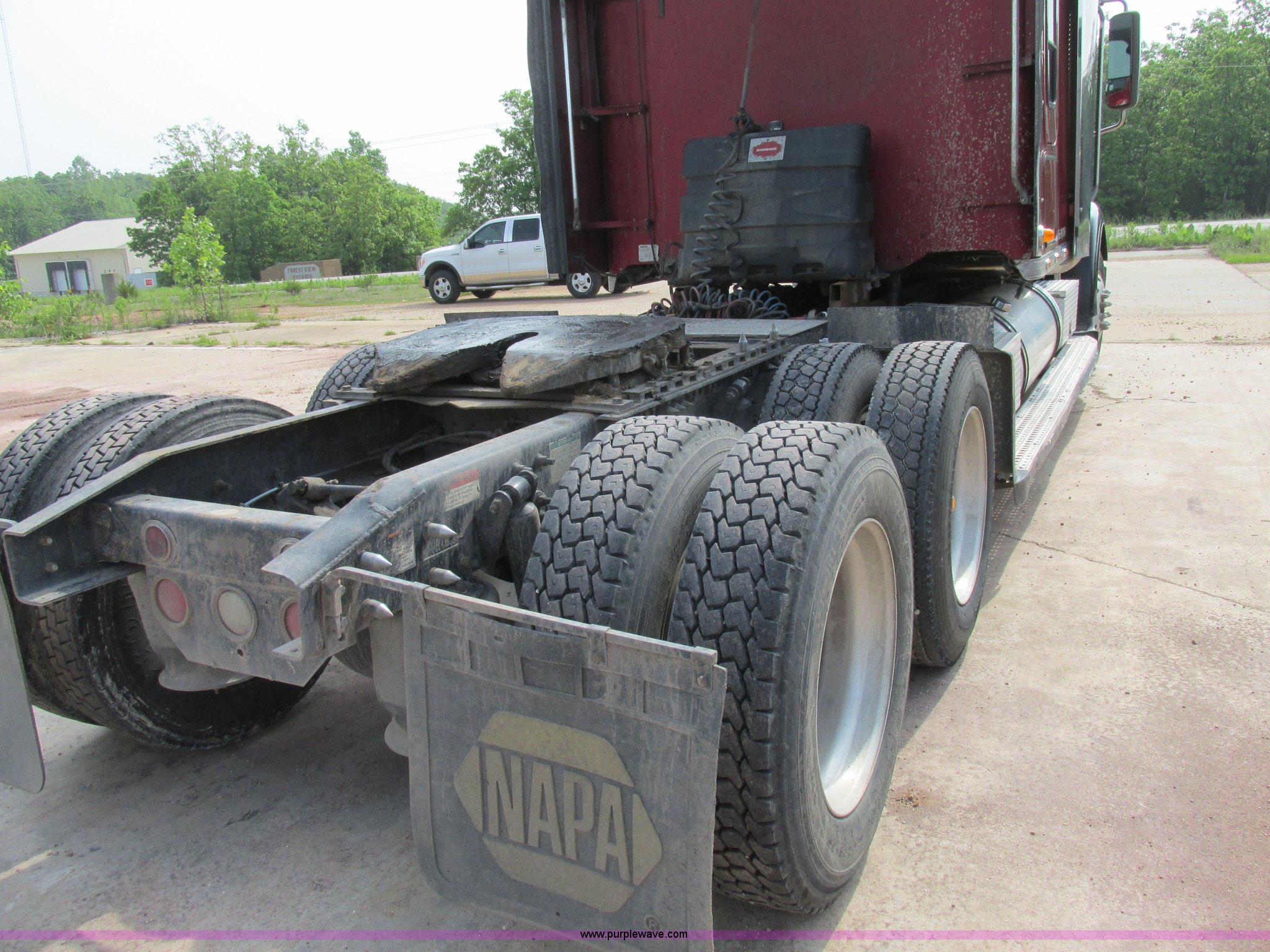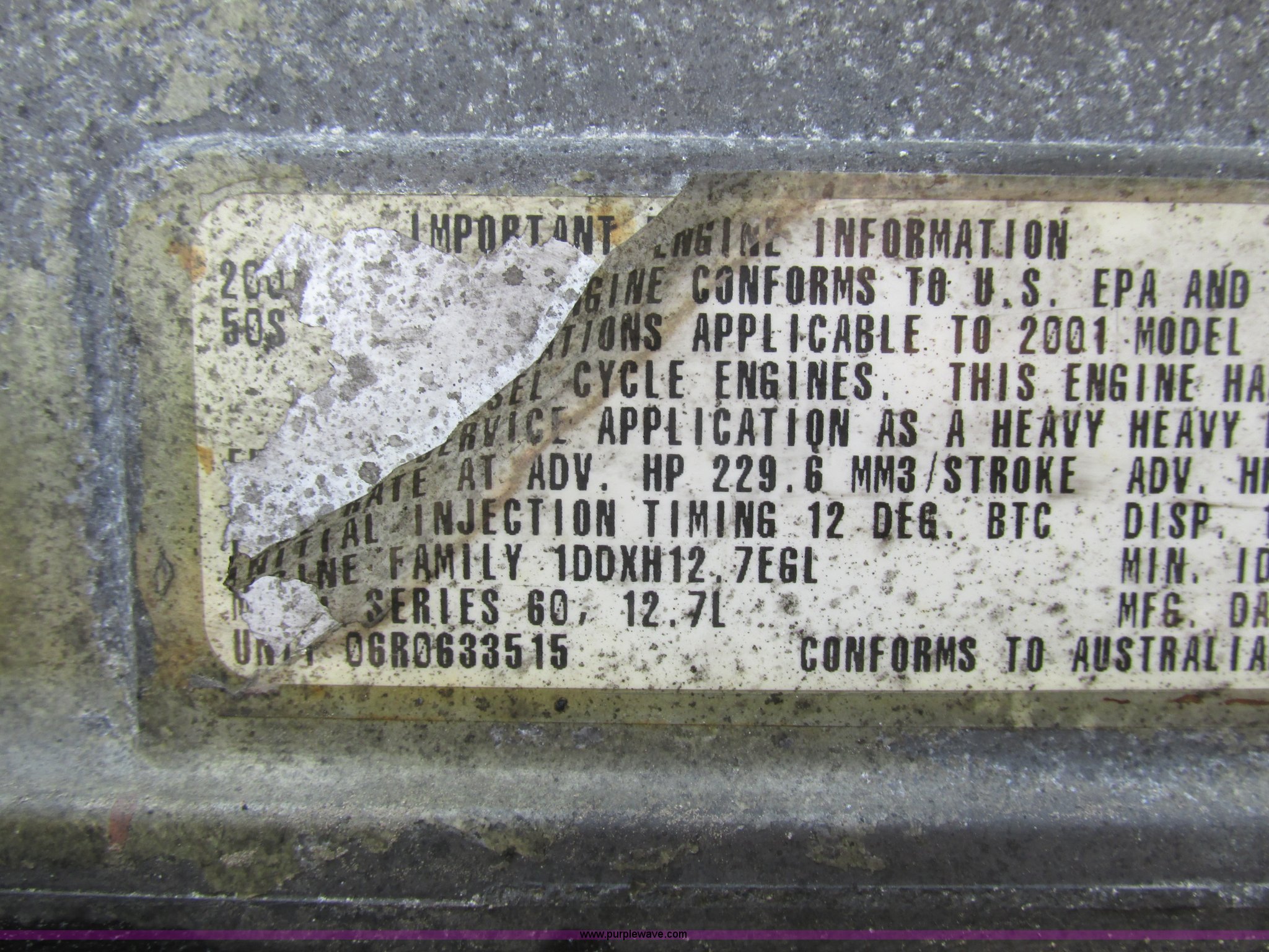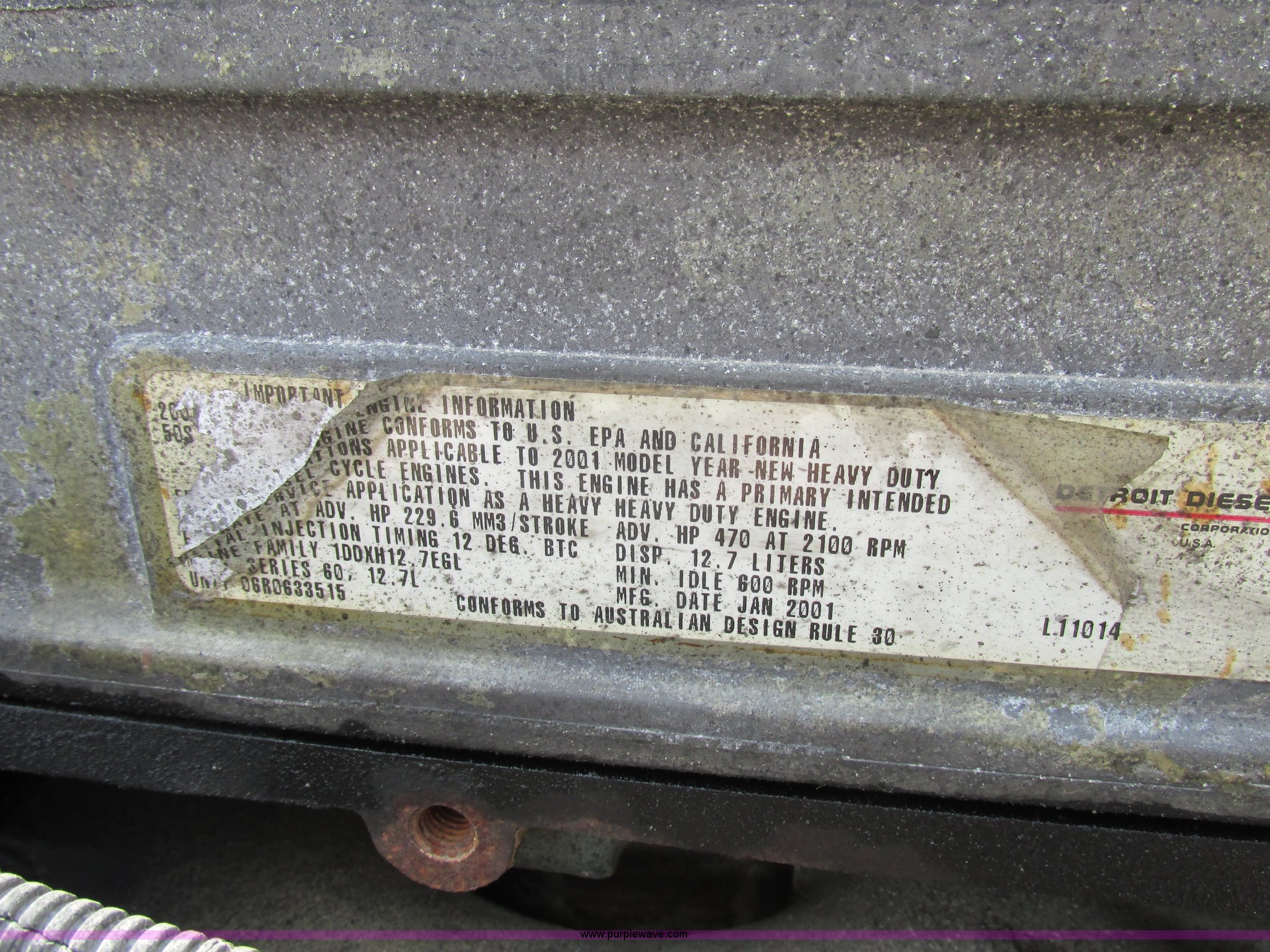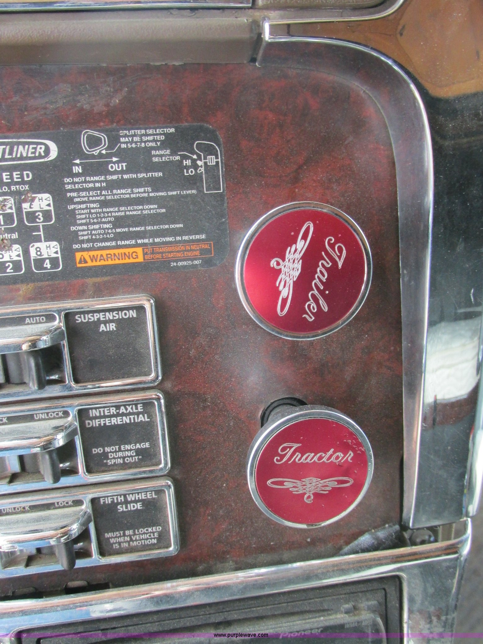 Purple Wave is selling a used Truck Tractor in Missouri. This item is a 2003 Freightliner Coronado semi truck with the following: 1,508,929 miles on odometer, Detroit Diesel Series 60 14.0L L6 diesel engine, 430 HP, 13 speed manual transmission, Tandem axle, Inter-axle differential lock, AC and heat, AM/FM, Air suspension seat, Sleeper, Single bed, Storage cabinets, Rear climate control, PTO, Wet kit, Exterior visor, Dual exhaust stacks, Air operated sliding fifth wheel plate, Dual fuel tanks, Plastic quarter fenders, Mud flaps, Air suspension, Air brakes, 285/75R24.5 tires, GVWR 52,000 lbs, FAWR 12,000 lbs, IAWR 20,000 lbs, RAWR 20,000 lbs, Interior/exterior cosmetic damage, Cracked windshield, Unit# JV777