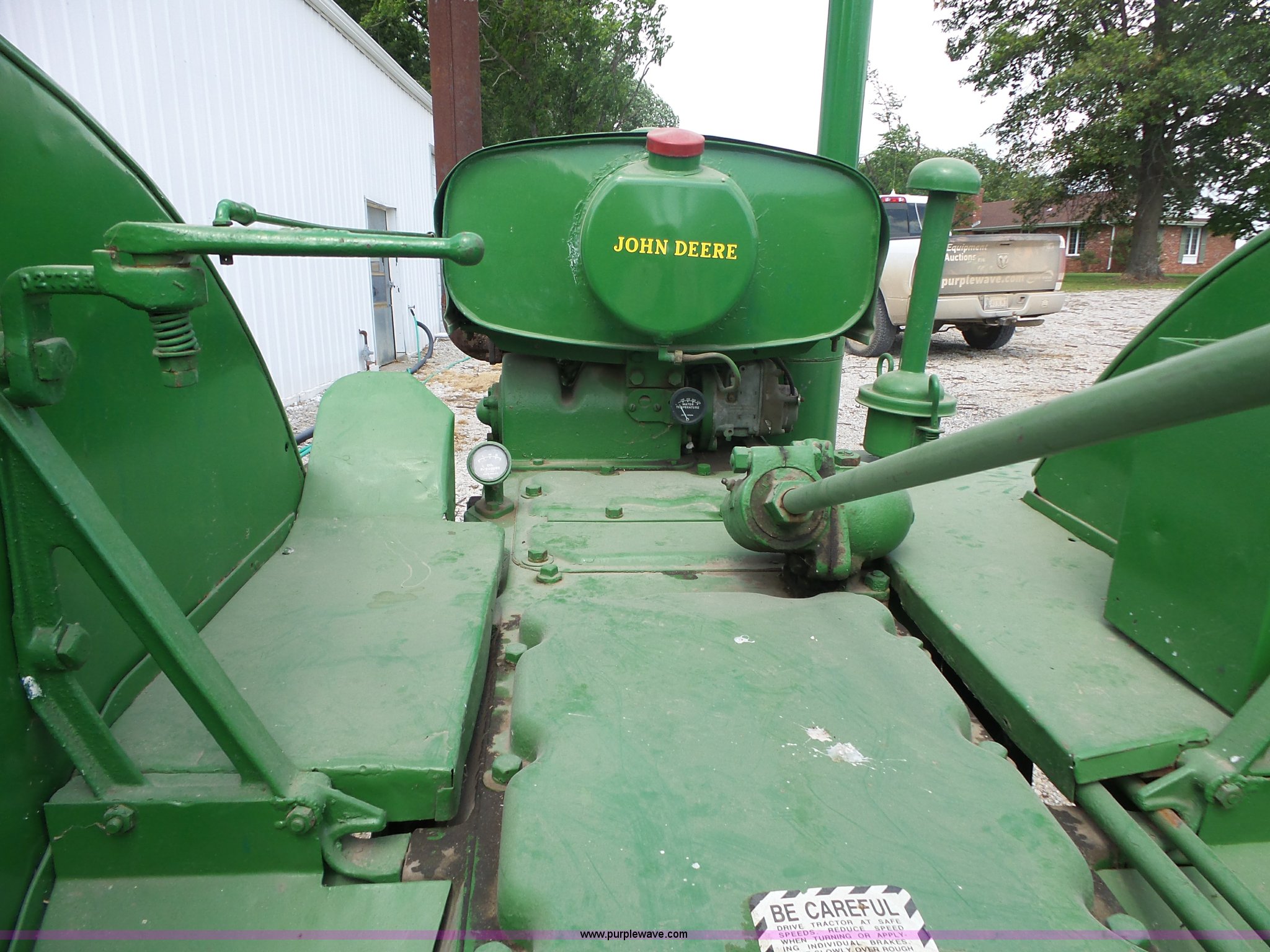 Purple Wave is selling a used Tractor in Kansas. This item is a John Deere D tractor with the following: John Deere two cylinder gas engine, Locked up, Manual transmission, 2F-1R gears, 7.50-18 front tires, 14-28 rear tires, Non-operational unit, Serial 13199