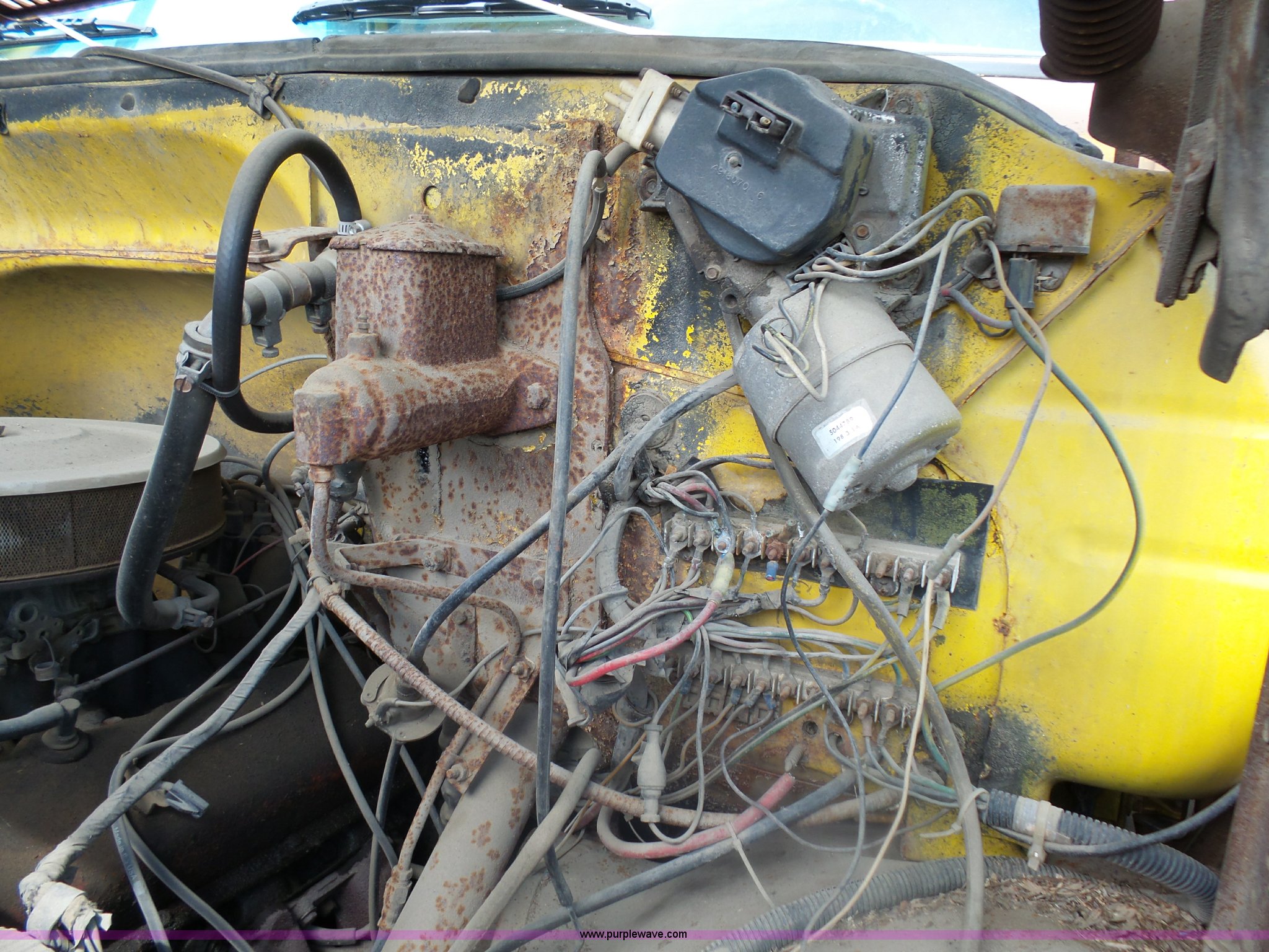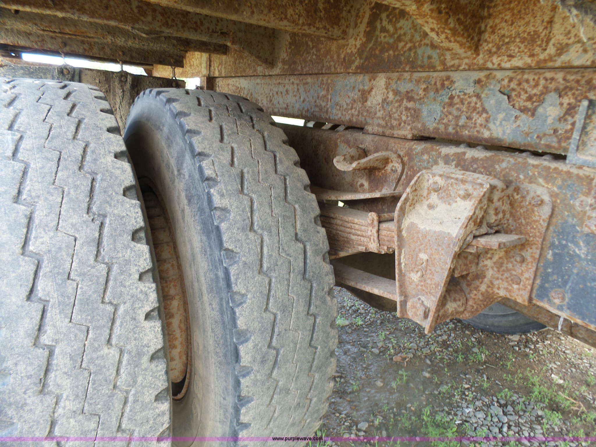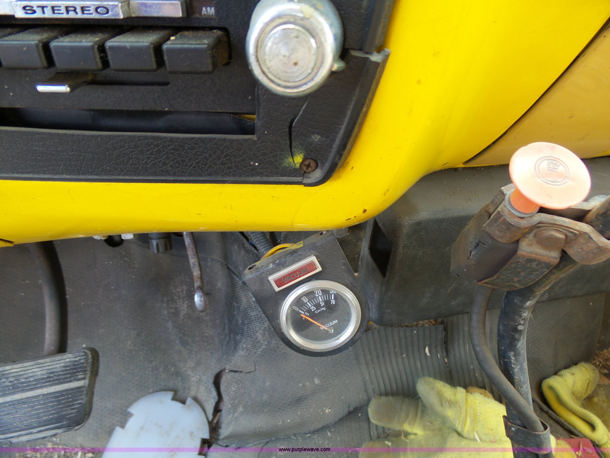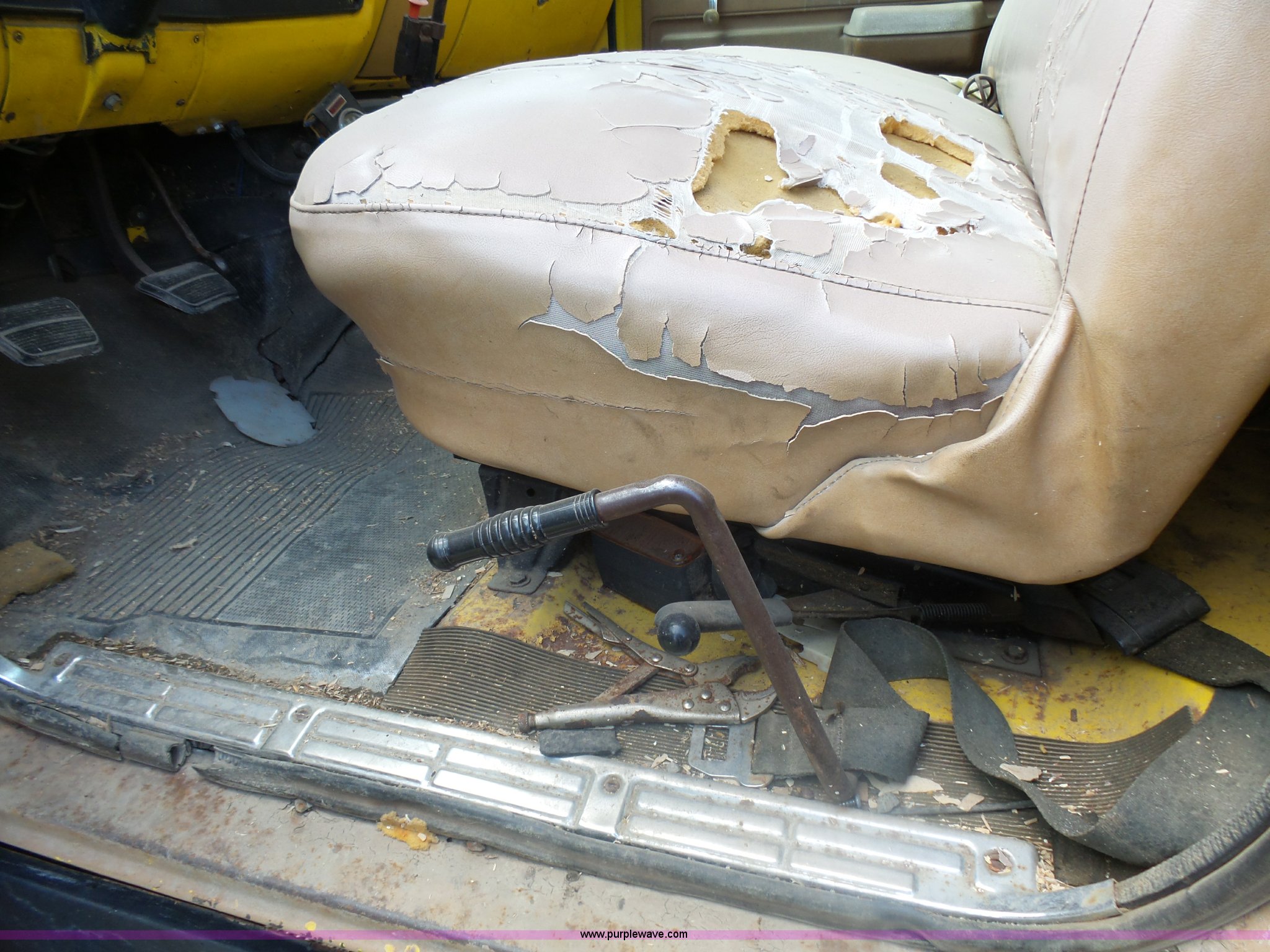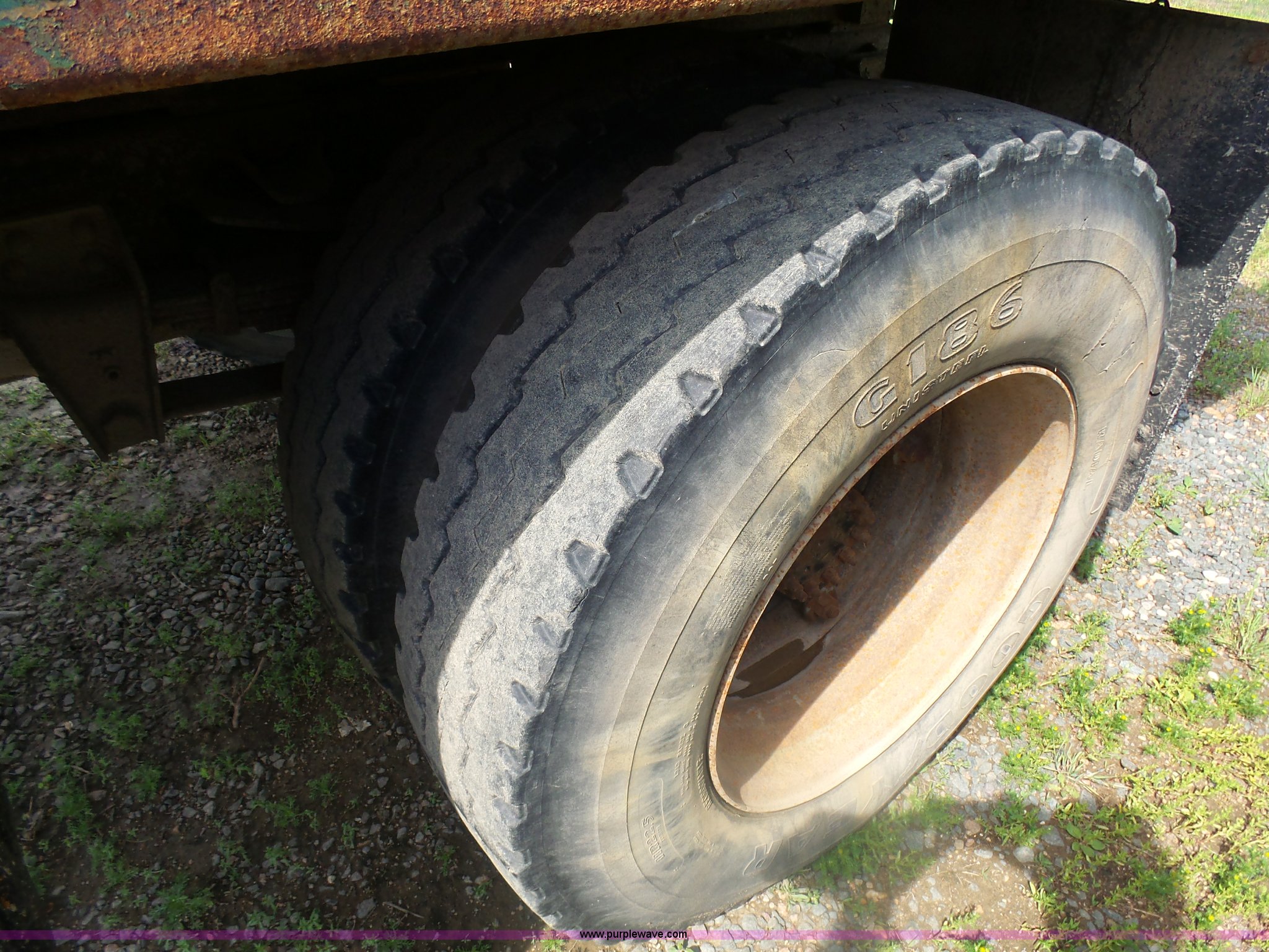 Purple Wave is selling a used Grain Truck in Minnesota. This item is a 1973 GMC 6500 grain truck with the following: 61,396 miles on odometer, V8 gas engine, Five speed manual transmission, Two speed rear end, Single axle, AC and heat, AM/FM, Suspension seat, 14'L x 4'W dump bed, 12" side board height, Manual end gate, Single ram hoist, Single fuel tank, Receiver hitch, Spring suspension, Hydraulic brakes, 11R22.5 tires, Seats torn, Cracked windshield