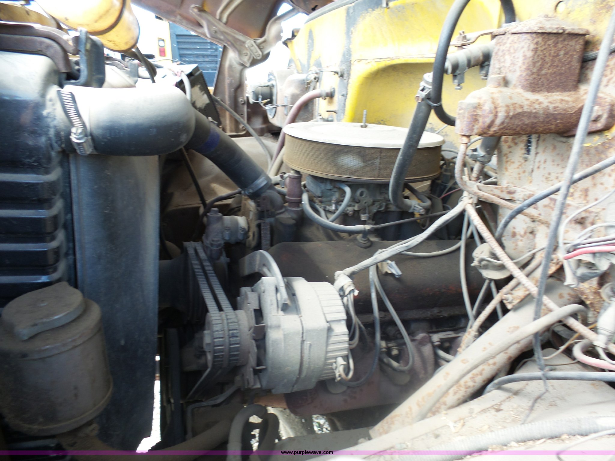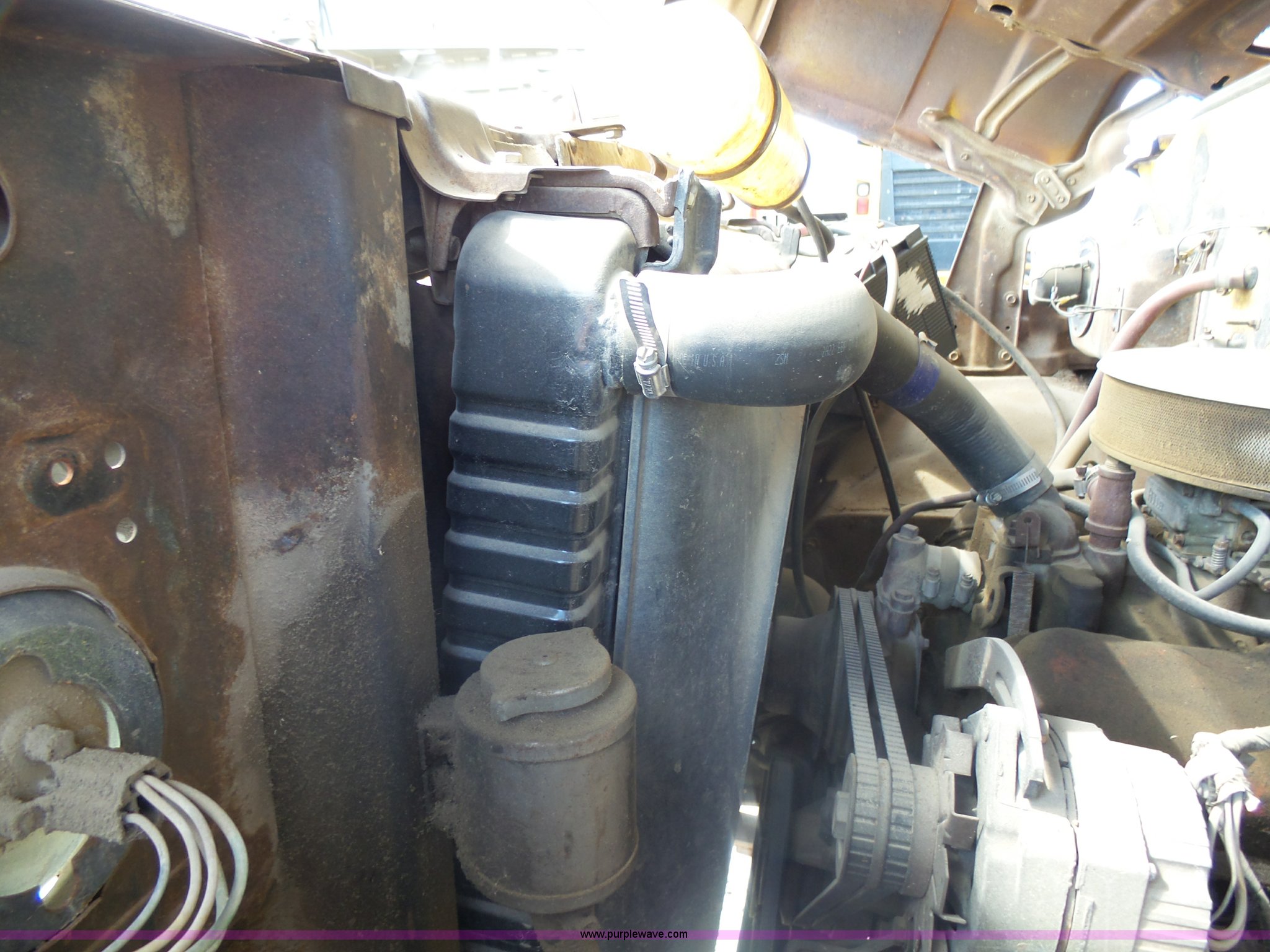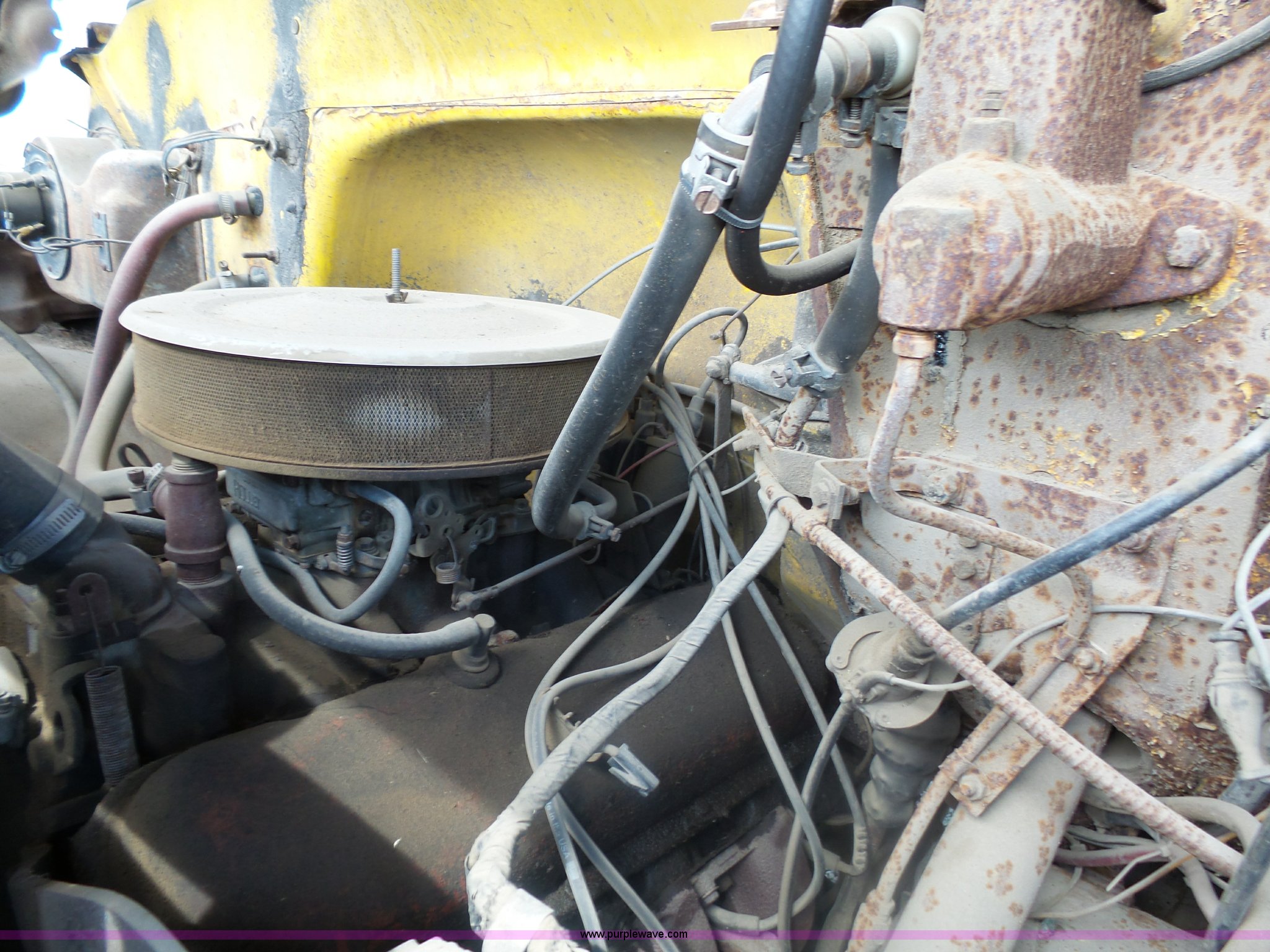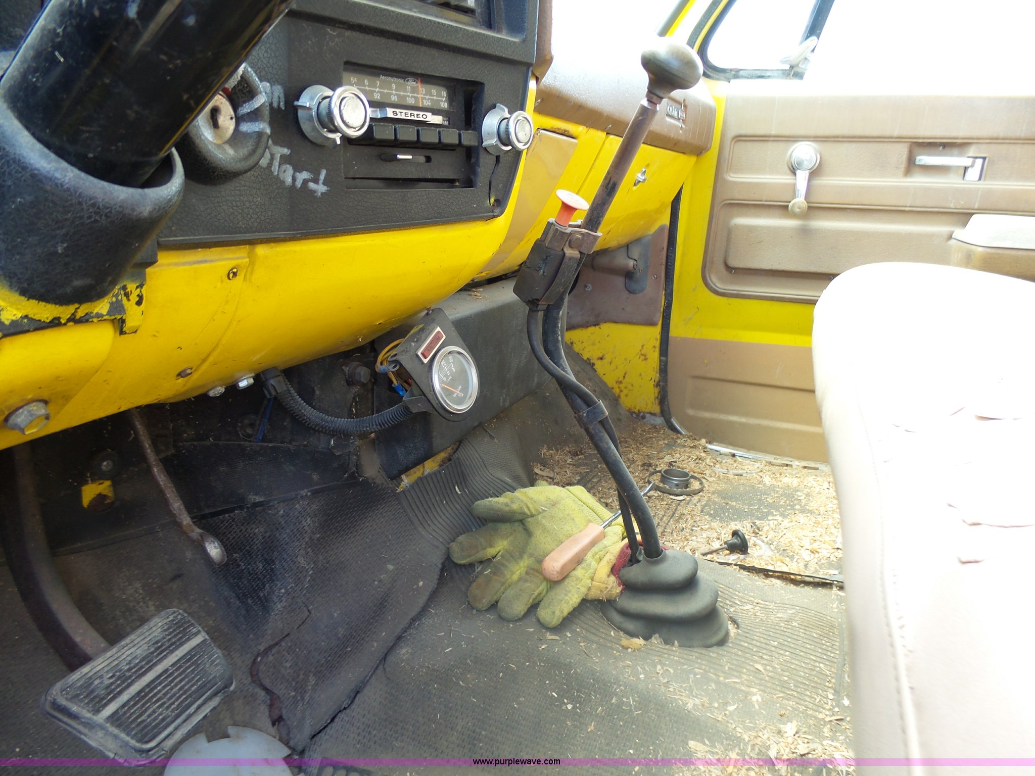Purple Wave is selling a used Grain Truck in Minnesota. This item is a 1973 GMC 6500 grain truck with the following: 61,396 miles on odometer, V8 gas engine, Five speed manual transmission, Two speed rear end, Single axle, AC and heat, AM/FM, Suspension seat, 14'L x 4'W dump bed, 12" side board height, Manual end gate, Single ram hoist, Single fuel tank, Receiver hitch, Spring suspension, Hydraulic brakes, 11R22.5 tires, Seats torn, Cracked windshield