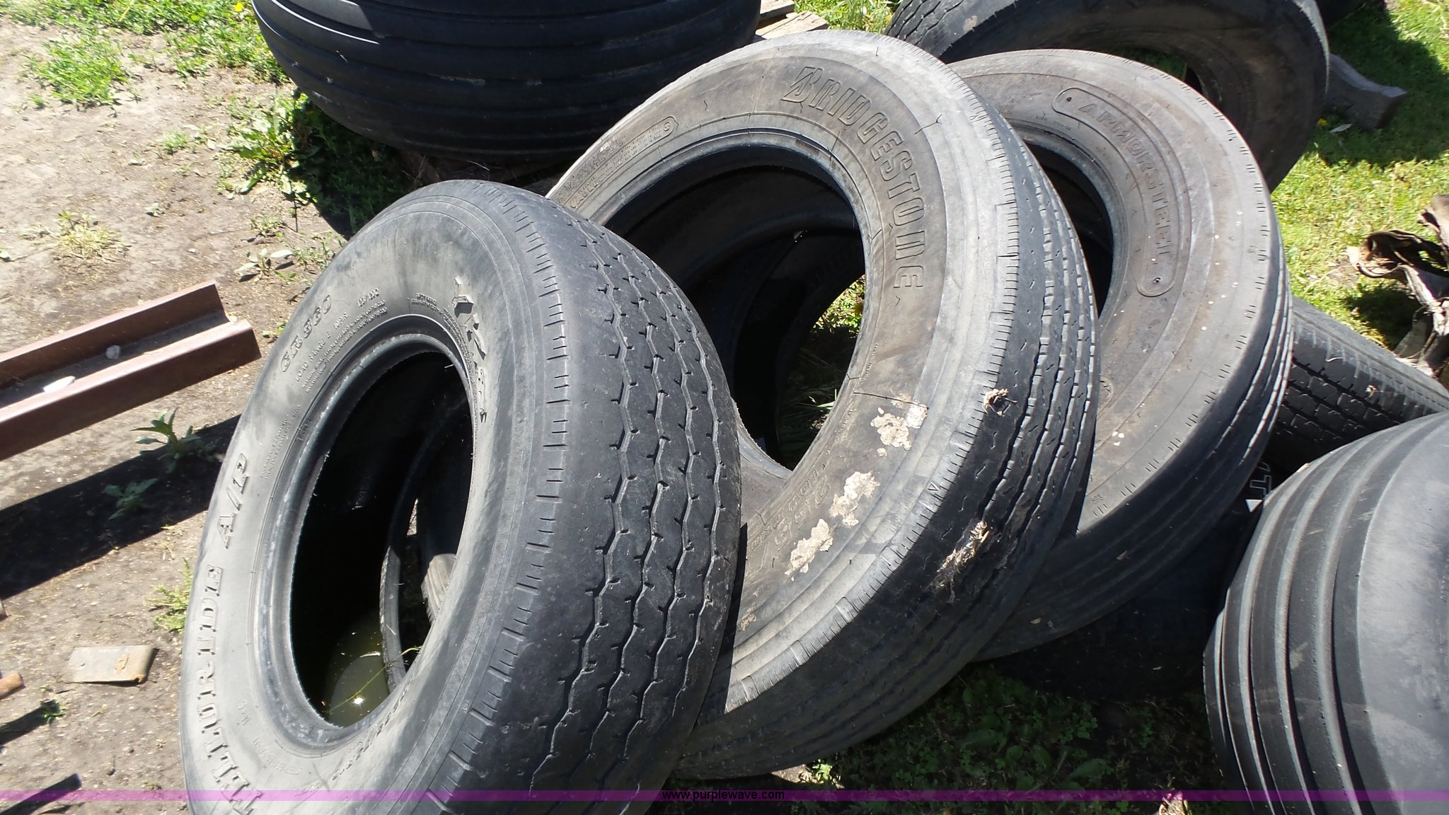 Purple Wave is selling a used Industrial Tires or Tracks in Nebraska. This item is a (7) tires with the following: Agri-Service 11L-15 ribbed tire, Eight ply, Six bolt steel wheel, (2) Telleride LT265/75R16 tires, Bridgestone 255/70R22.5 tire, Armorsteel 255/70R22.5 tire, Wild Country LT235/75R15 tires, Five bolt wheels, Dominator P215/75R15 tire, Five bolt wheel