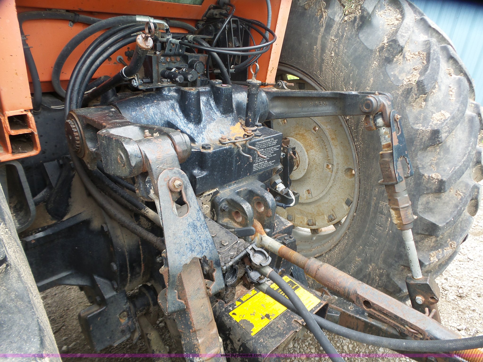 Purple Wave is selling a used Tractor in Kansas. This item is a Allis Chalmers 8010 tractor with the following: 5,438 hours on meter, Allis Chalmers 4.9L six cylinder turbo diesel engine, Partial powershift transmission, 16F-4R gears, Differential lock, AC and heat, Tilt steering wheel, AM/FM, Suspension seat, Three point, Top link, 540 PTO, Rear hydraulic remote set, 10.00-16 front tires, 18.4R38 rear tires
