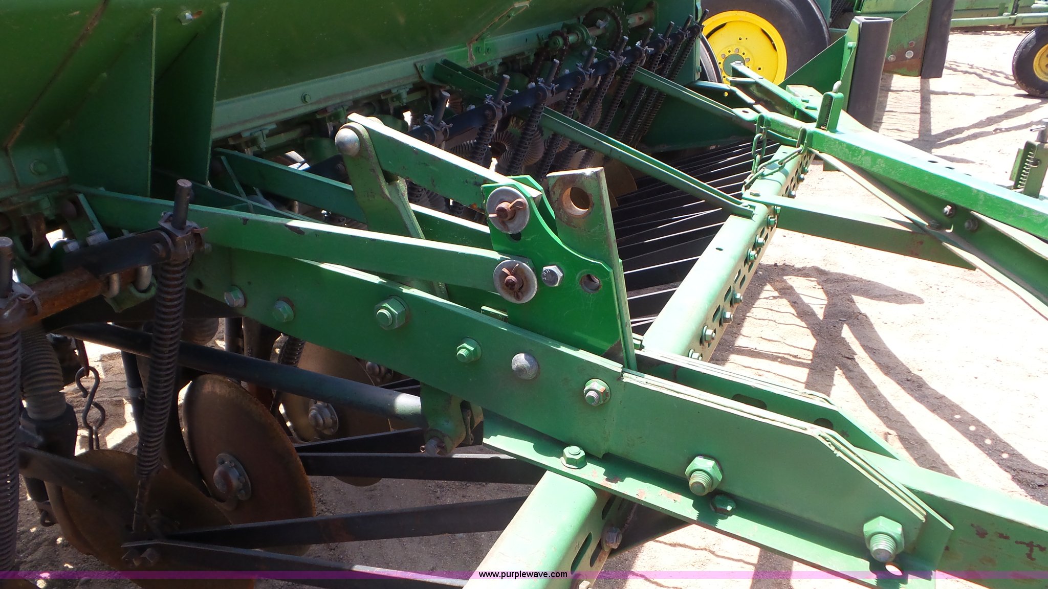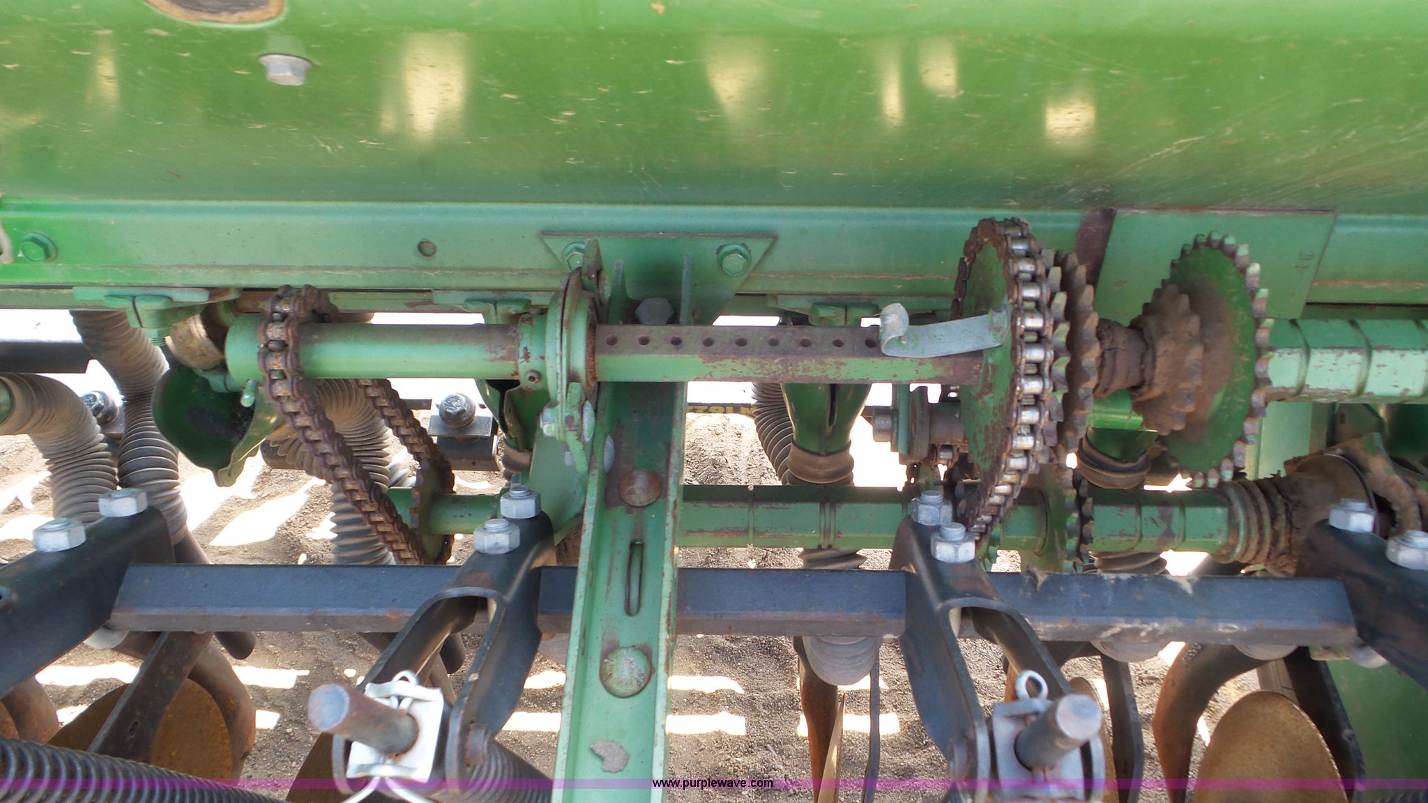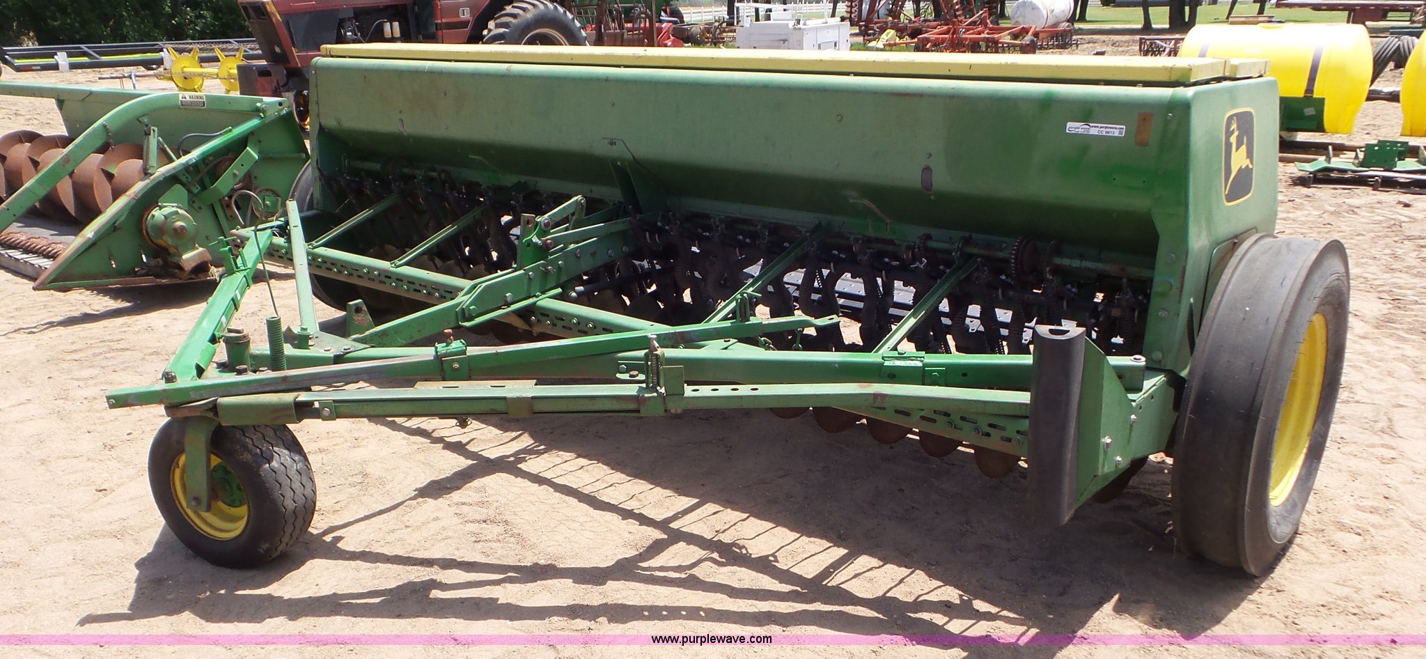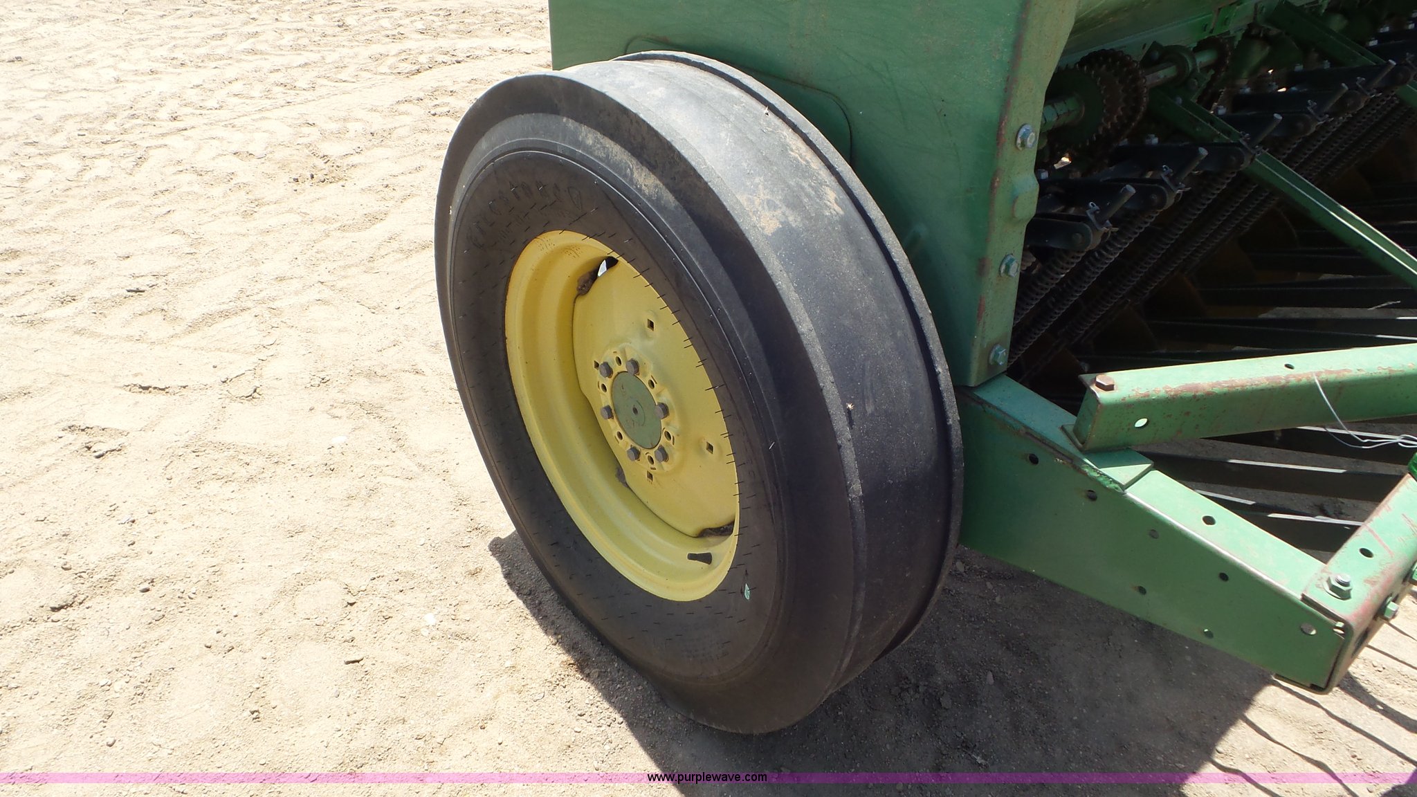 John Deere 8350 grain drill. 13'W, 8" row spacing, Single disk opener, Single rubber closing system, Mechanical drive, 7.50-20 tires. Kinsley, KS 67547