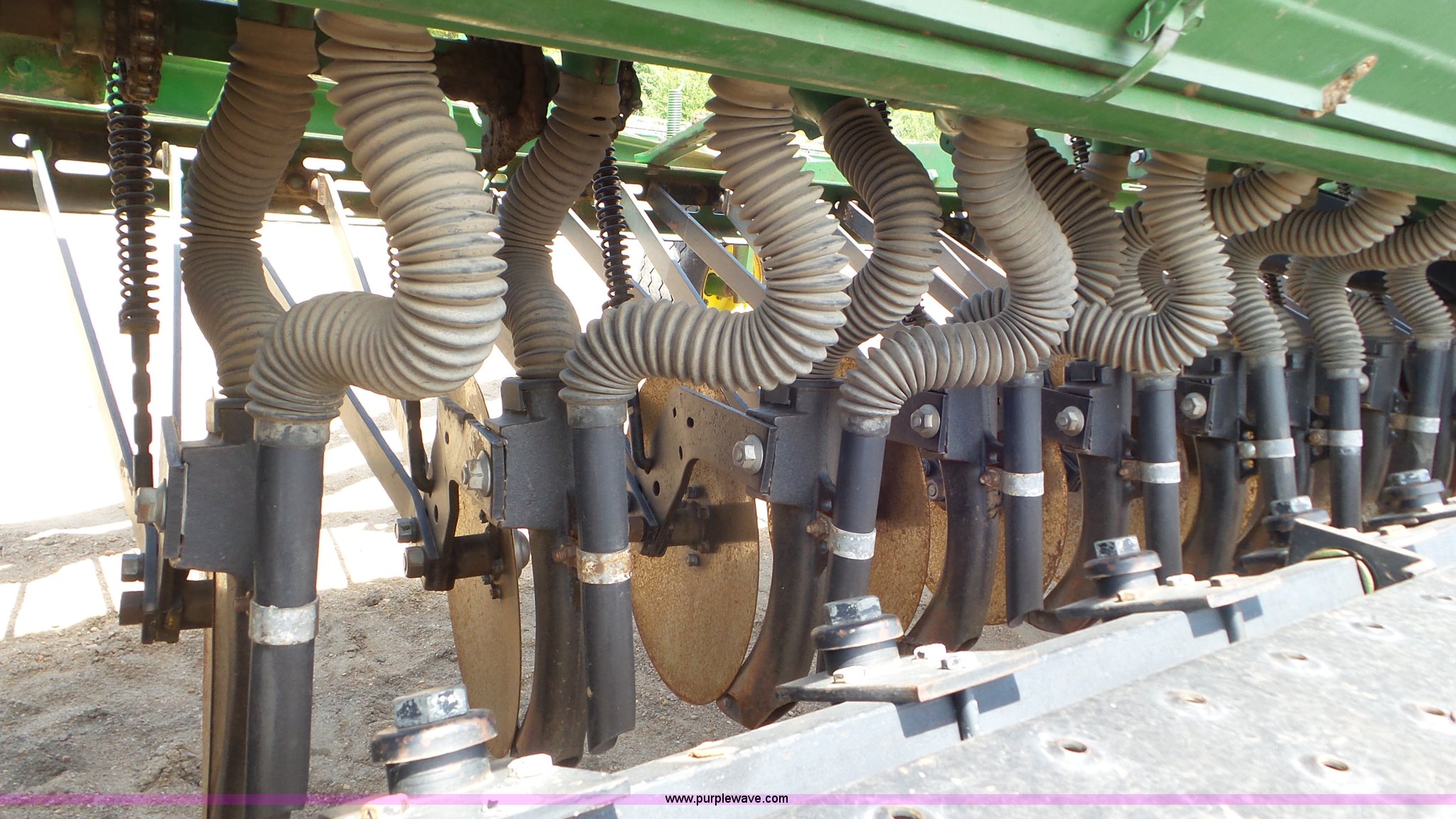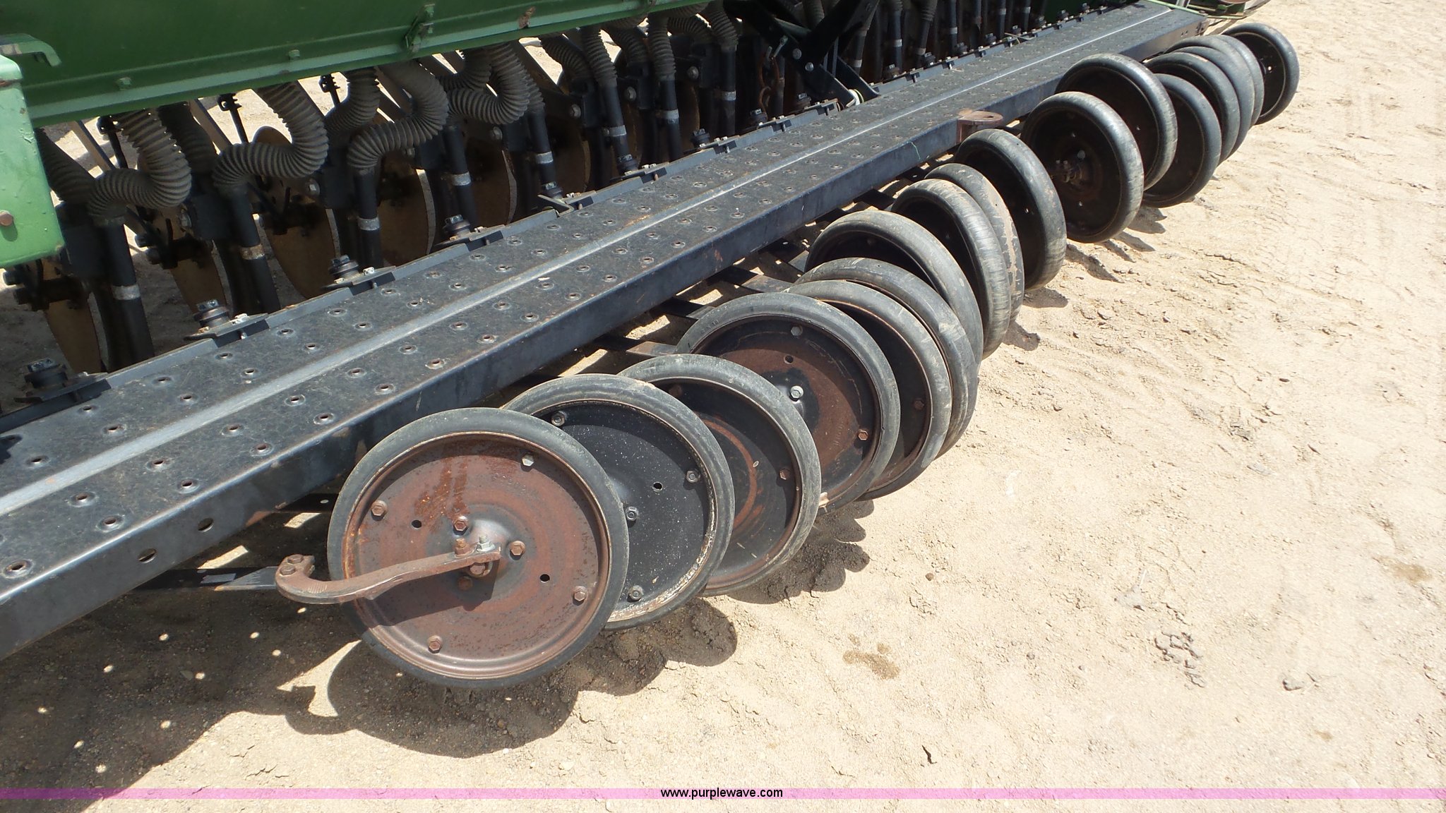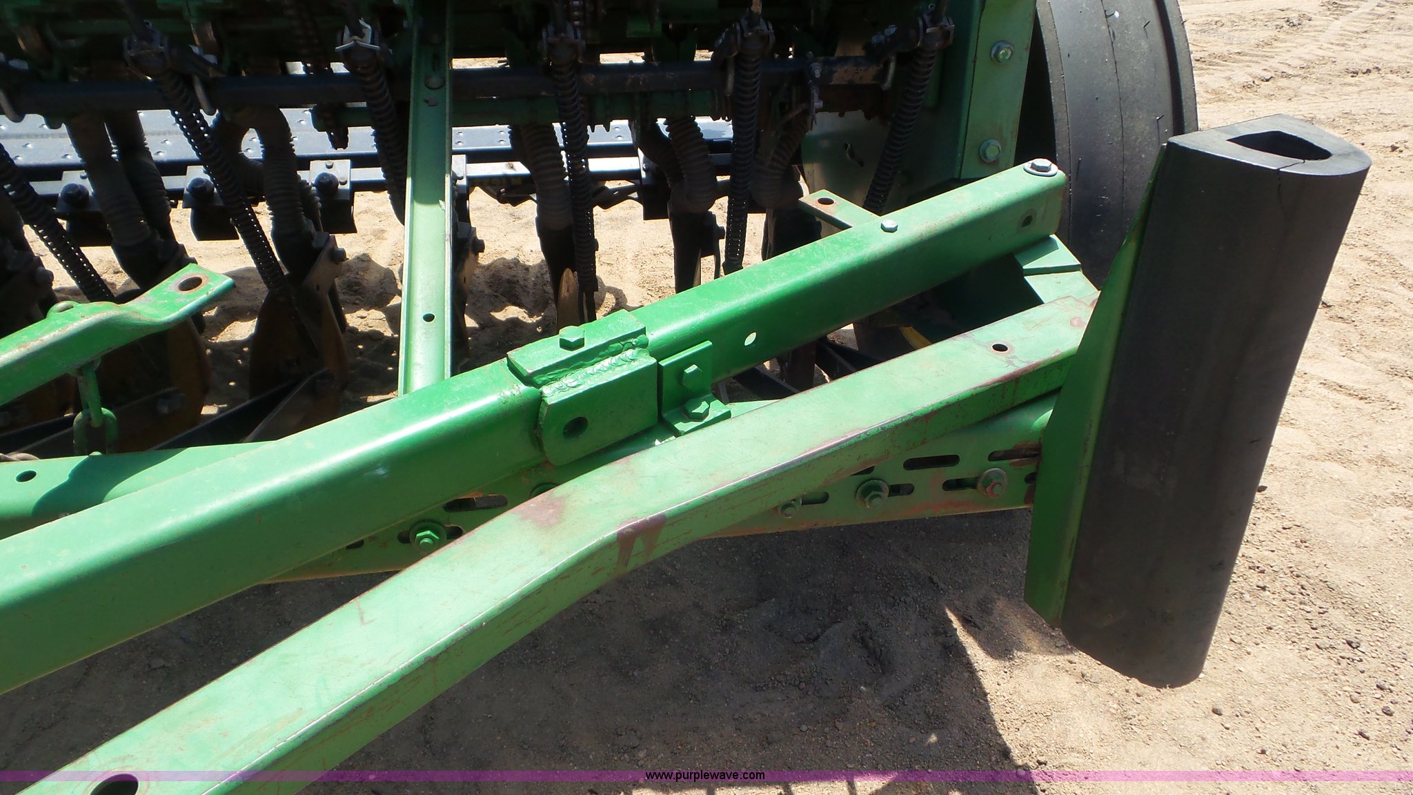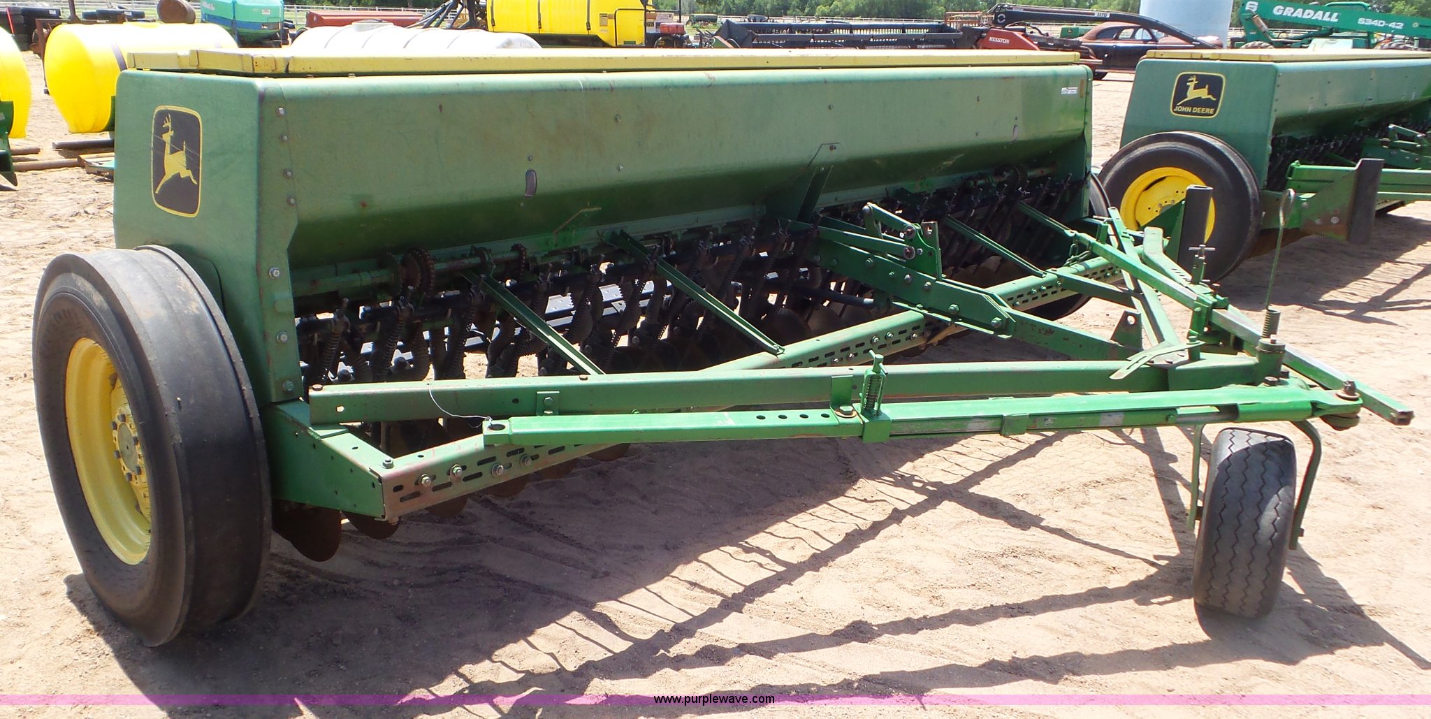 John Deere 8350 grain drill. 13'W, 8" row spacing, Single disk opener, Single rubber closing system, Mechanical drive, 7.50-20 tires. Kinsley, KS 67547