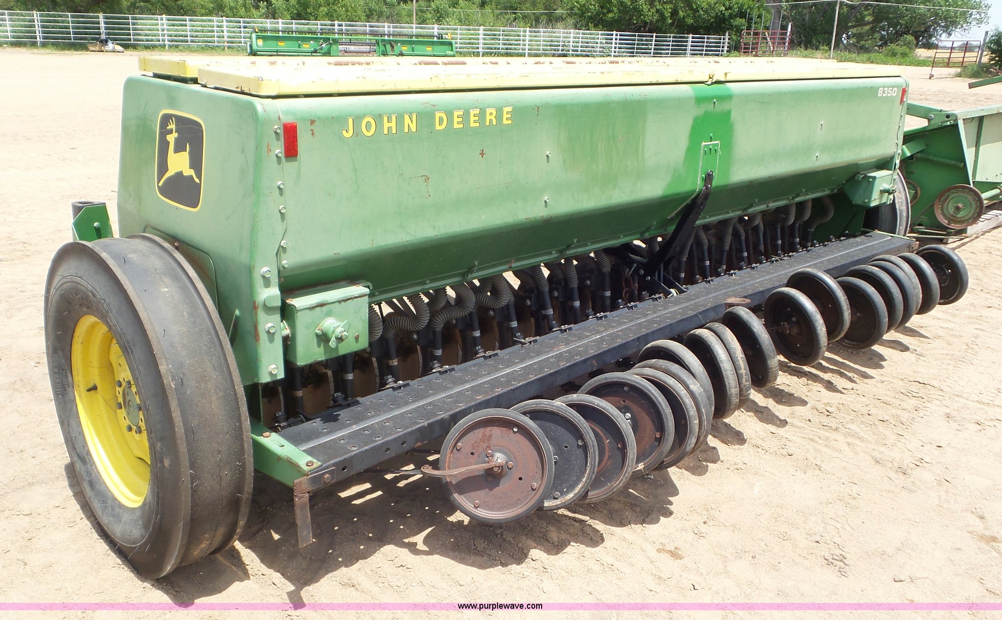 Purple Wave is selling a used Grain Drill or Seeder in Kansas. This item is a John Deere 8350 grain drill with the following: 13'W, 8" row spacing, Single disk opener, Single rubber closing system, Mechanical drive, 7.50-20 tires
