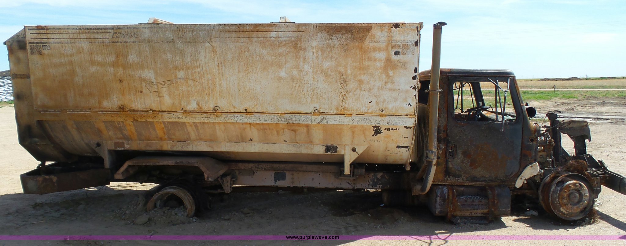 Purple Wave is selling a used Feed Mixer Truck in Kansas. This item is a 1995 International feed truck with the following: Unknown miles on odometer, PTO drive, Rotomix 620-16 feed box, 16'L, Feed mixer, Hydraulic lift gate, Hydraulic feed chute, 17'8"L x 8'8"W overall, Interior/exterior cosmetic damage, Fire damage, Insurance salvage, Unit# A216749P00