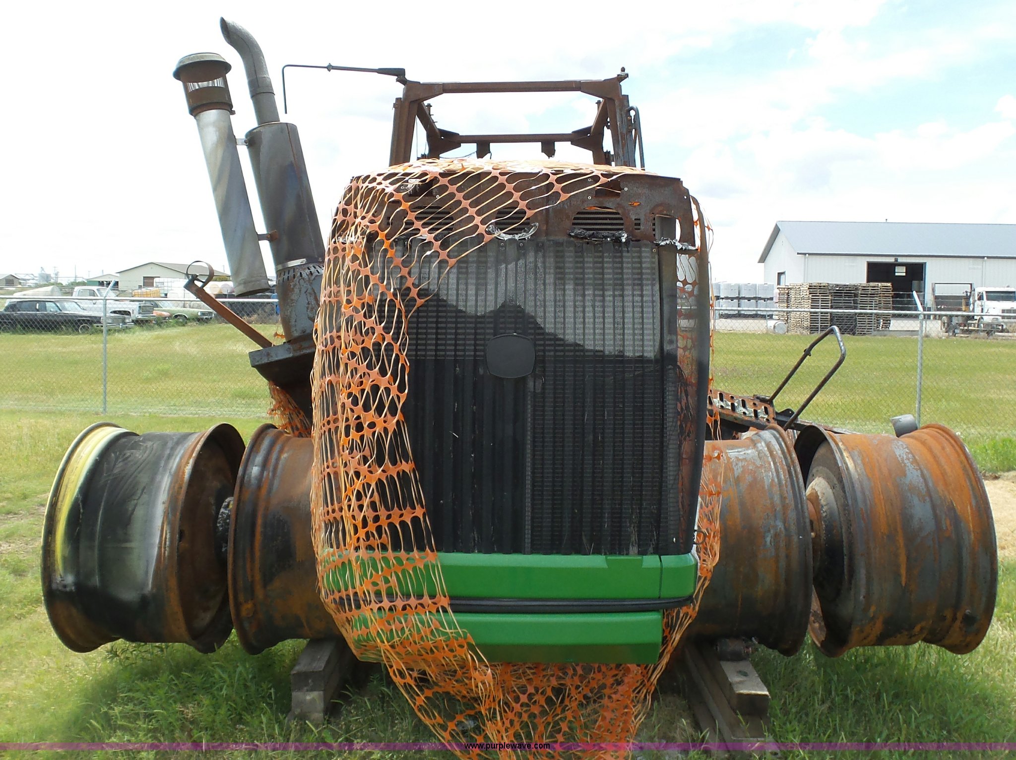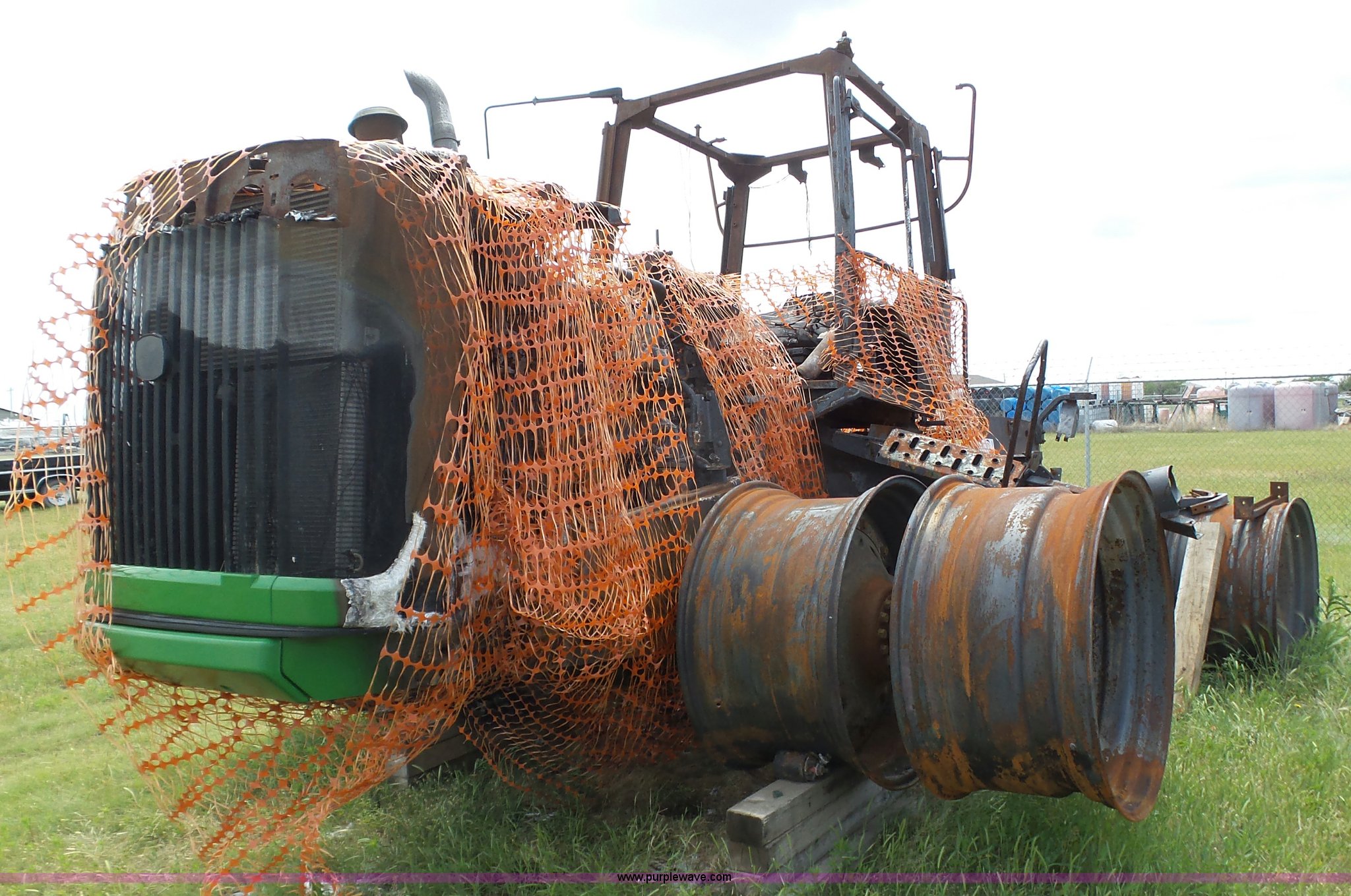 Purple Wave is selling a used Articulated 4-Wheel Drive Tractor in Kansas. This item is a 2011 John Deere 9430 4WD tractor with the following: Unknown hours on meter, Turbo diesel engine, Serial 6135HRW02, Front hydraulic remote sets, Rear hydraulic remote sets, Dual tires, Fire damage, Non-operational unit, Serial 1RW9430PCBP023431, Unit# A216749P00