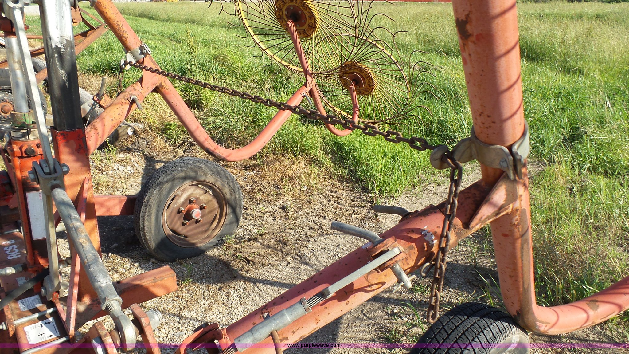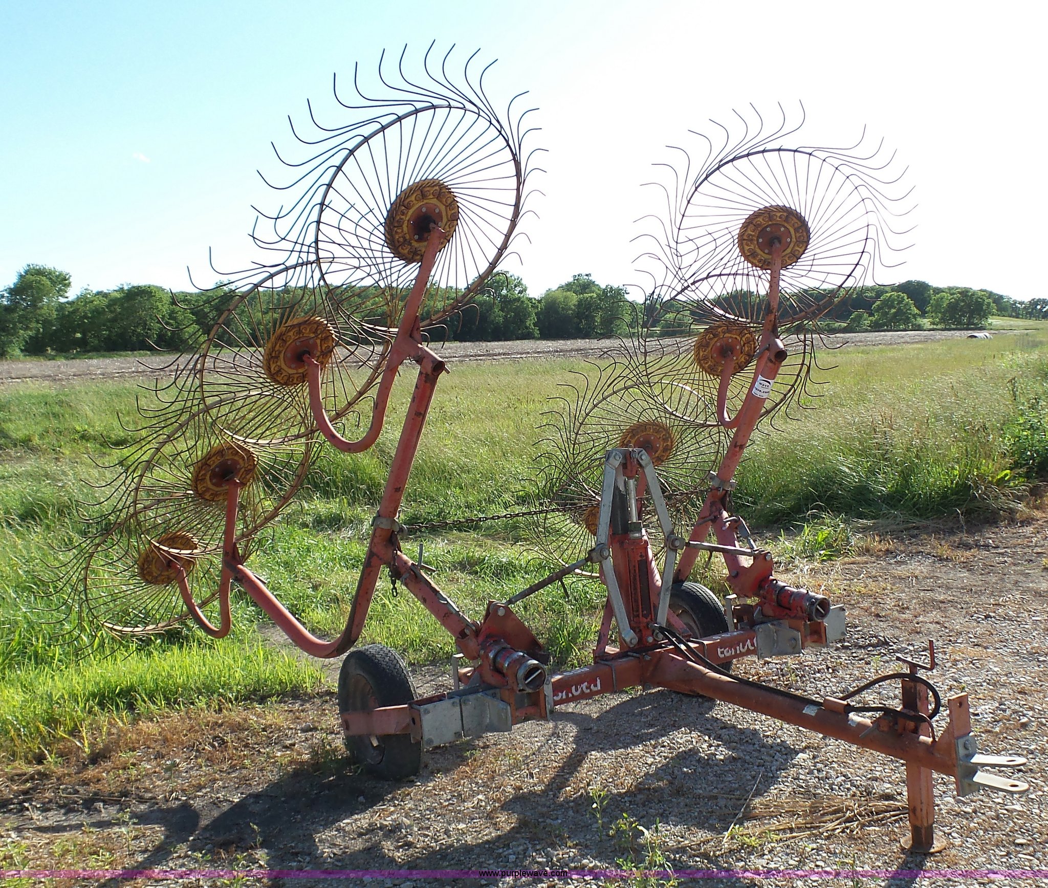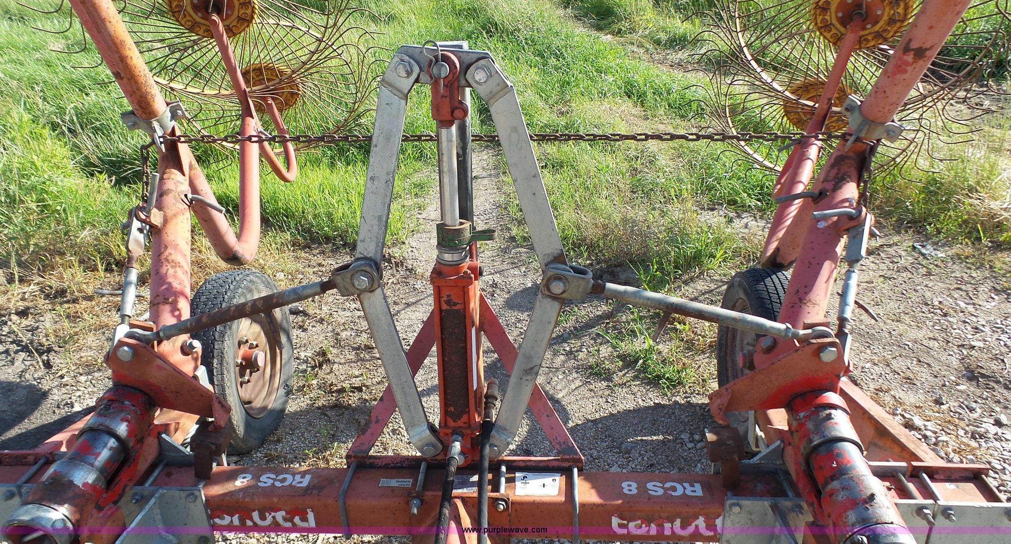 Purple Wave is selling a used Hay Rake in Kansas. This item is a Tonutti RCS8 hay rake with the following: (8) wheels, Hydraulic fold, Pin hitch, 175/65R14 tires, Additional fingers included, Serial 633502