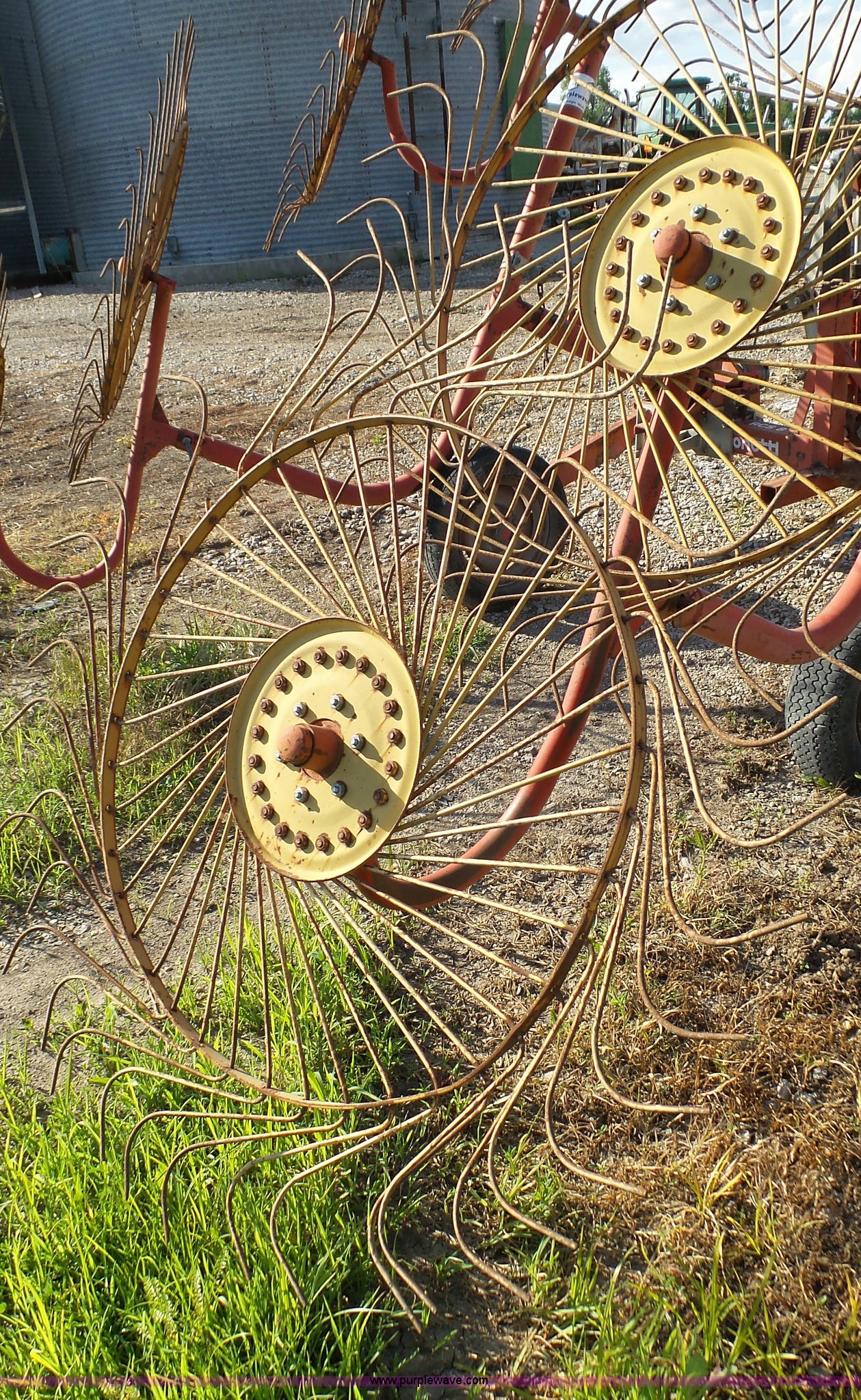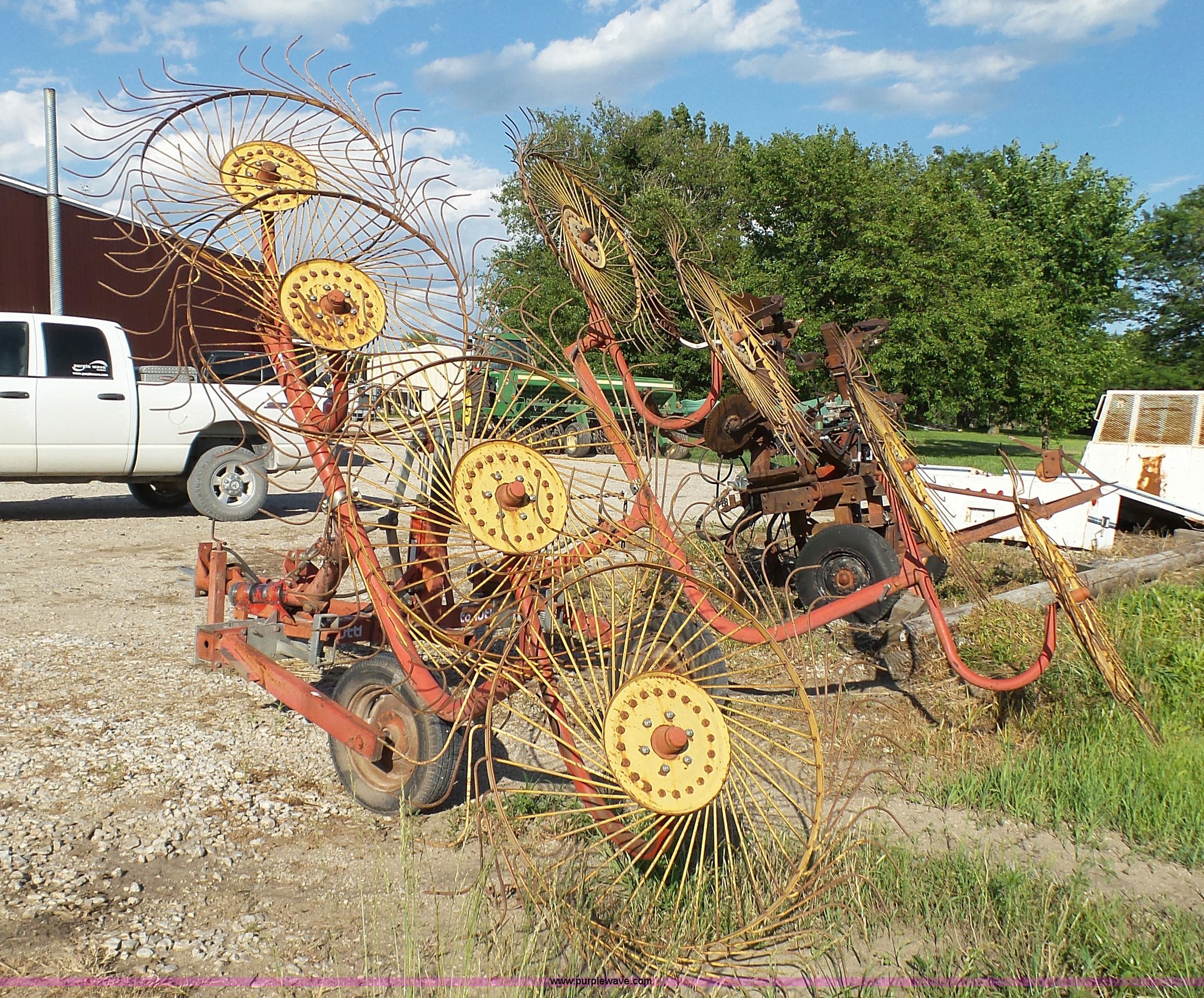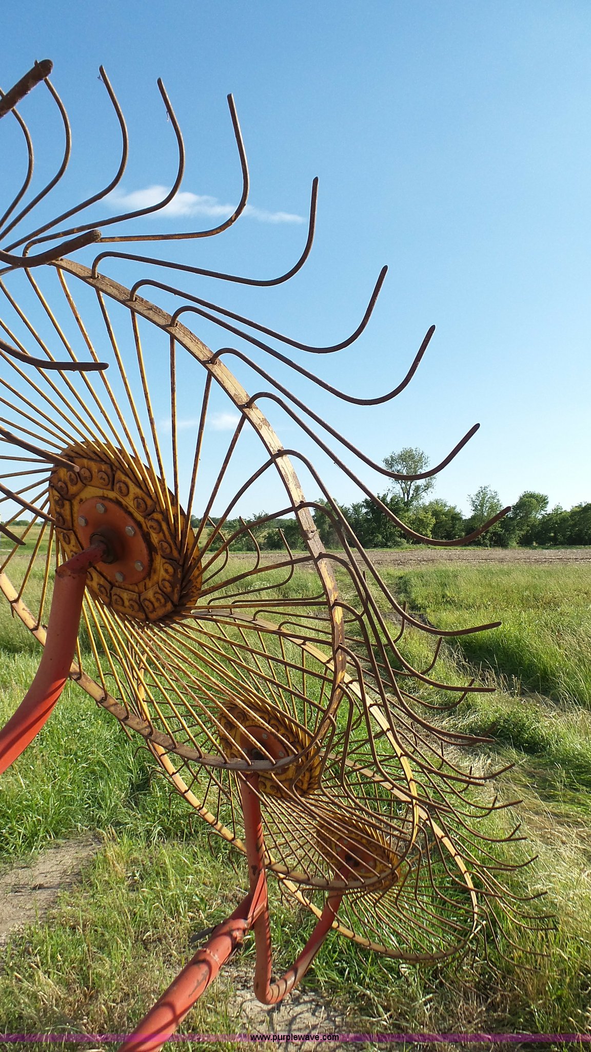 Purple Wave is selling a used Hay Rake in Kansas. This item is a Tonutti RCS8 hay rake with the following: (8) wheels, Hydraulic fold, Pin hitch, 175/65R14 tires, Additional fingers included, Serial 633502