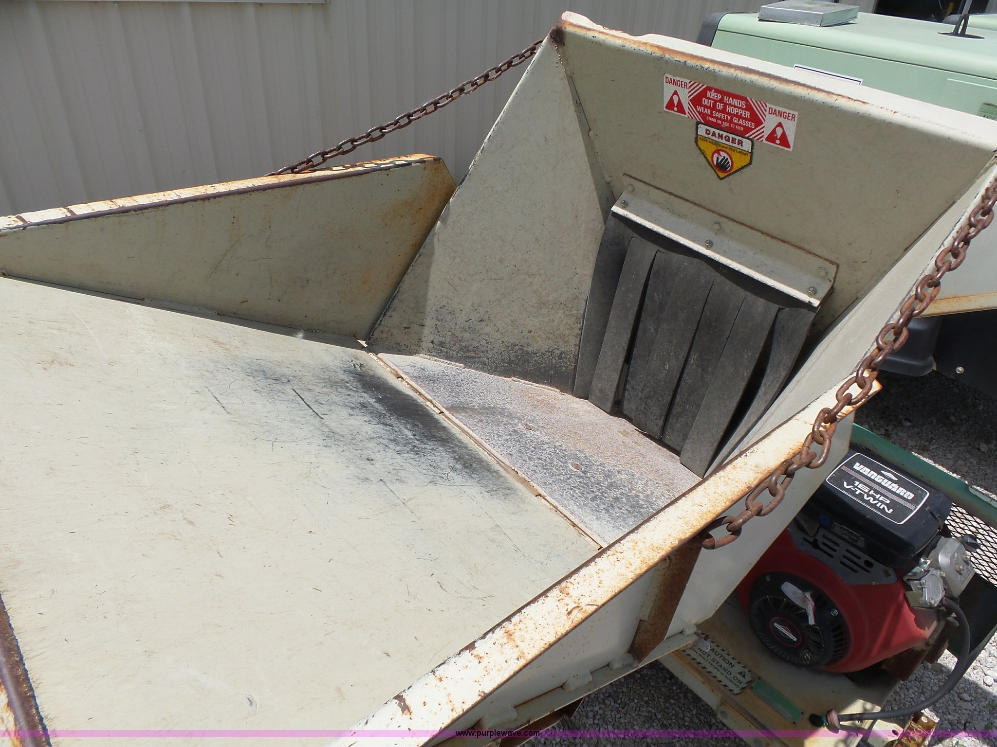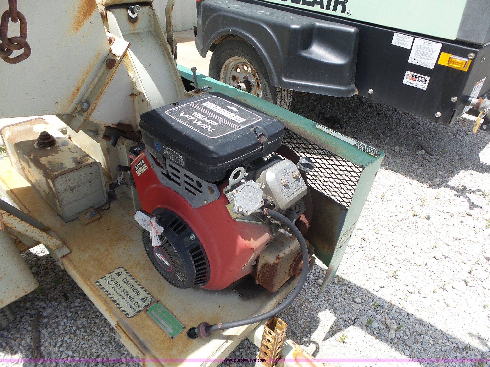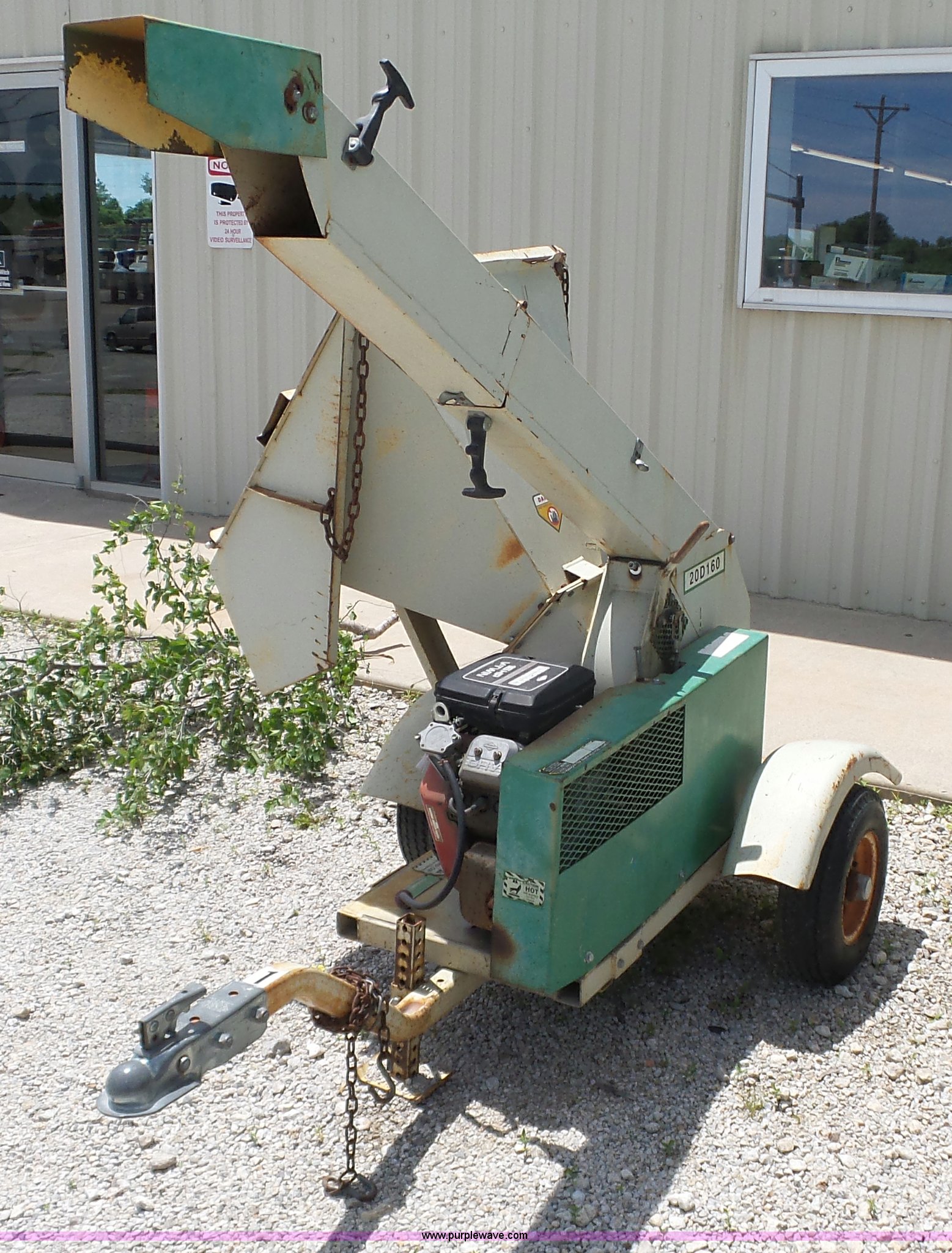Purple Wave is selling a used Wood Chipper or Stump Grinder in Kansas. This item is a Wood Pro 20D160 chipper with the following: Briggs & Stratton gas engine, 16 HP, Serial 44162