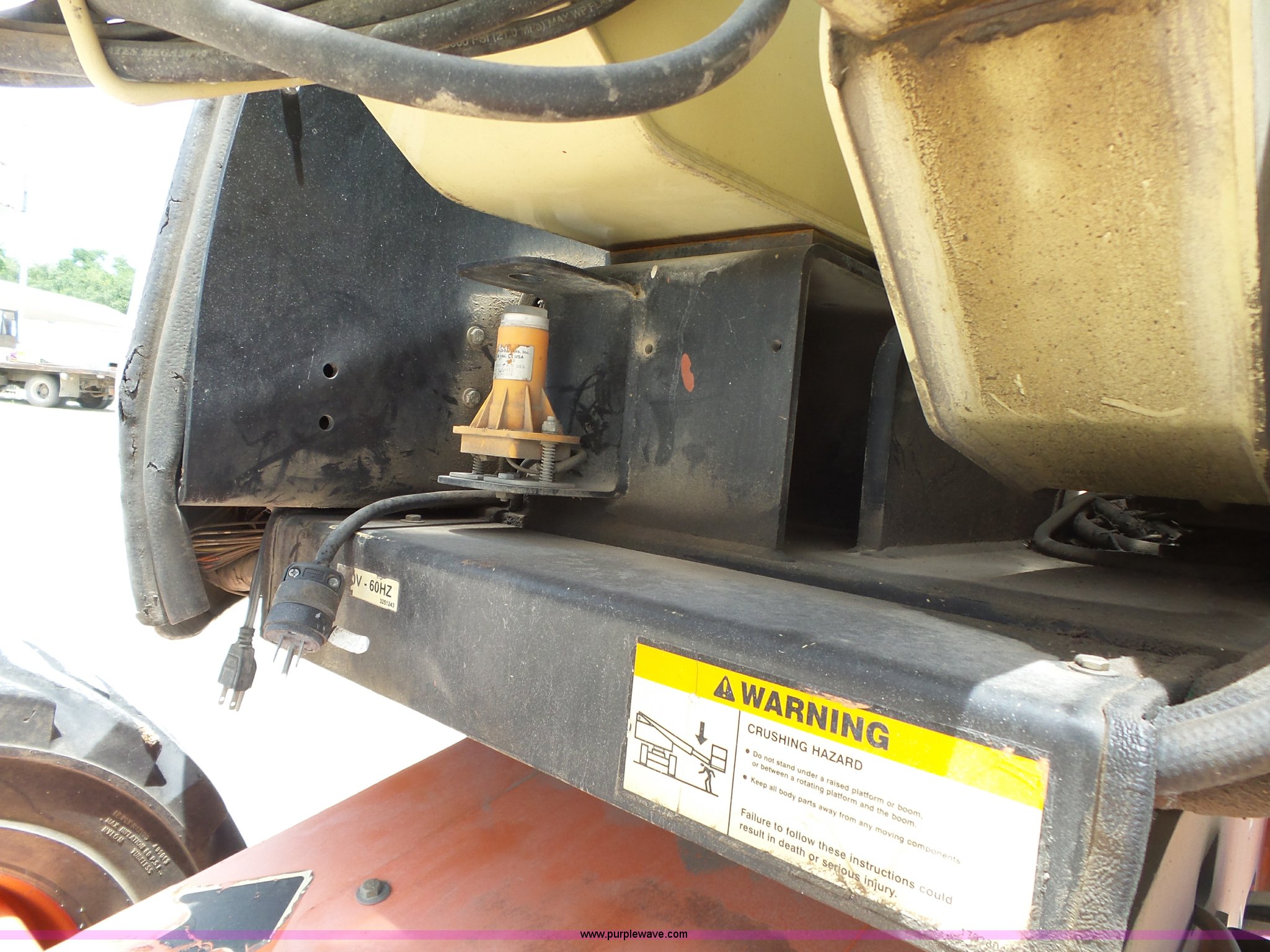 Purple Wave is selling a used Boom Lift in Kansas. This item is a 1999 JLG 450A boom lift with the following: 1,583 hours on meter, Four cylinder propane engine, Four wheel drive, 500 lbs maximum lift capacity, 23' maximum reach, 45' maximum lift height, 6'L x 27"W platform, Platform and ground controls, AC power outlet, Platform rotation, Hydraulic leveling, Propane tank included, 33 x 15.50-16.5 foam filled tires, Serial 0300043585
