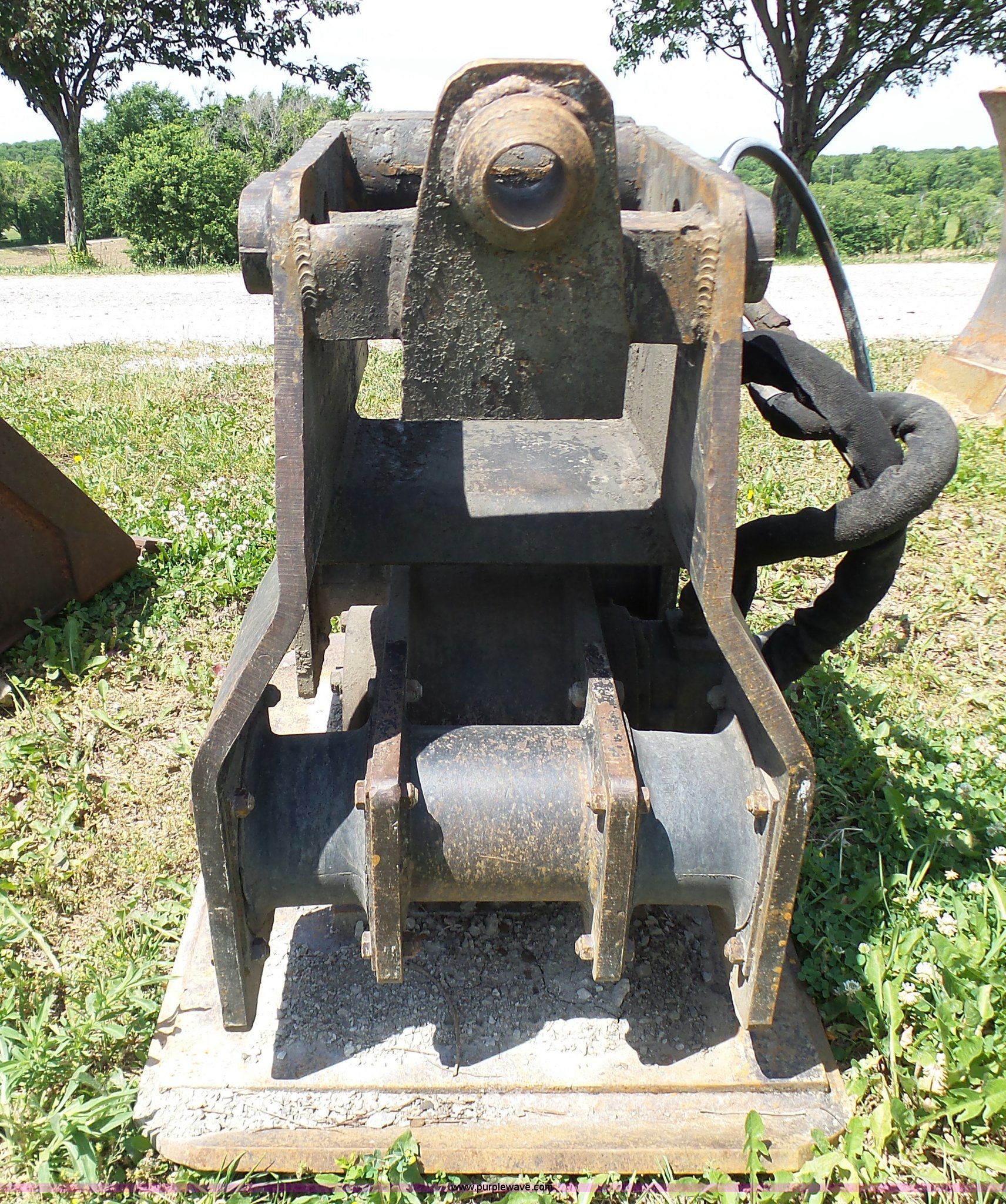 Purple Wave is selling a used Backhoe Attach. in Missouri. This item is a Wain Roy Cannon plate compactor with the following: 24" x 34" plate, Removed from a Case 590 L-7039 backhoe