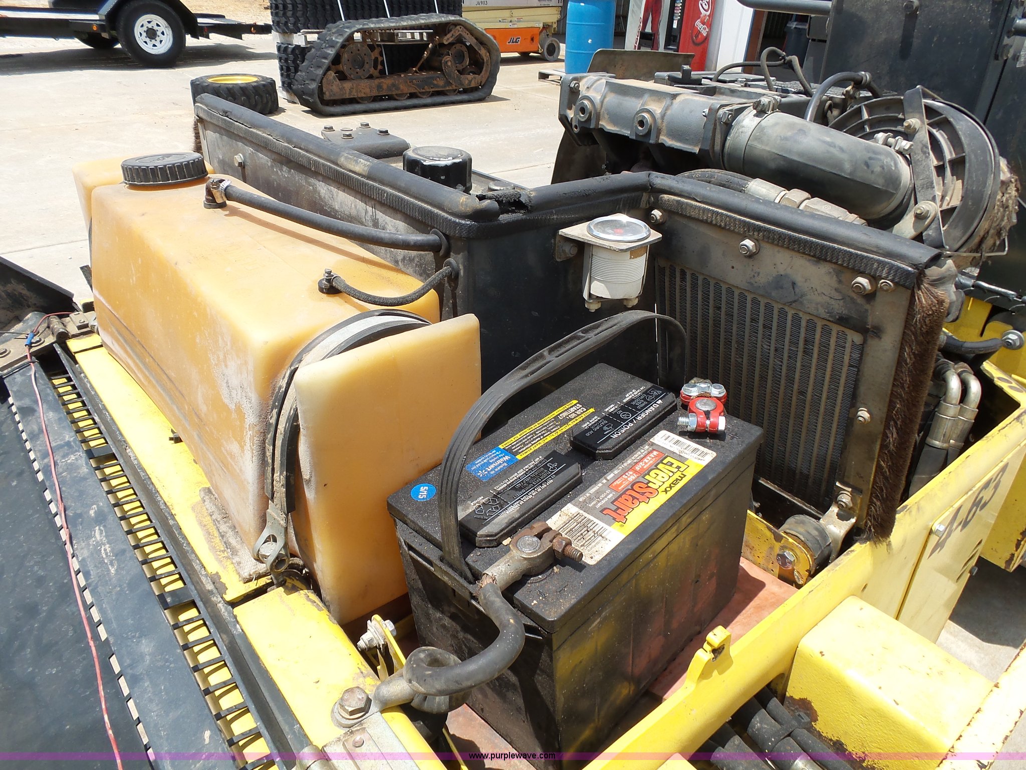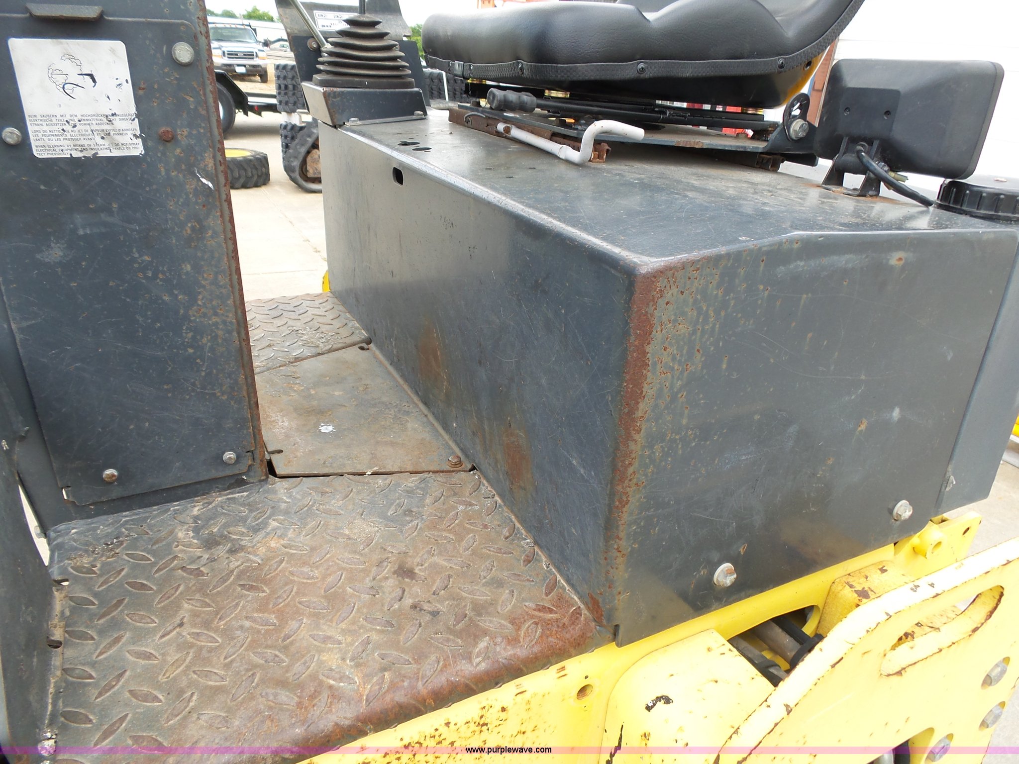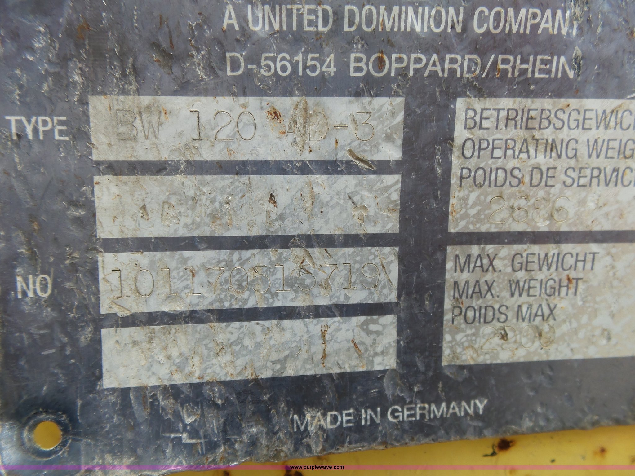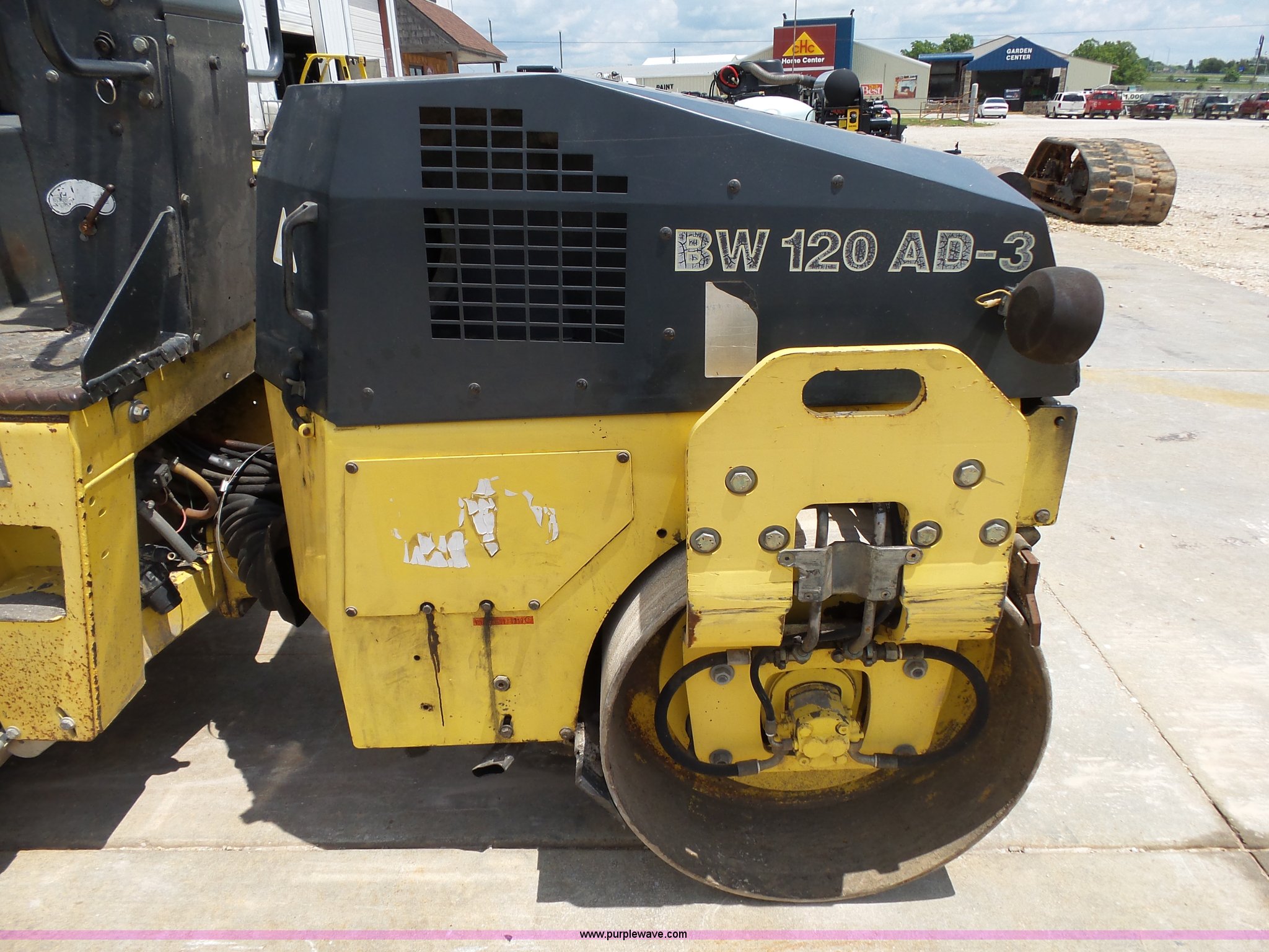 Purple Wave is selling a used Double Drum Roller Compactor in Missouri. This item is a 2000 Bomag BW120AD-3 double drum roller with the following: 5,035 hours on meter, Deutz F2L1011F two cylinder diesel engine, 21 kW, Hydrostatic transmission, Vandal guard, Front and rear work lights, 47"W x 27" diameter smooth drums, Single vibratory system, Front and rear drum scrapers, Emergency stop button, Serial 101170515719, Unit# 4-63