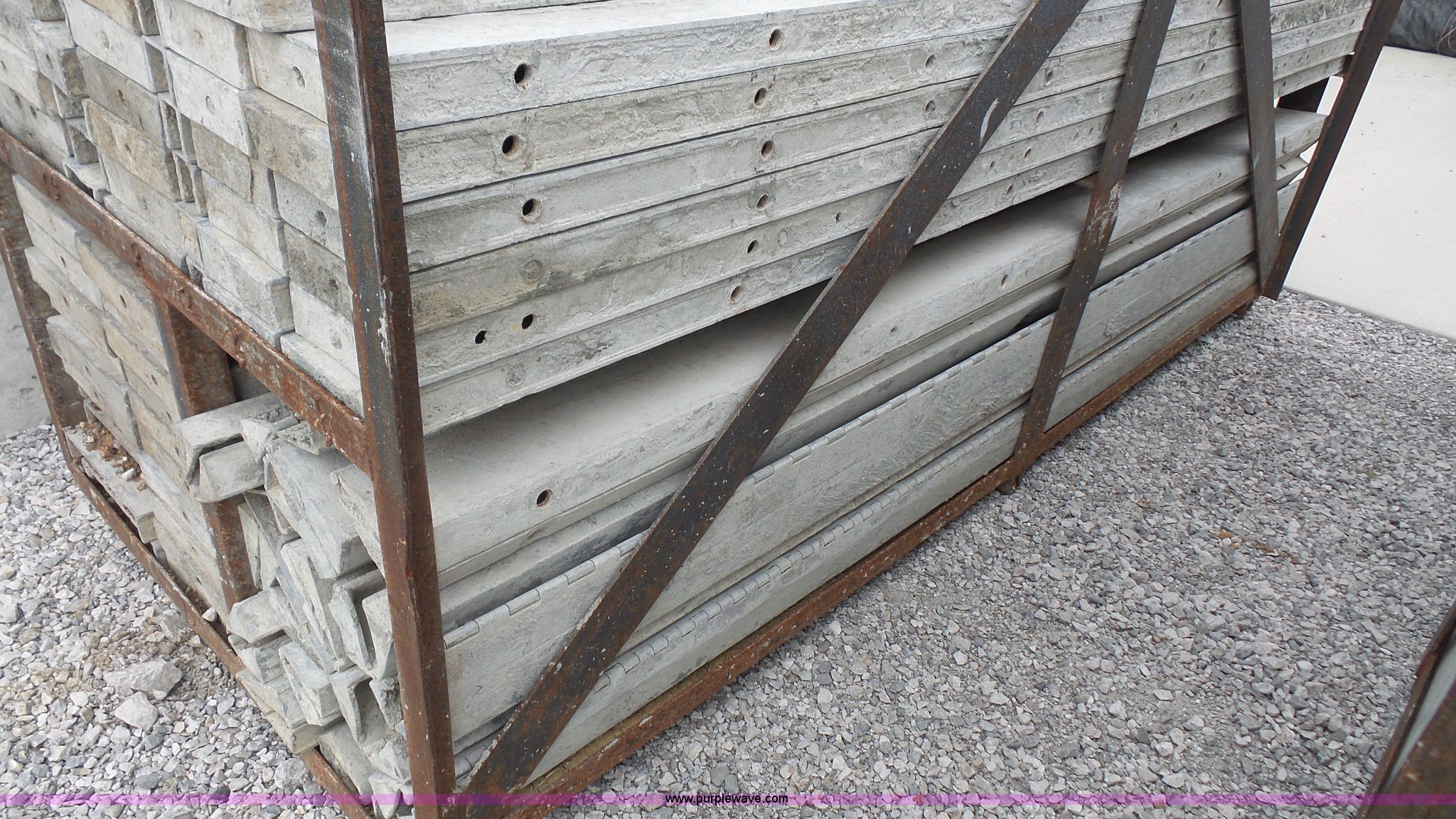 Purple Wave is selling a used Concrete Equip. or Acces. in Kansas. This item is a Aluminum concrete forms with the following: (4) 32"W x 108"H, (4) 30"W x 108"H, (2) 28"W x 108"H, (6) 24"W x 108"H, (4) 20"W x 108"H, (4) 18"W x 108"H, (11) 16"W x 108"H, (7) 14"W x 108"H, (20) 12"W x 108"H, (29) 10"W x 108"H, (10) 8"W x 108"H, (12) 6"W x 108"H, (10) 4"W x 108"H, (6) 2"W x 108"H, 6/12 hole pattern, (3) form baskets with bell tops, (13) 108" W's, (11) 108" hinged inside corners, (8) 108" hinged outside corners, (20) 108" inside corners