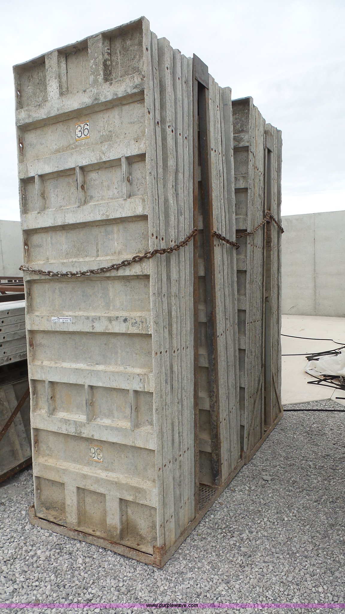 Purple Wave is selling a used Concrete Equip. or Acces. in Kansas. This item is a Aluminum concrete forms with the following: (32) 36"W x 108"H, 6/12 hole pattern, (2) form baskets with bell tops