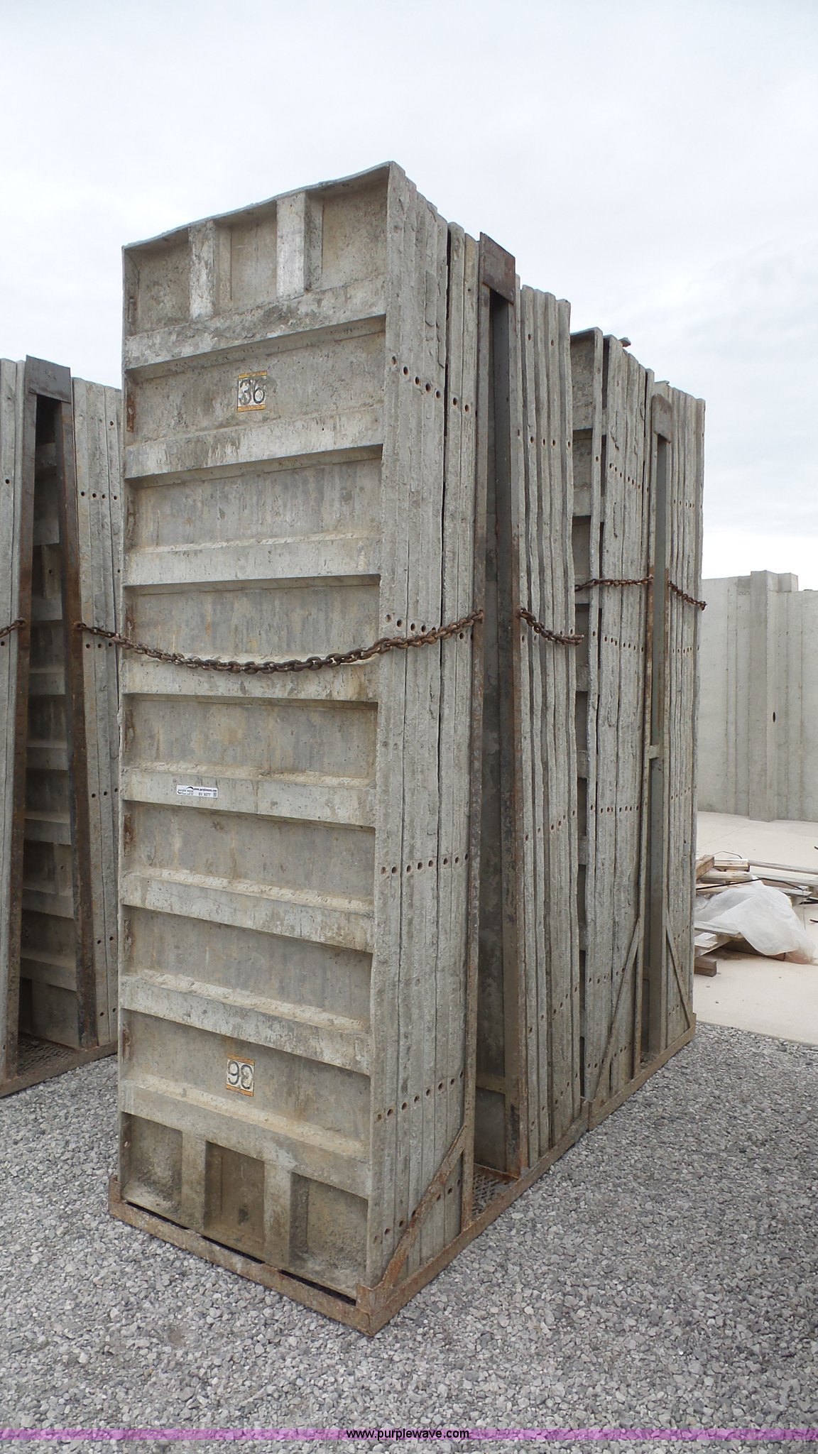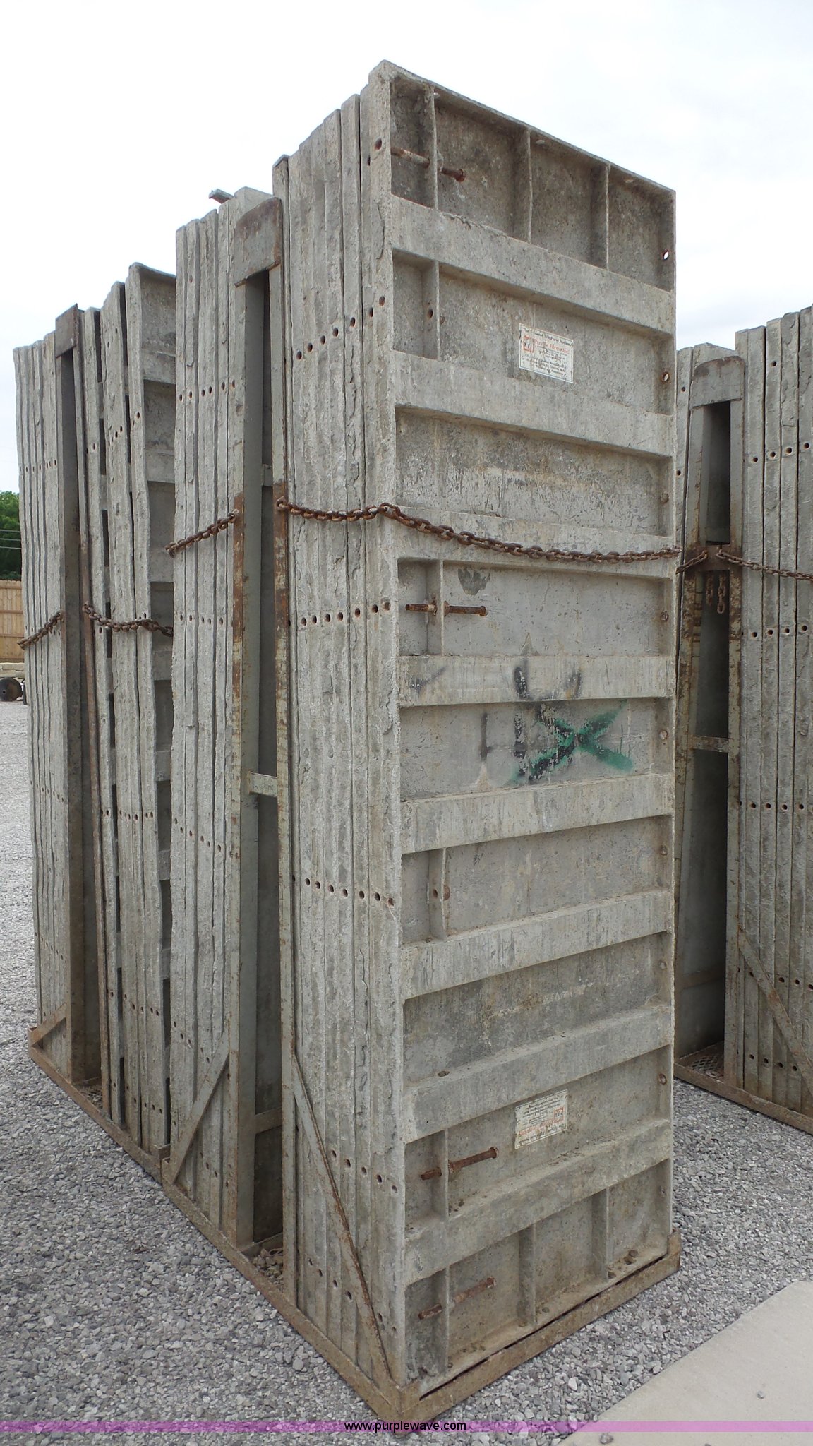 Purple Wave is selling a used Concrete Equip. or Acces. in Kansas. This item is a Aluminum concrete forms with the following: (32) 36"W x 108"H, 6/12 hole pattern, (2) form baskets with bell tops