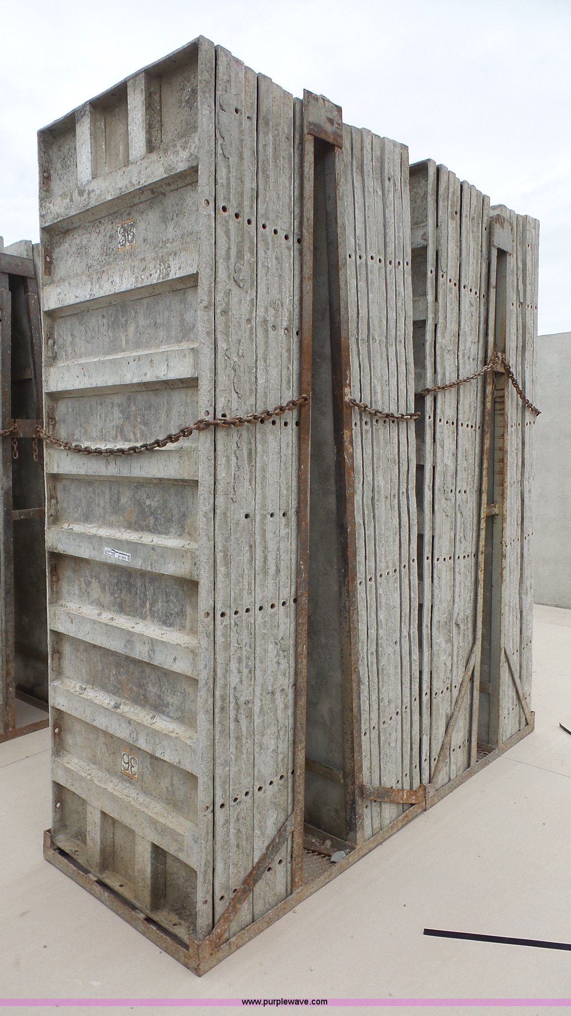 Purple Wave is selling a used Concrete Equip. or Acces. in Kansas. This item is a Aluminum concrete forms with the following: (32) 36"W x 108"H, 6/12 hole pattern, (2) form baskets with bell tops