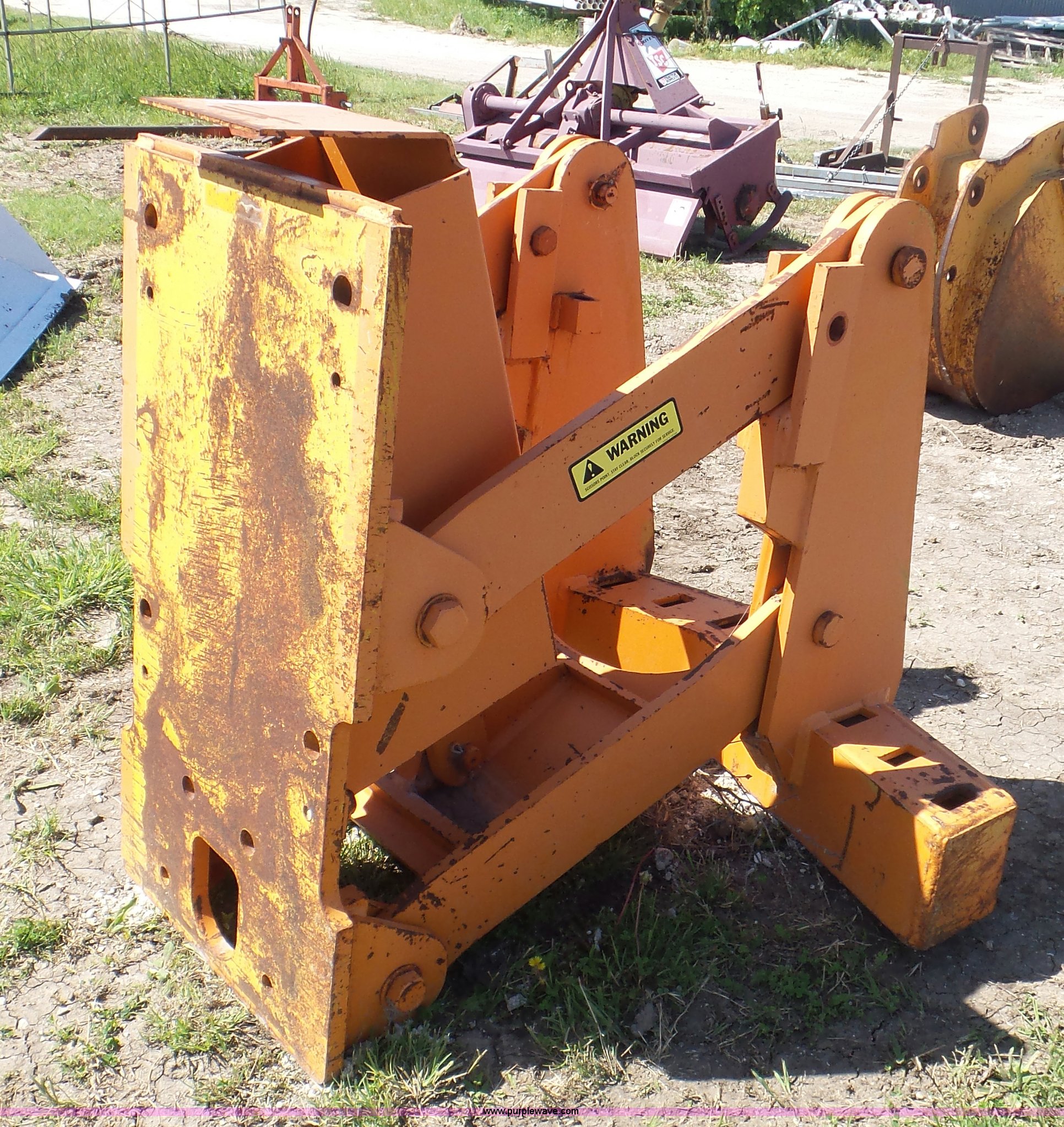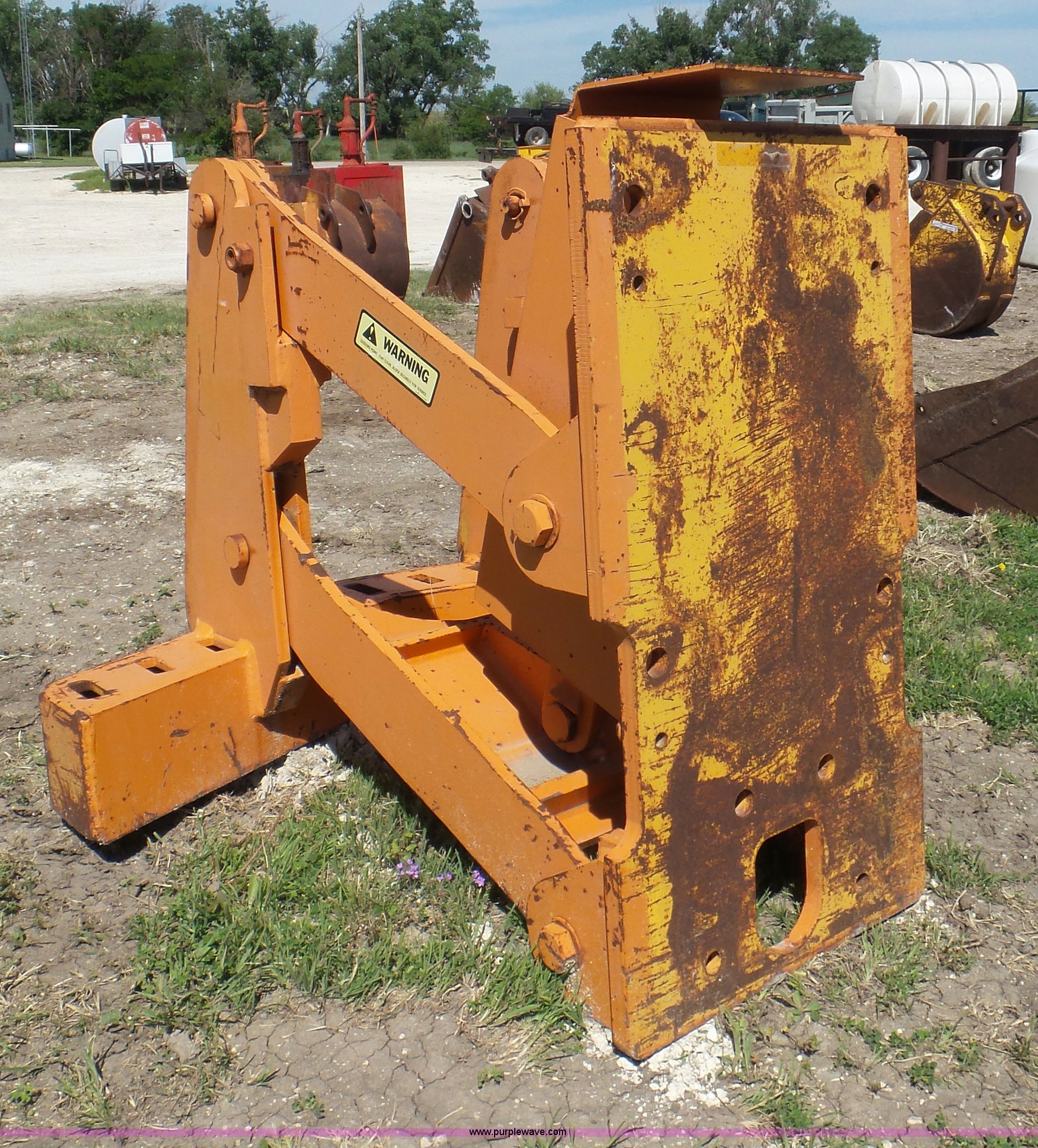 Purple Wave is selling a used Motor Grader Attach. in Kansas. This item is a Motor grader scarifer with the following: Hydraulic lift, (11) shank pockets, Removed from a Fiat motor grader
