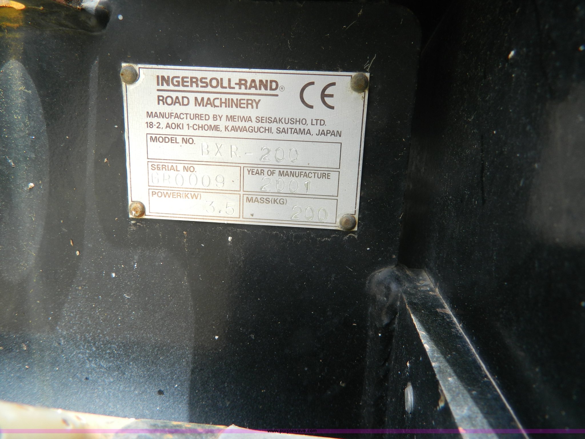 Purple Wave is selling a used Walk Behind Compactor in Kansas. This item is a 2001 Ingersoll Rand BXR-200 plate compactor with the following: Yanmar diesel engine, Electric start, 26" x 18" plate, Serial GB0009