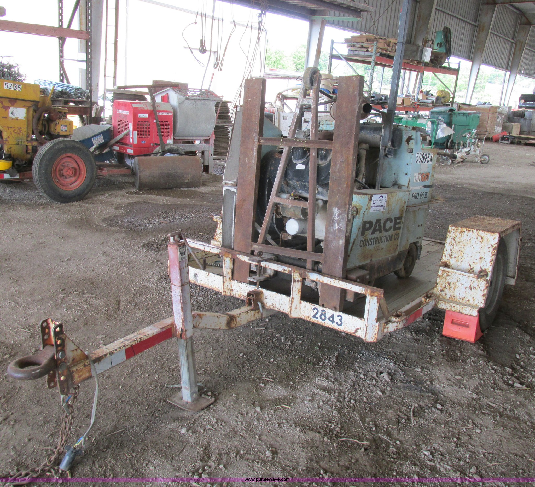 Target Pro 65II 36 concrete saw. 499 hours on meter, Wisconsin four cylinder gas engine, Blades included, 1995 Midwest tilt deck trailer 10'L x 5'W wood deck, Pintle hitch, P205/75R15 tires, Serial 219622. Missouri title.. Title distribution may be delayed up to 14 days from verification of funds. 1M9FC0813SM297230. Pace Construction. 1620 Woodson Road. St. Louis, MO 63114