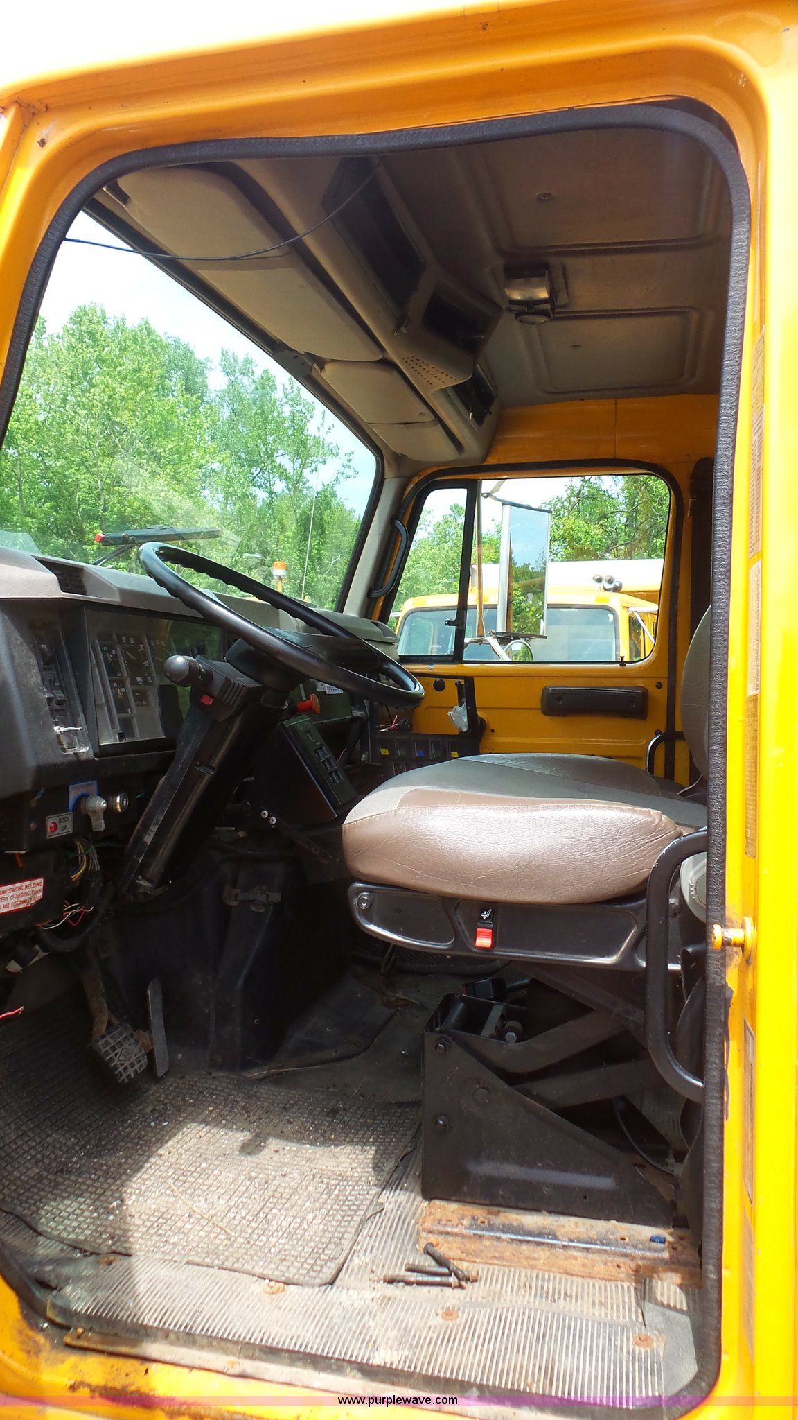 Purple Wave is selling a used Construction Dump Truck in Missouri. This item is a 2001 International 4900 dump truck with the following: 216,954 miles on odometer, International DT466 7.6L L6 turbo diesel engine, Automatic transmission, Single axle, Heat, AM/FM, Air suspension seat, PTO, Galion steel dump bed, 10'L, 2' side height, Single ram hoist, Manual operated end gate, Flink spreader, Single fuel tank, Spring suspension, Air brakes, 11R22.5 tires