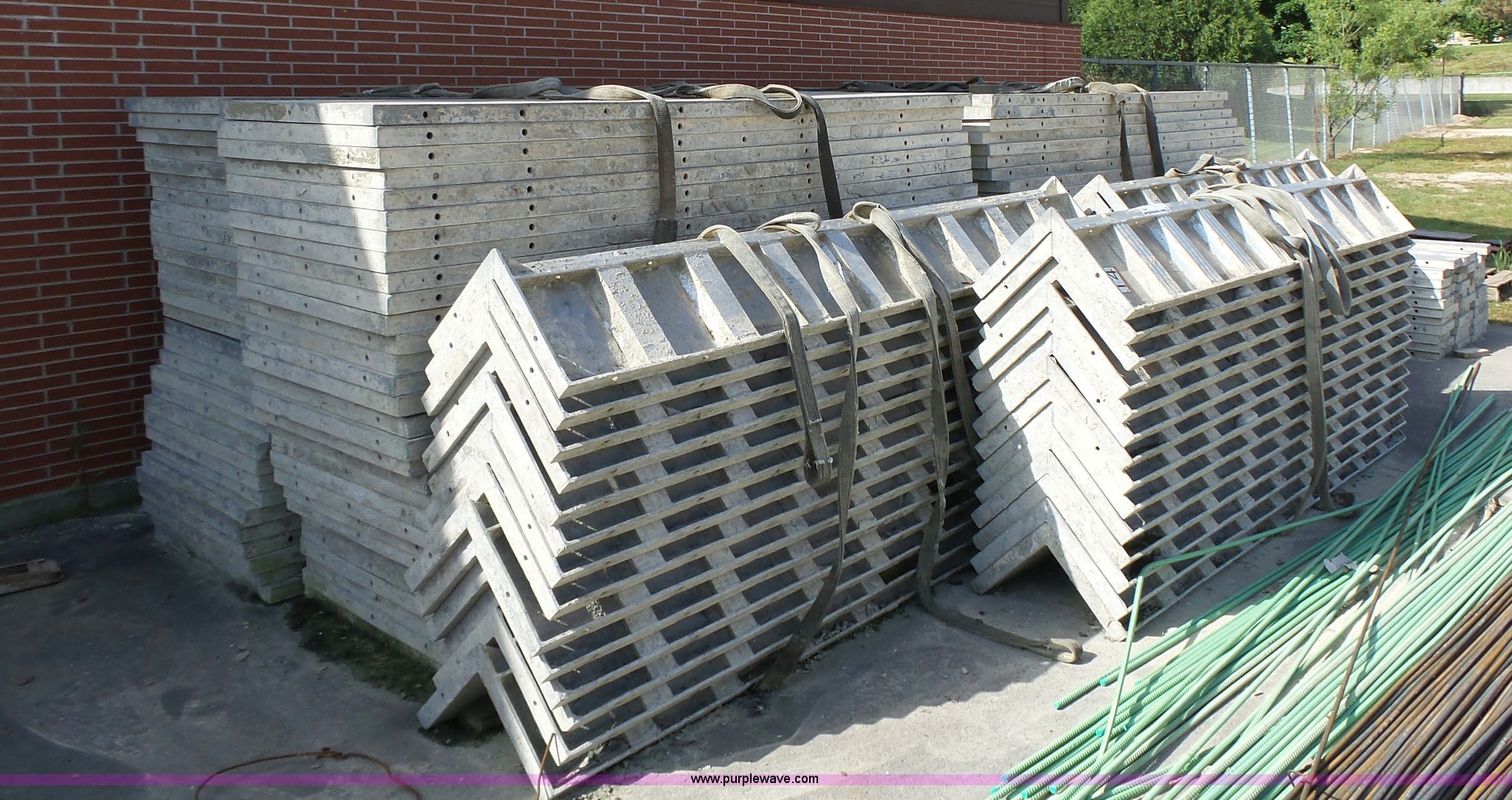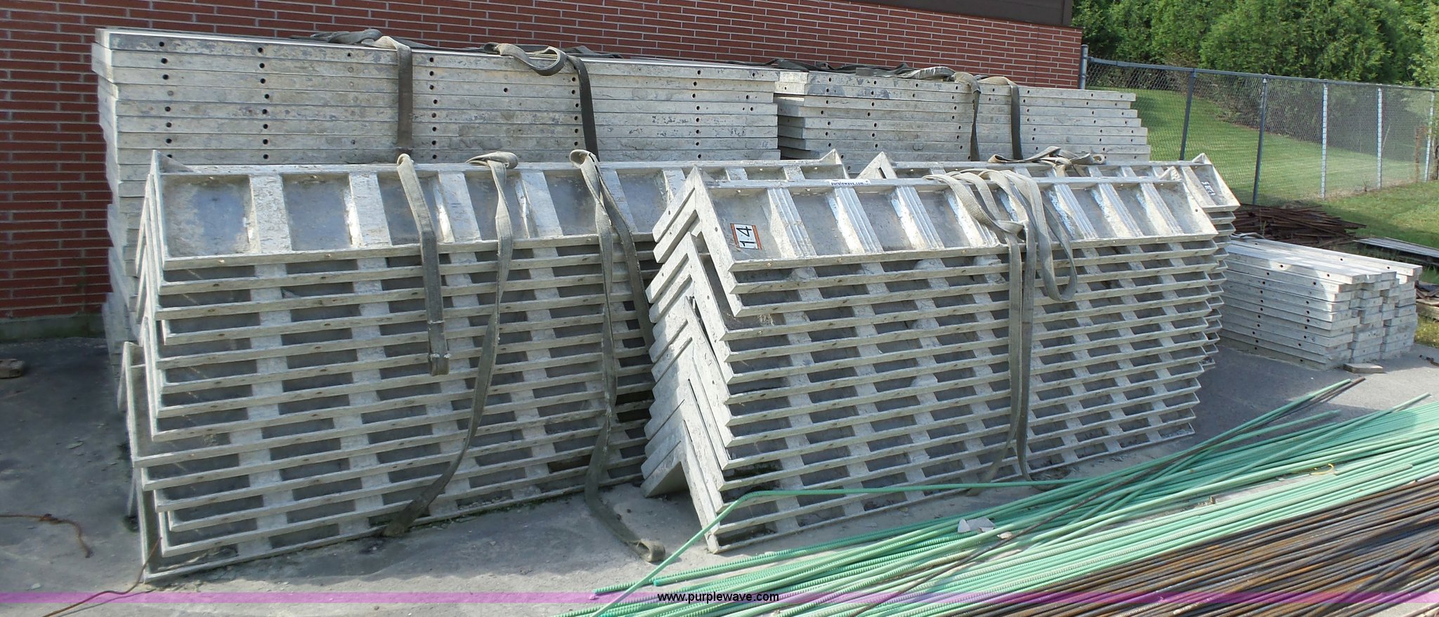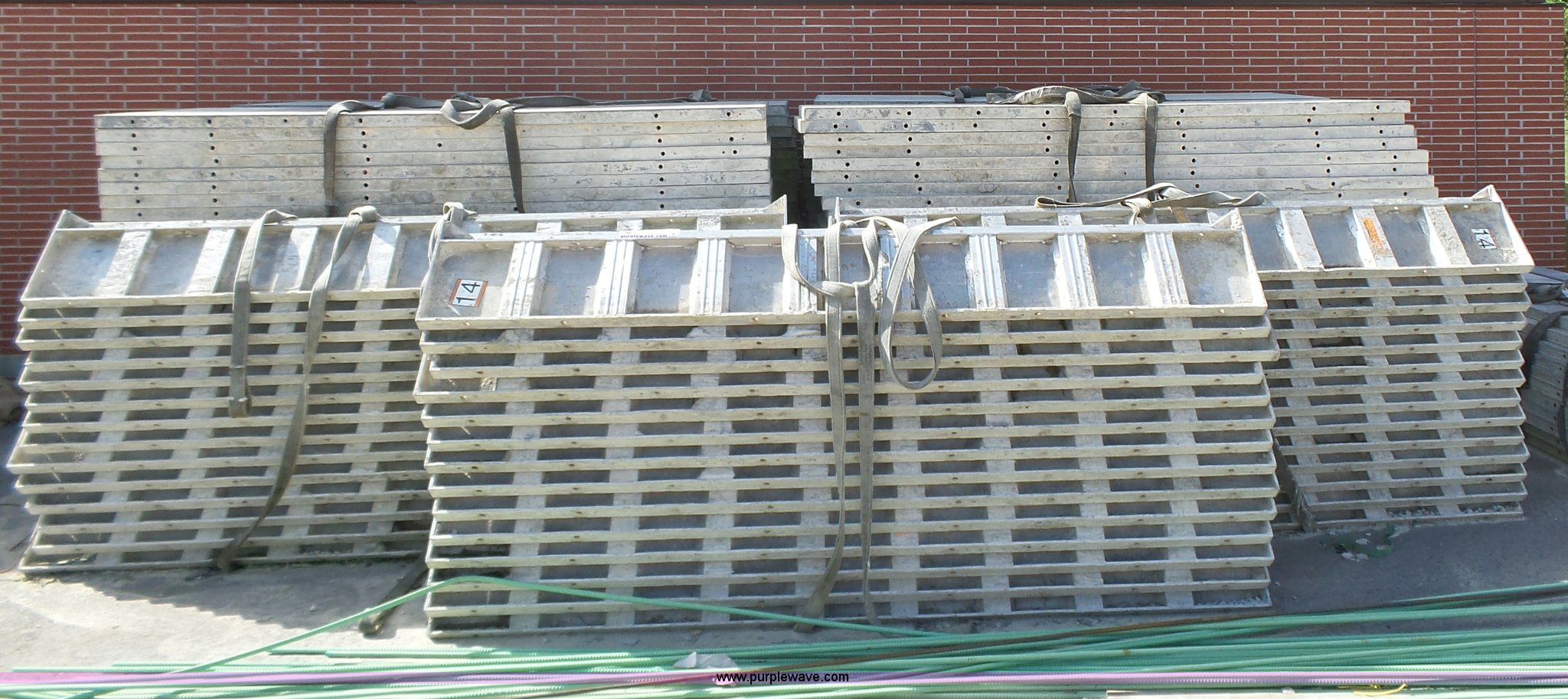 Purple Wave is selling a used Concrete Equip. or Acces. in Iowa. This item is a Aluminum concrete forms with the following: Approximately 118 9'L x 36"W flat forms, Approximately 42 9'L x 14" corner forms, Approximately 7 9'L x 5"W flat forms, Approximately 8 9'L x 7" flat forms, Approximately 8 9'L x 9"W flat forms, Approximately 4 9'L x 11"W flat forms, Approximately 2 9'L x 15"W flat forms, Approximately 2 9'L x 17"W flat forms