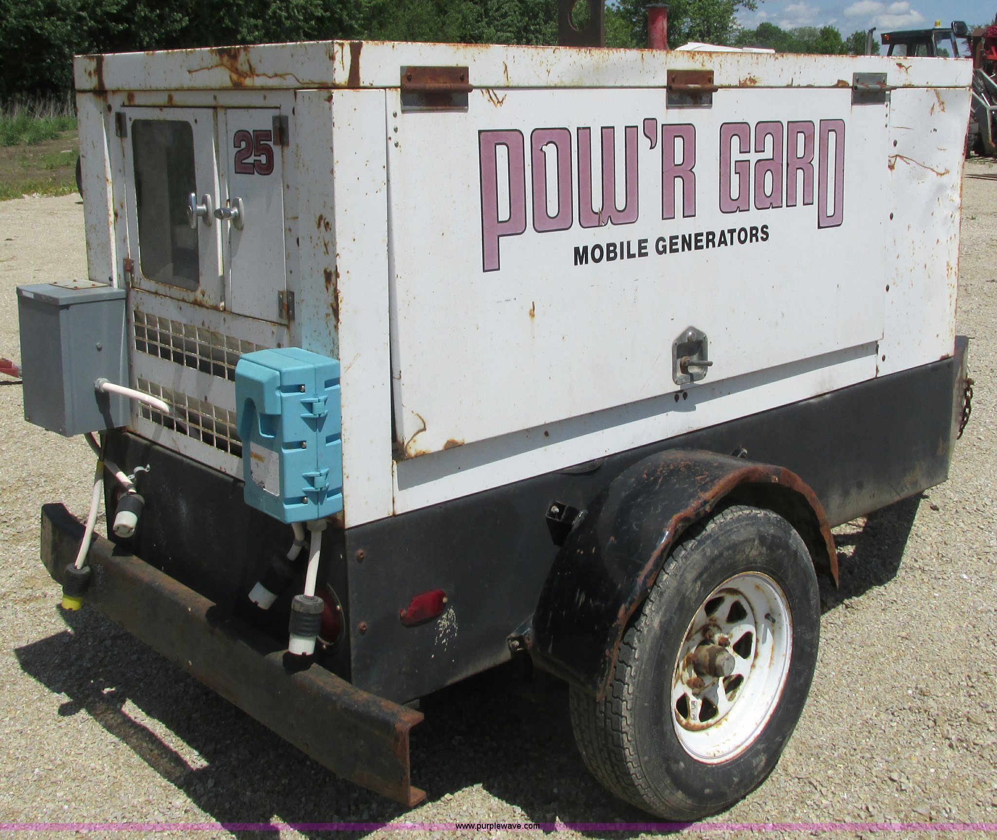 Pow'r Gard generator. 14,834 hours on meter, Isuzo four cylinder diesel engine, Power Gaurd TS25IT generator Control panel, 25 KVA, 20 kW, Pintle hitch, 205/75R15 tires. Transfer of ownership documentation will be a bill of sale. Ray's Machinery & Auto. 54599 Highway 42. Plainview, MN 55964