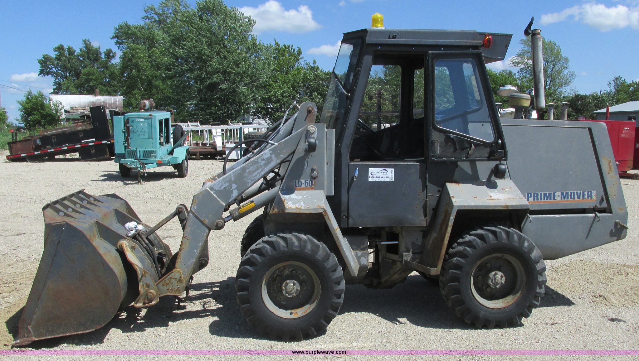 Purple Wave is selling a used Wheel Loader in Minnesota. This item is a Prime Mover LD-50 wheel loader with the following: 1,440 hours on meter, John Deere three cylinder diesel engine, Two speed hydrostatic transmission, EROPS, Joystick bucket controls, Wipers, Front and rear work lights, 60"W general purpose bucket, Bolt-on cutting edge, Rock grapple bucket, 55"W, Quick attach, (2) hydraulic rams, Manual quick coupler, Front auxiliary hydraulics, 12-16.5 tires, Serial 560